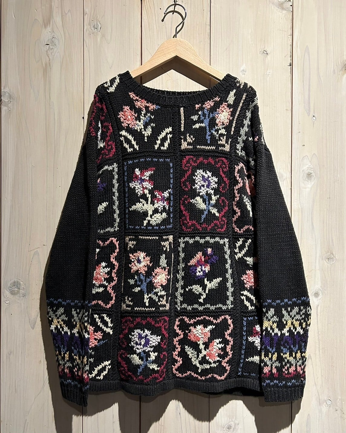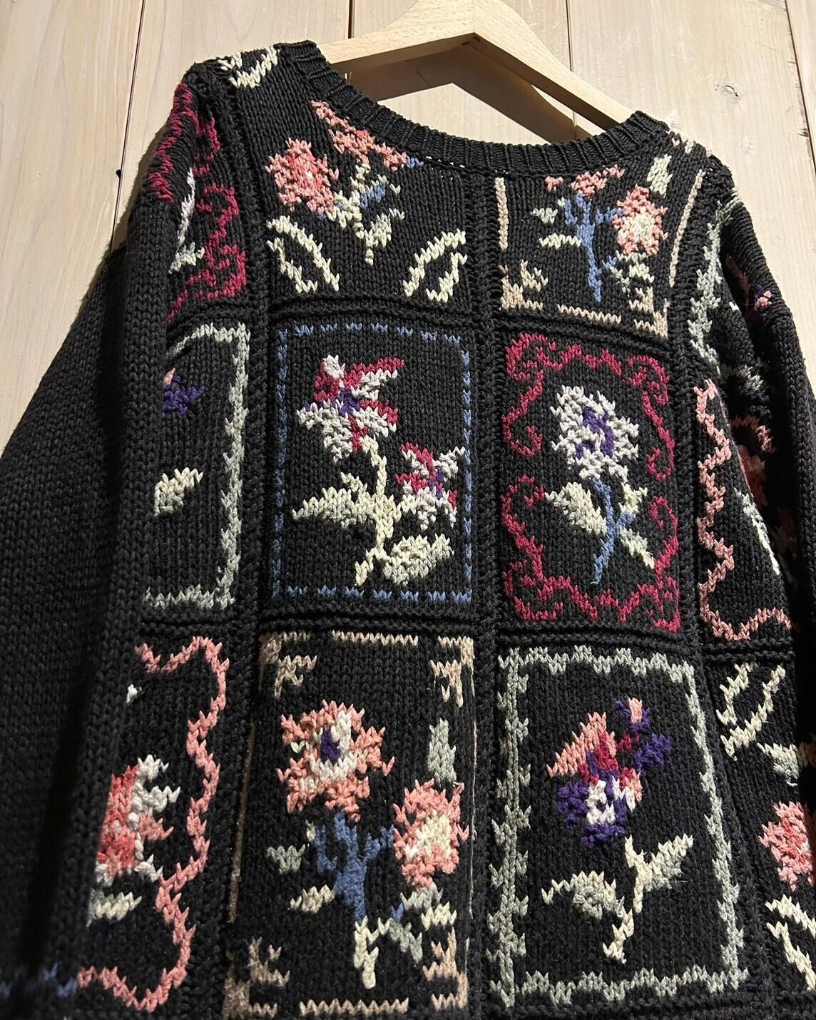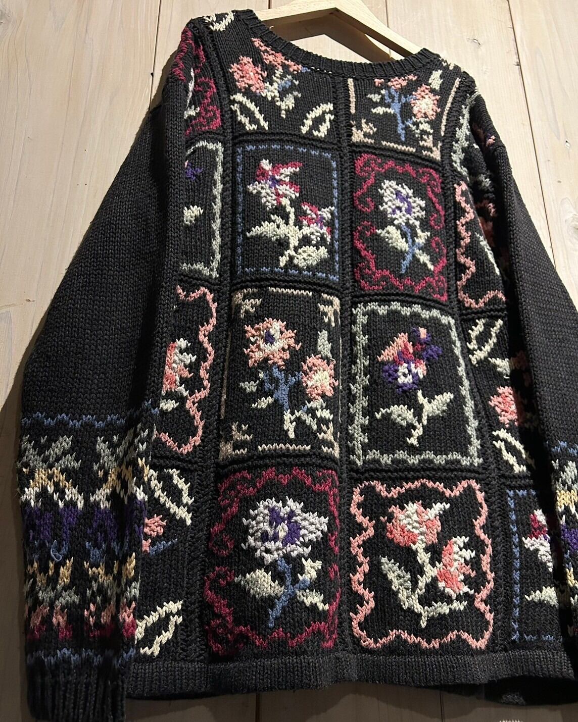 ザックリと編まれたラフさに花柄の上品さが合わさったデザインバランスも良い。春先のメイントップスとして、またはインナーとして仕込んでも存在感を発揮してくれます。