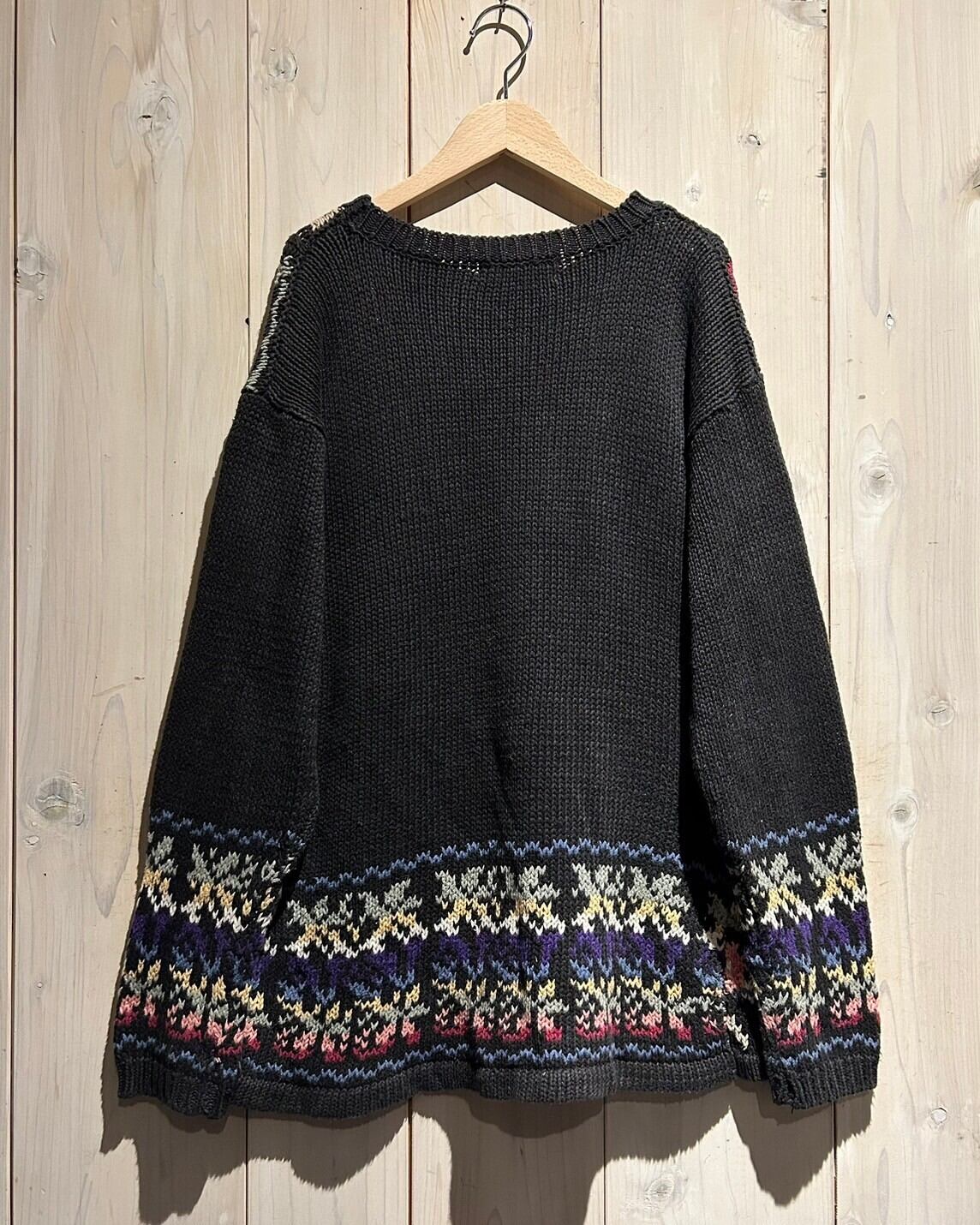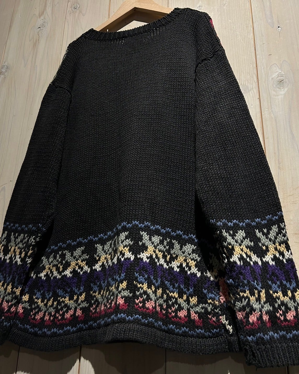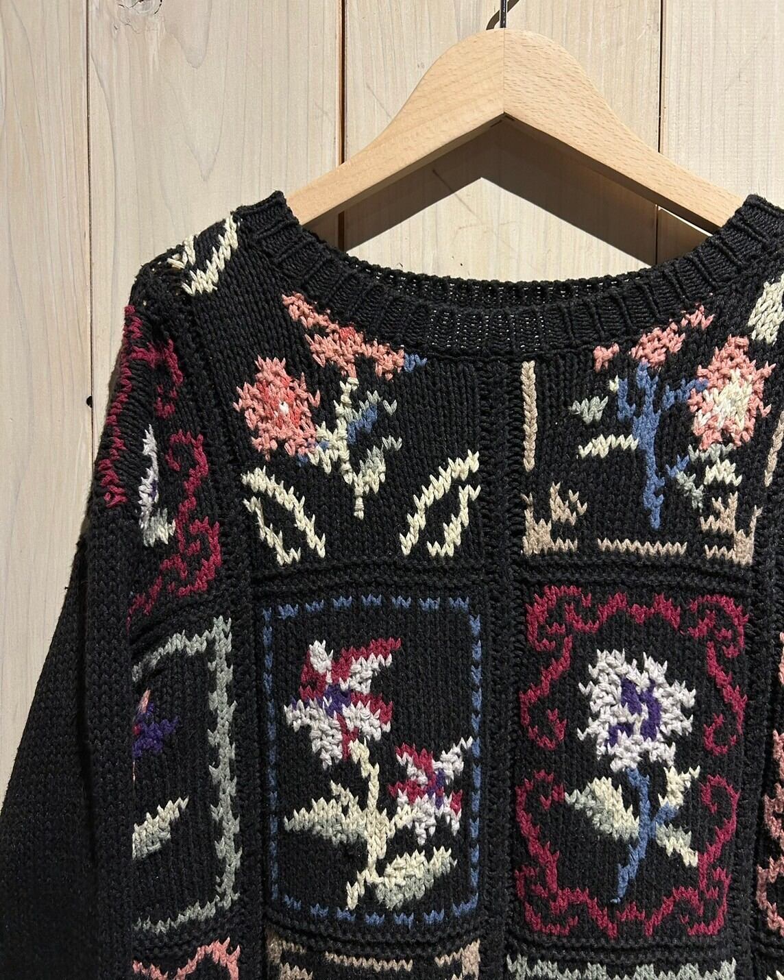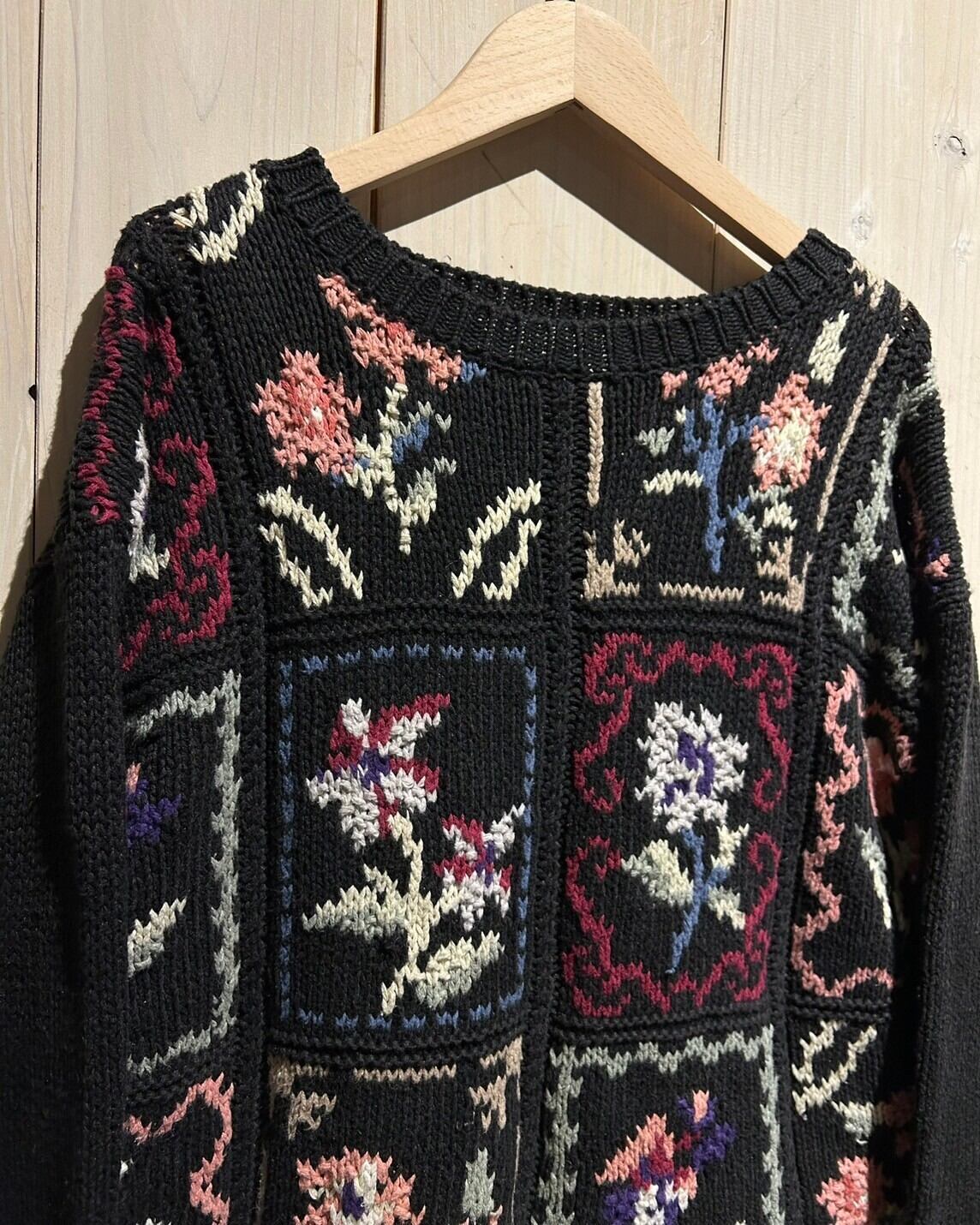 ザックリと編まれたラフさに花柄の上品さが合わさったデザインバランスも良い。春先のメイントップスとして、またはインナーとして仕込んでも存在感を発揮してくれます。