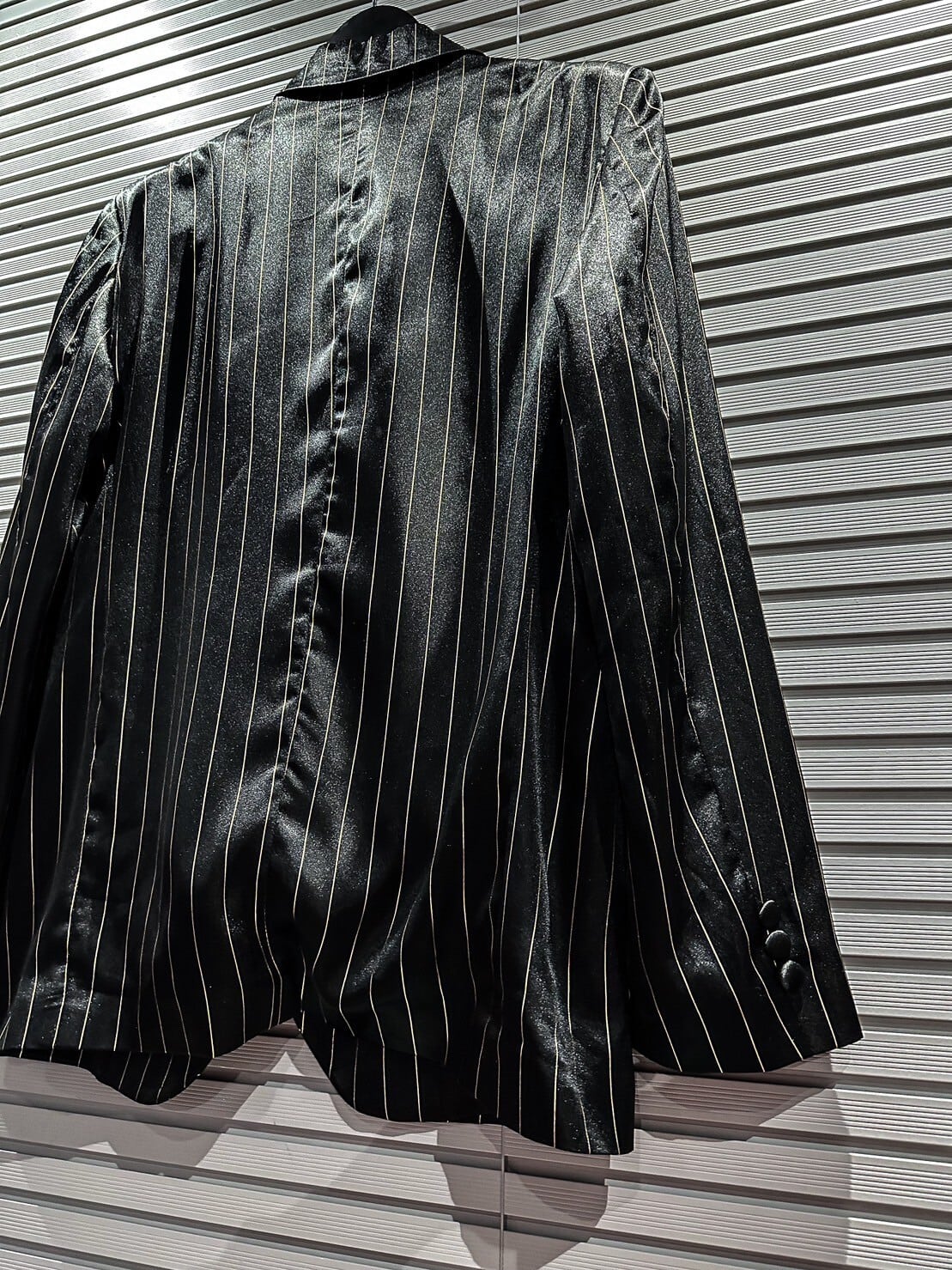 ジャケットは3つボタンのシングルブレスト仕様。パンツはノータックのワイドストレートのシルエットで、双方着用時のシルエットが非常に美しい…シルク素材特有のエアリーな着心地、是非体感して頂きたいです。