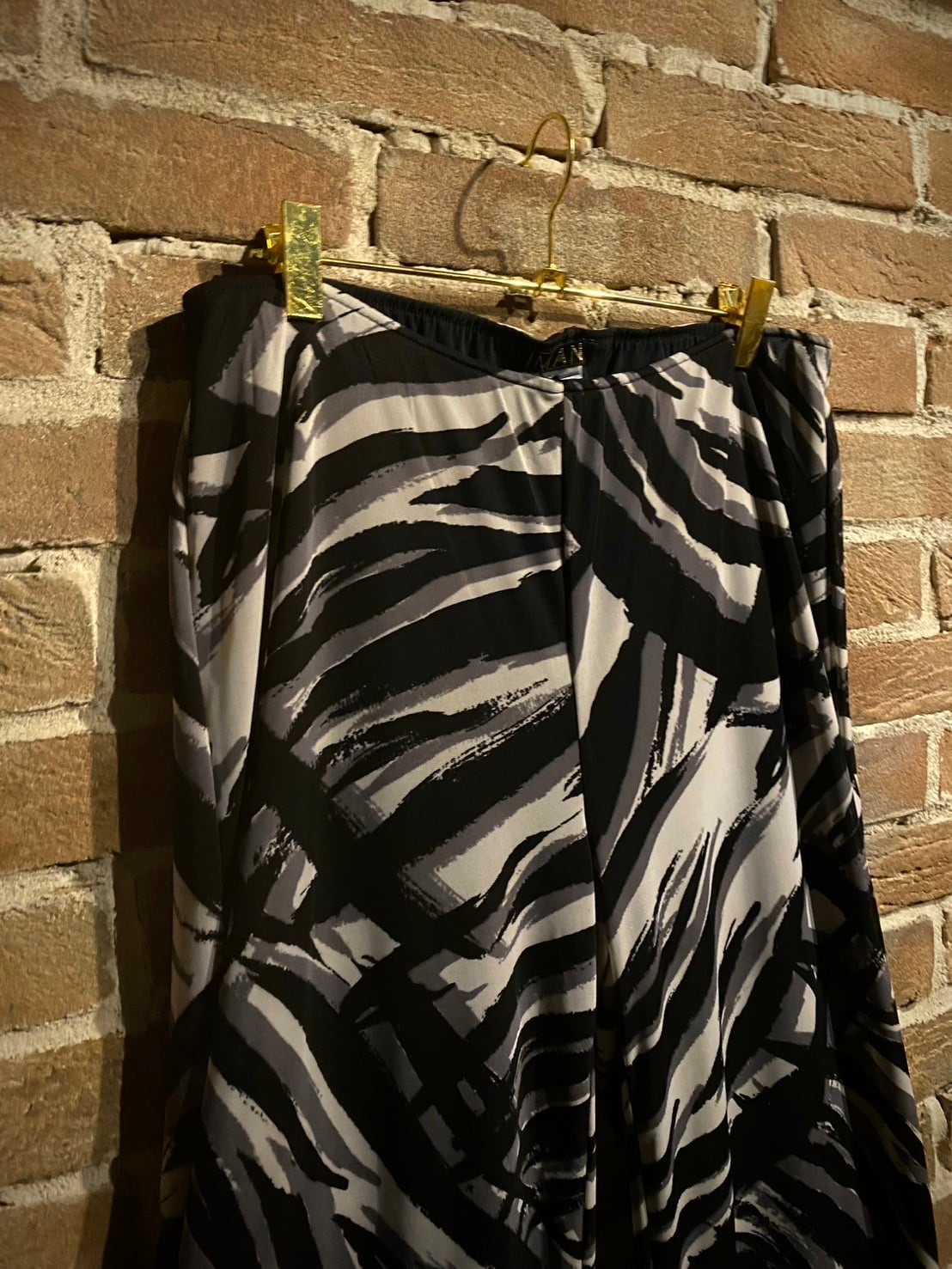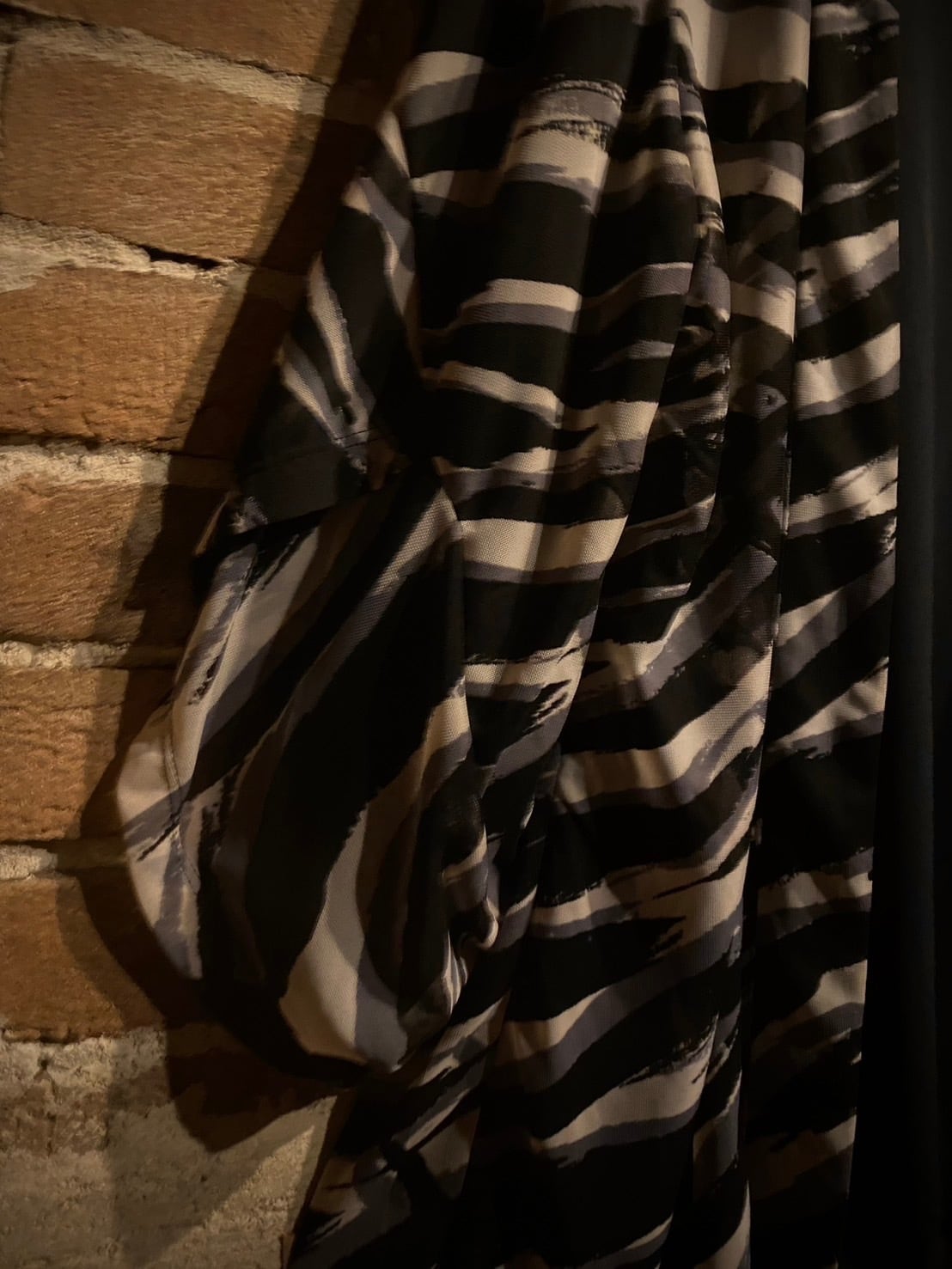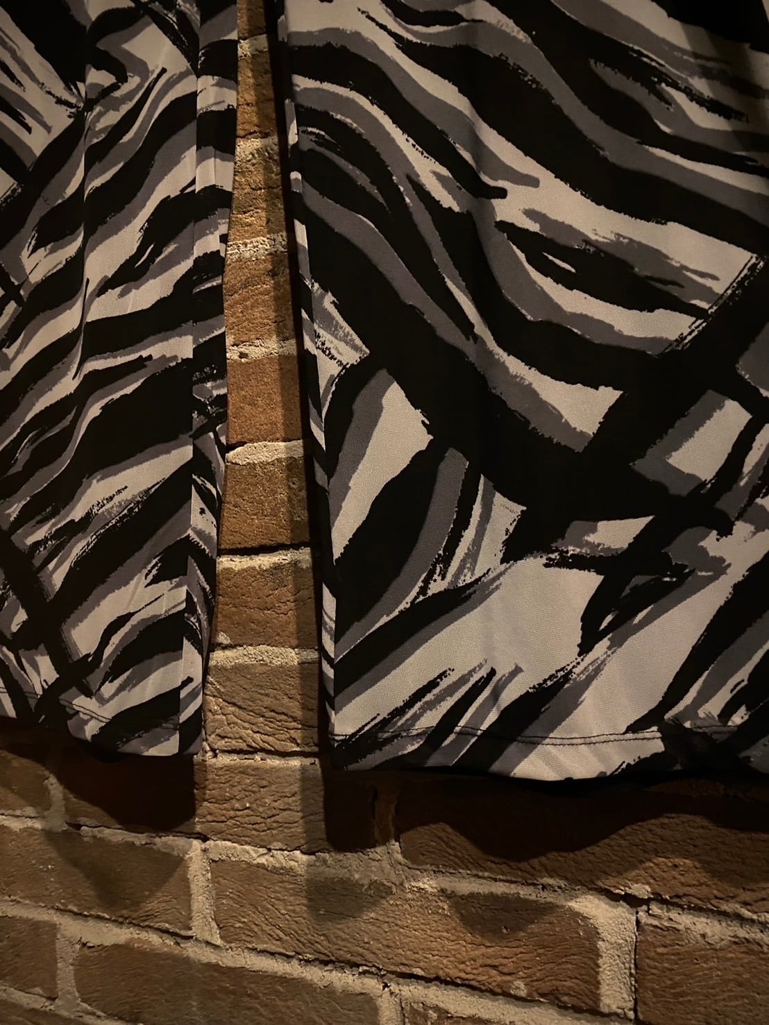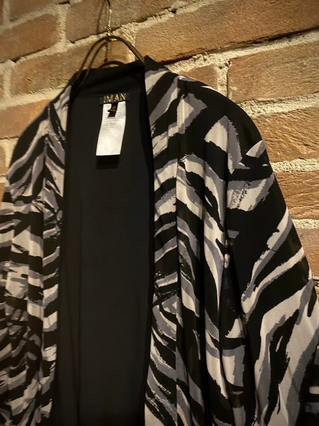 フワッと軽いポリエステル素材を用いて、モノトーンでゼブラ柄を載せた稀有な羽織のセットアップ。