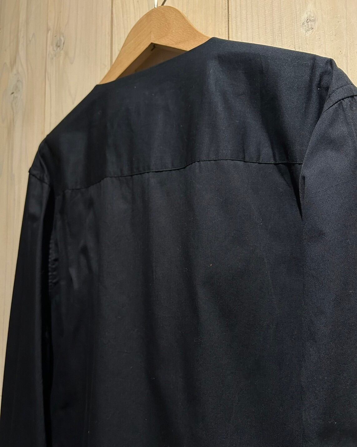 首元にはボタンが付属し着脱も楽チン。素材感もドライな質感となっており、夏場にも快適にご着用いただけます。