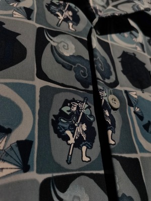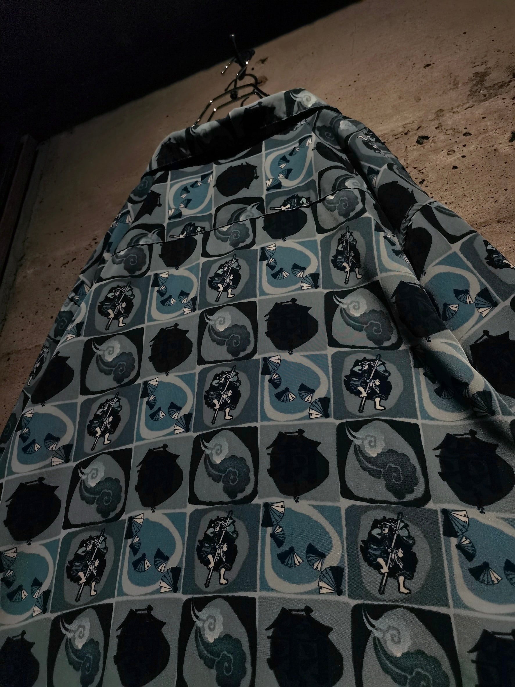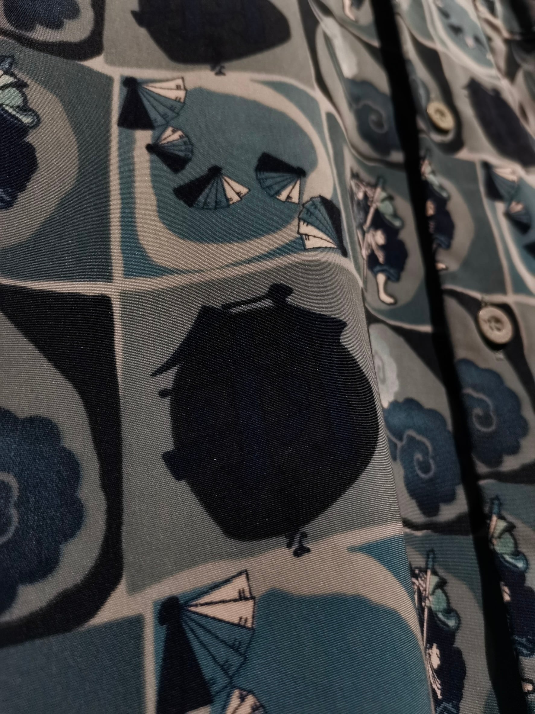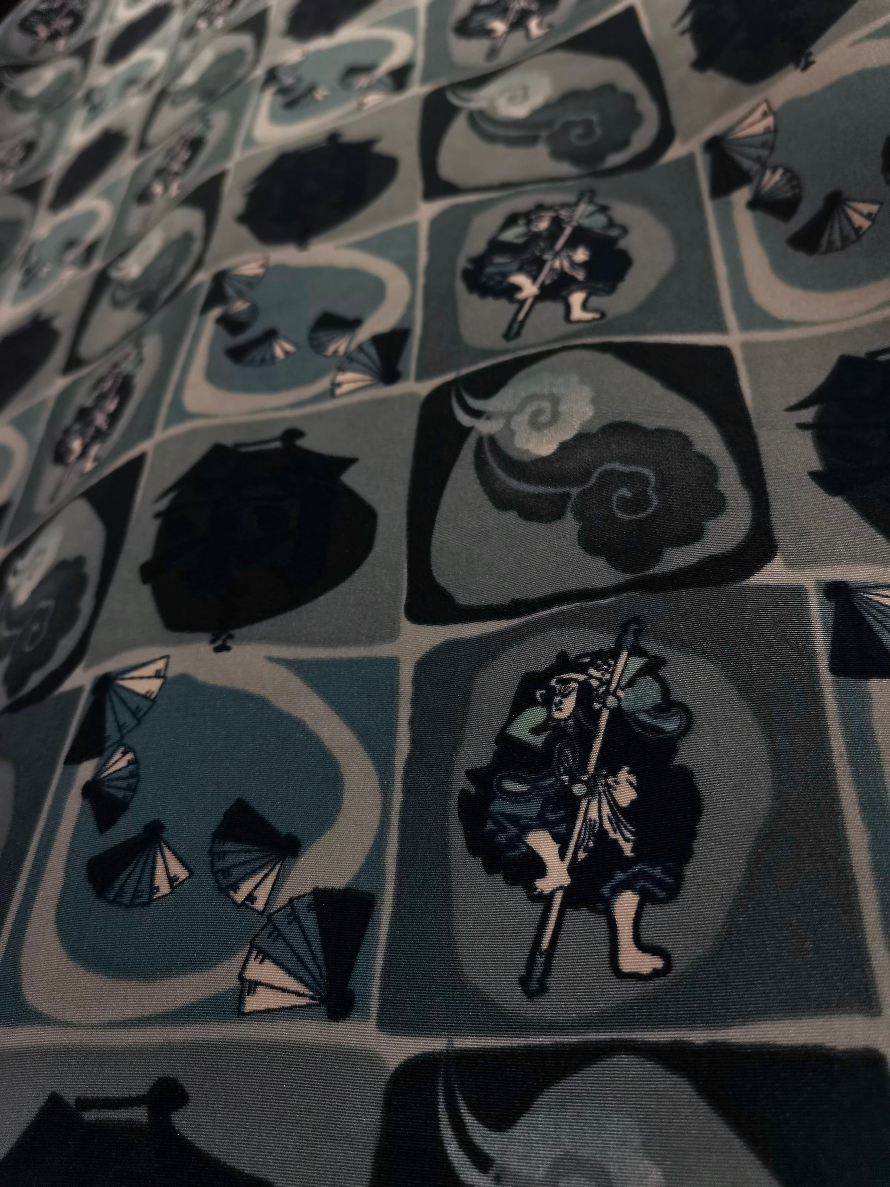 着心地軽やかなポリエステルを用いたボディに、歌舞伎や扇子など、当時のアメリカから見た日本の"和"をデザインに落とし込んだ逸品。