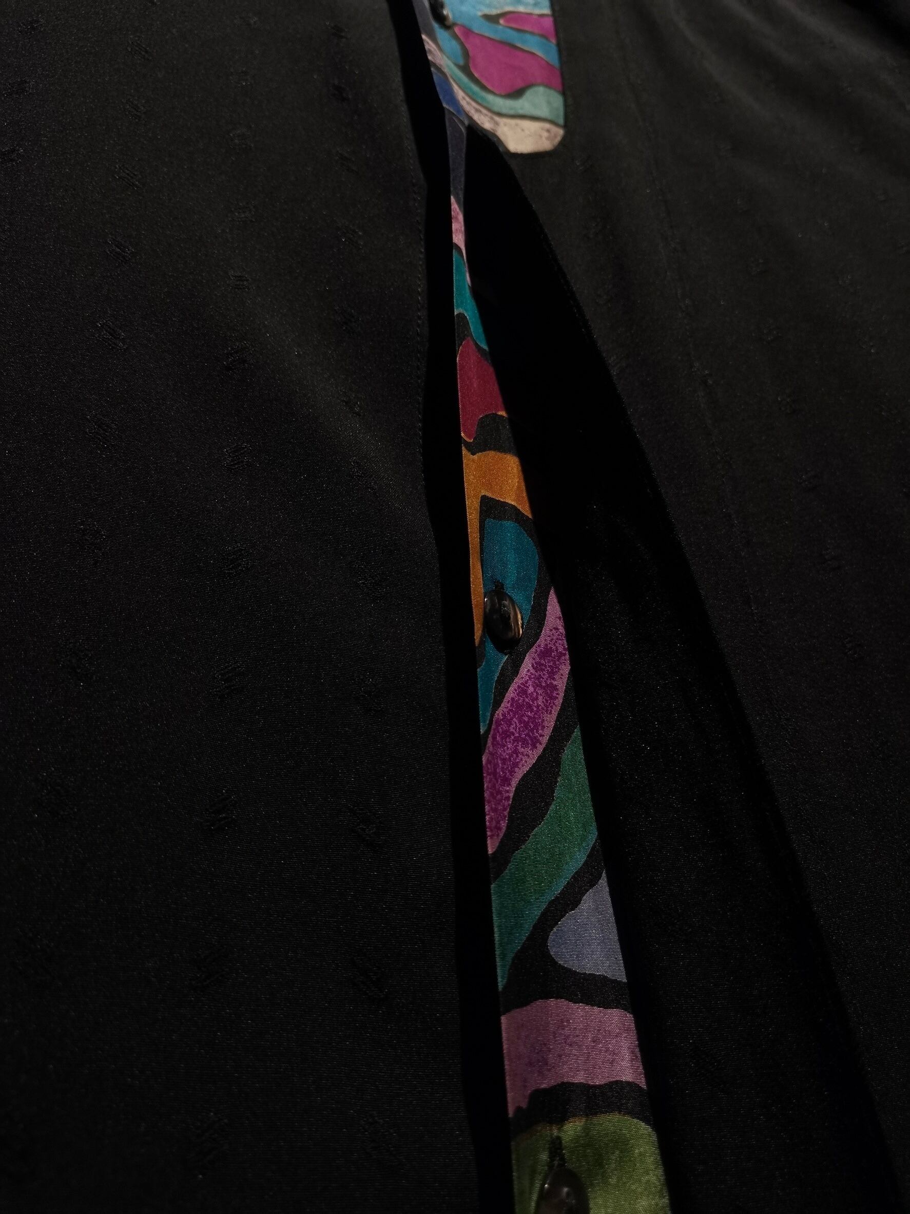 フロントのアート柄以外は比翼仕立てでデザインを引き立てる仕様に。
