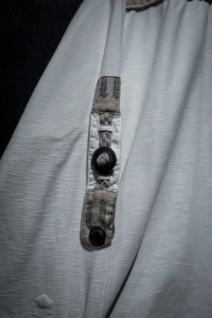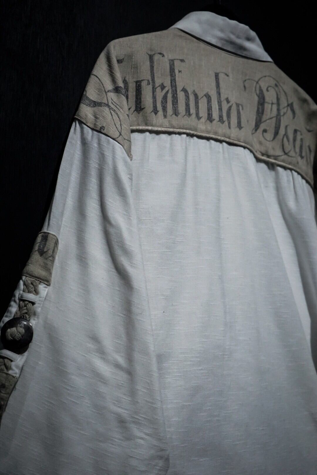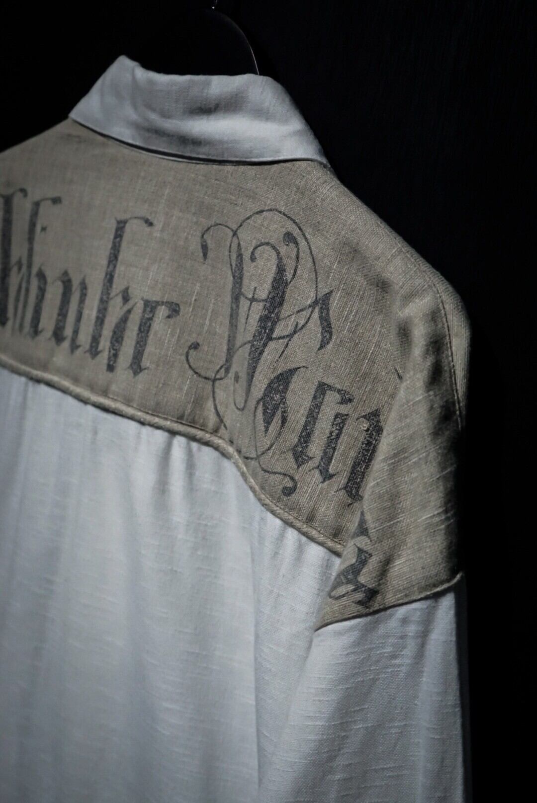 リネンという上質な天然素材を用い、その上にレトロなデザインを施した1着。絶妙なMix感を体現した至極の逸品となっております。