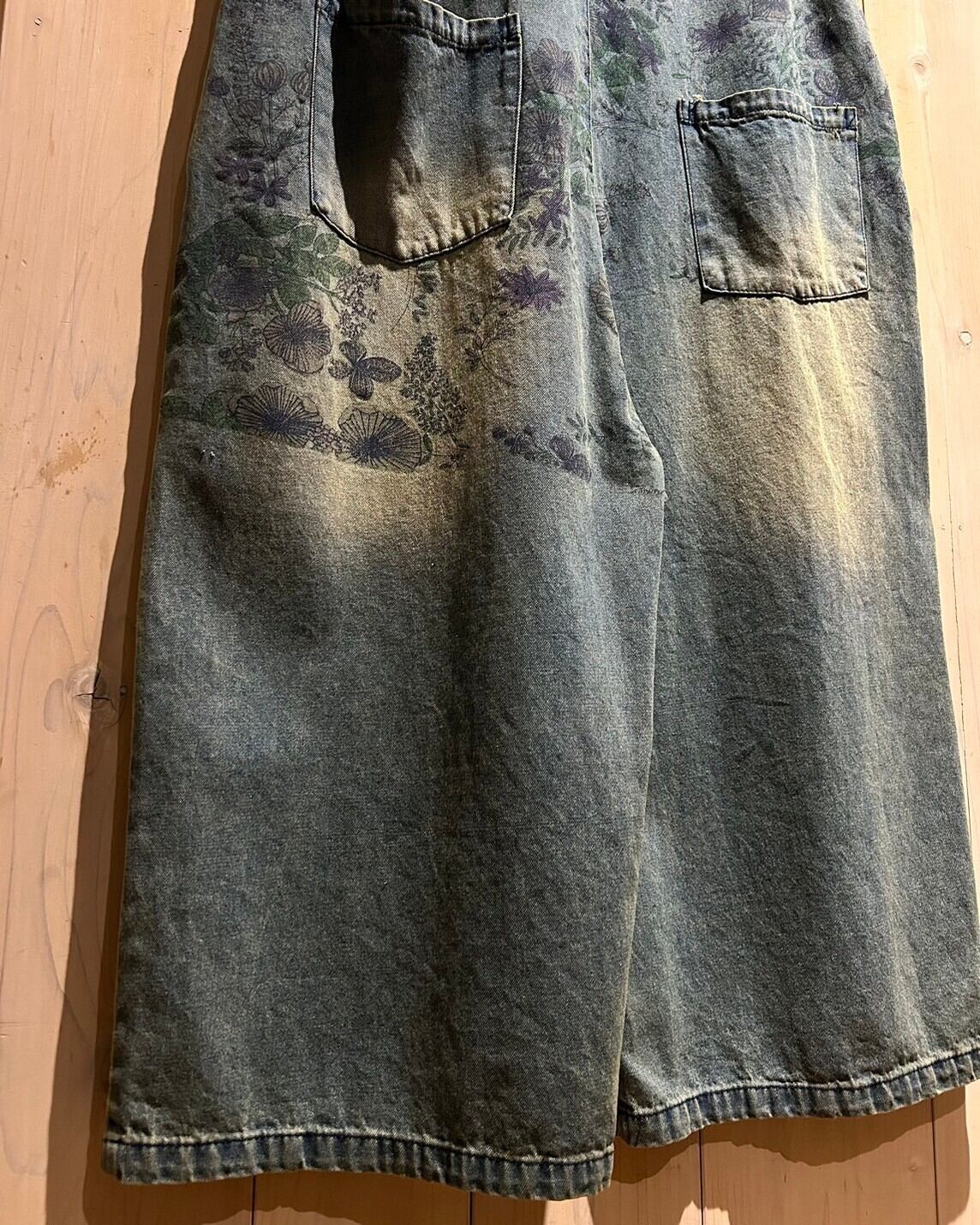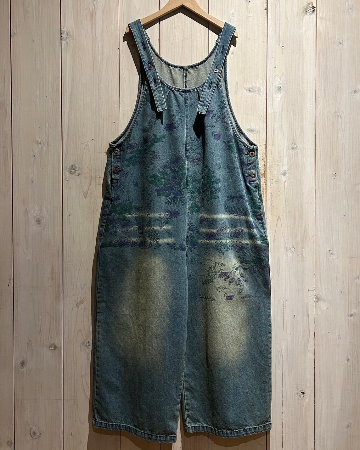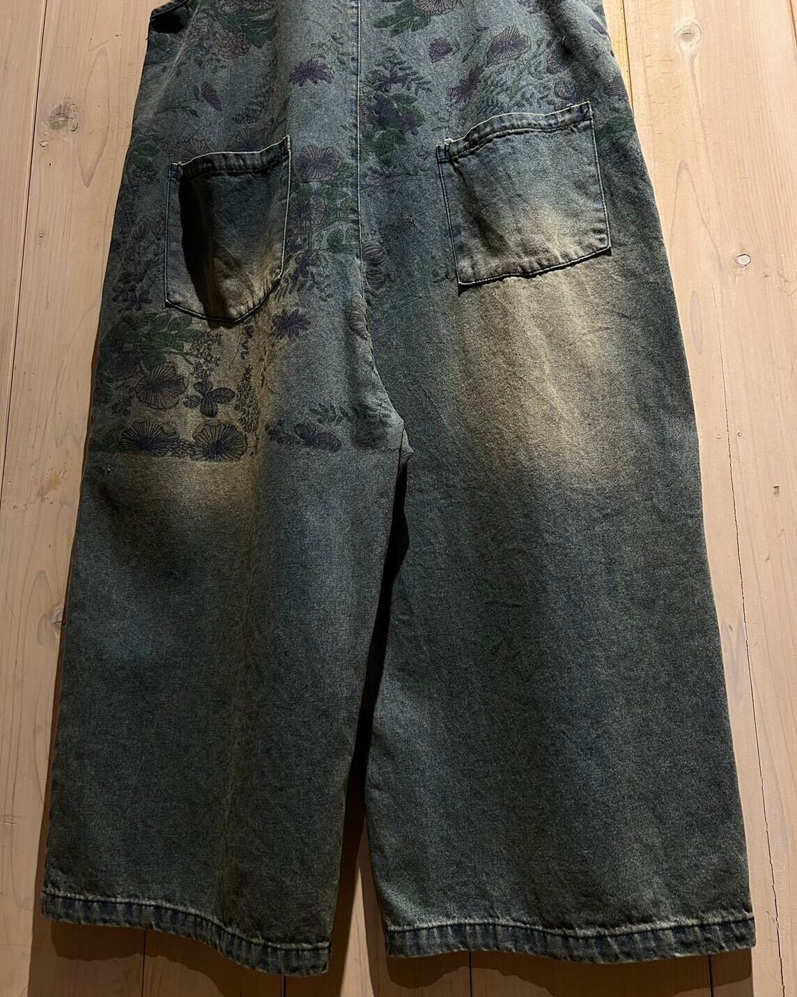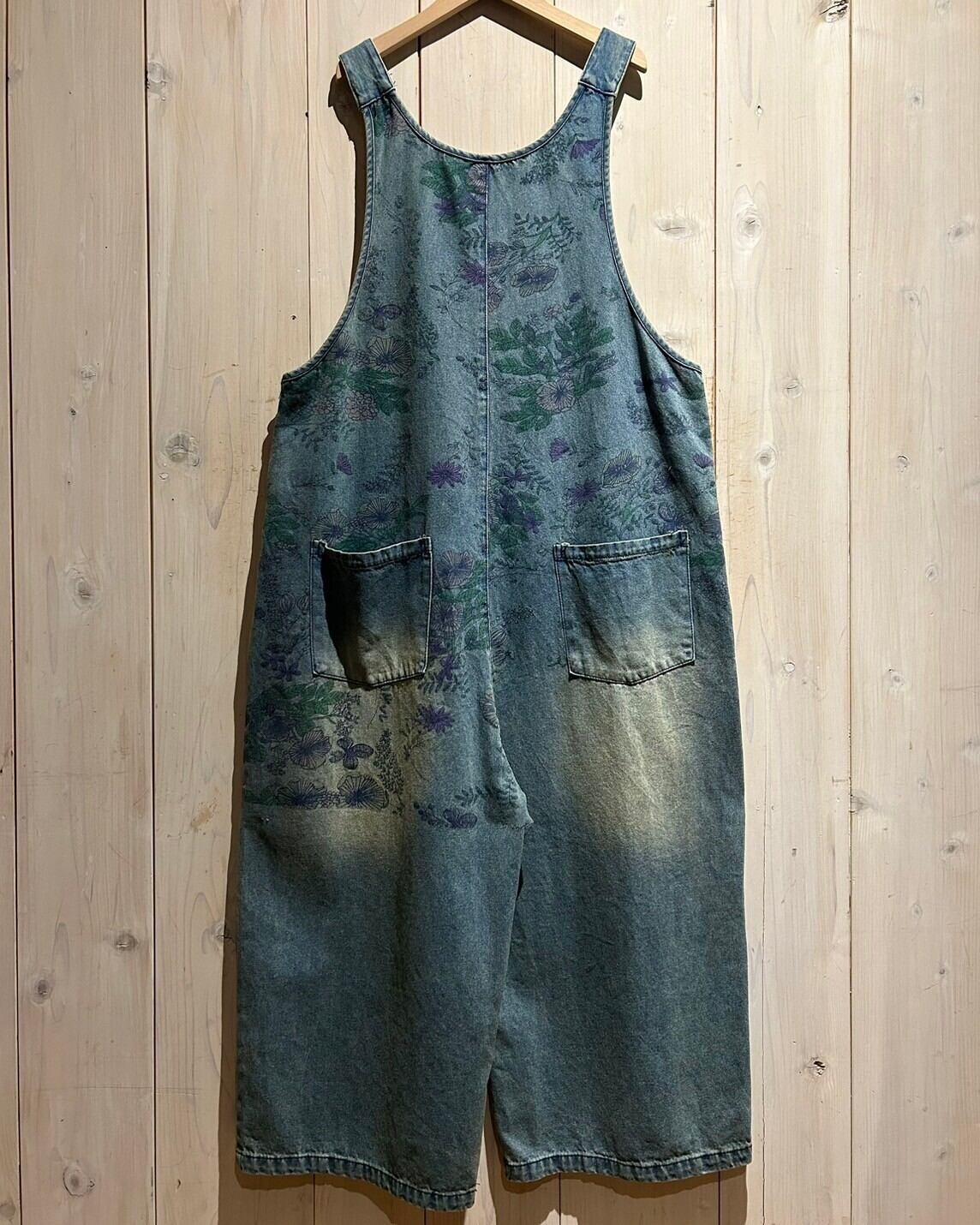 デニムのフェード具合が非常〜に良い…デニムのラフさ、オーバーオールの野暮ったさに花のプリントの上品さが合わさったデザインバランスもGOOD。