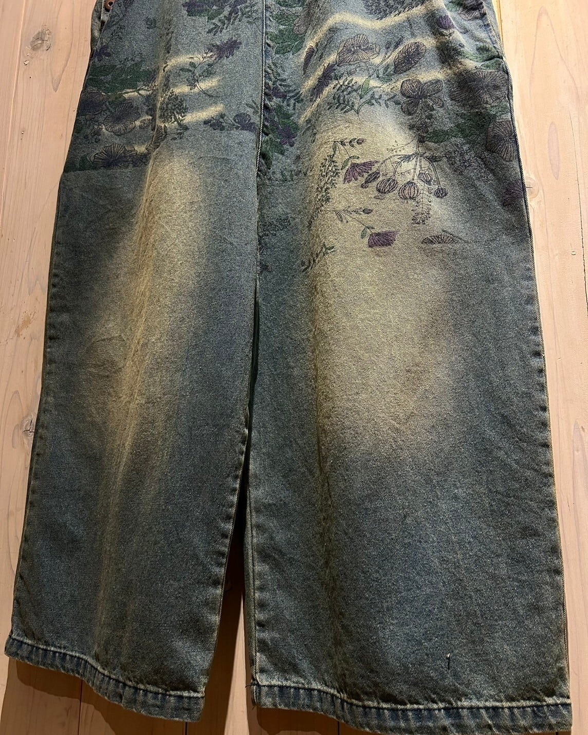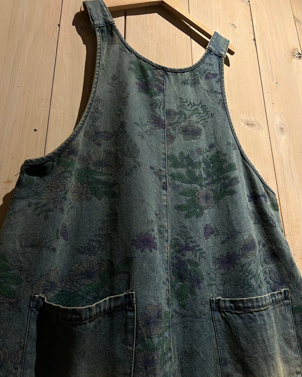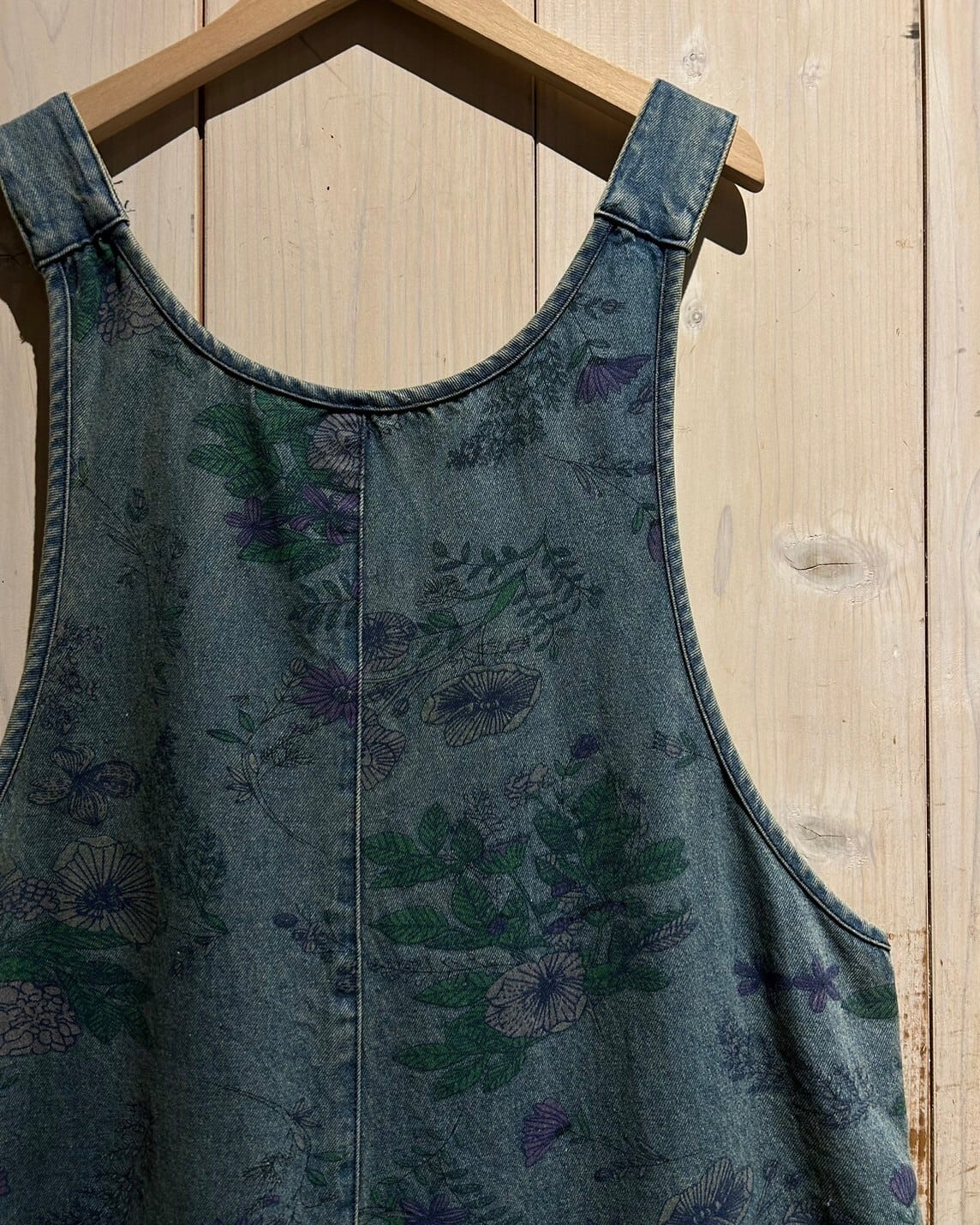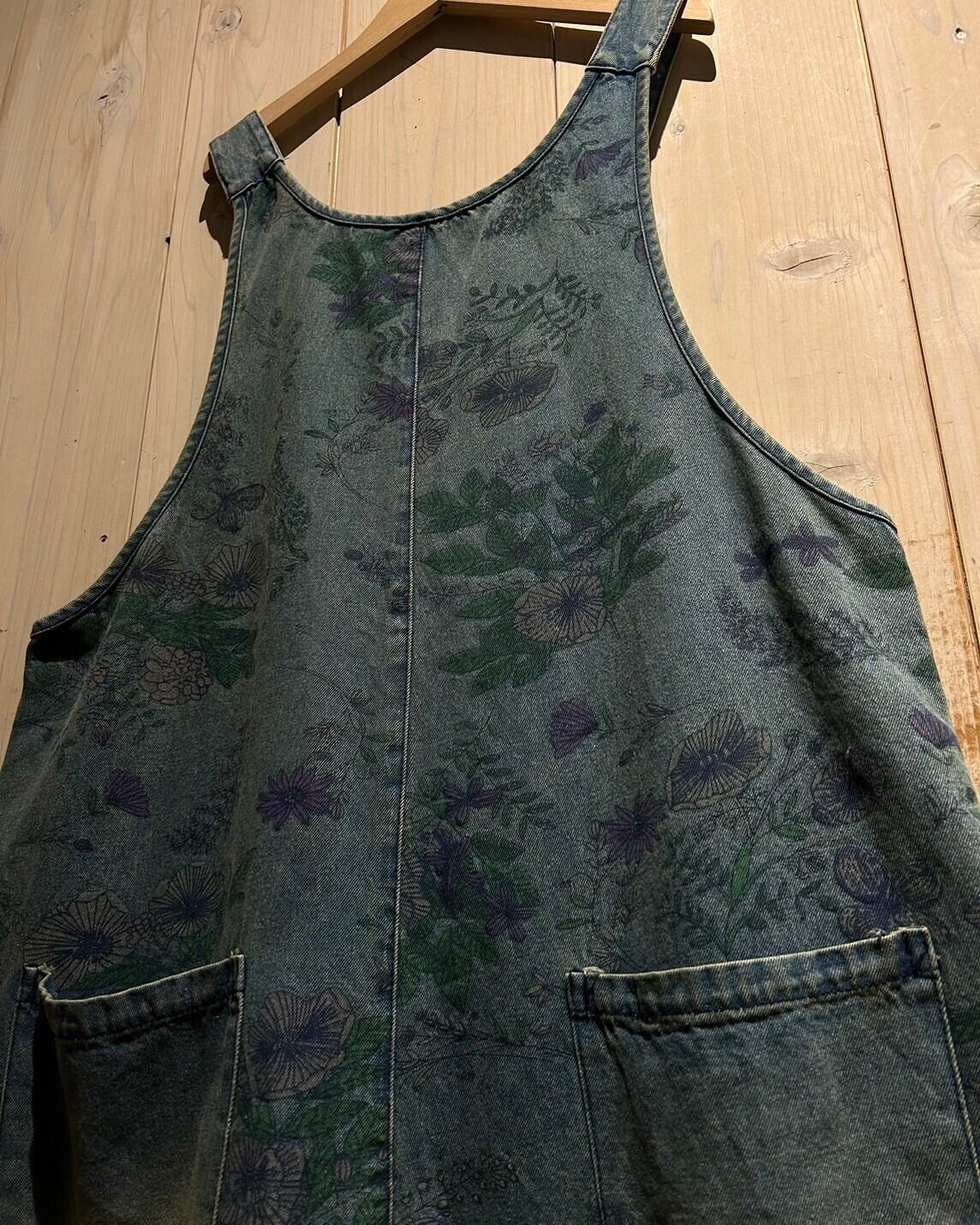 デニムのフェード具合が非常〜に良い…デニムのラフさ、オーバーオールの野暮ったさに花のプリントの上品さが合わさったデザインバランスもGOOD。