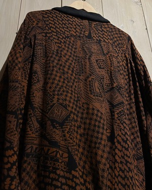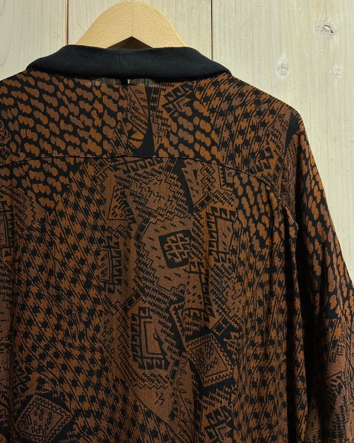 柔らかく、滑らかなビスコース生地をベースにプリーツを施し、エスニック柄を載せた逸品。ユーロらしい柄模様はもちろん、ビスコース特有の滑らかさ、細やかなプリーツが合わさって生まれるシルエットにも心を奪われますね。