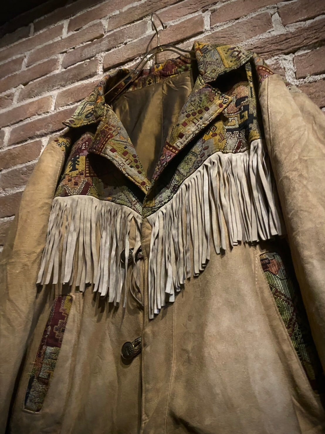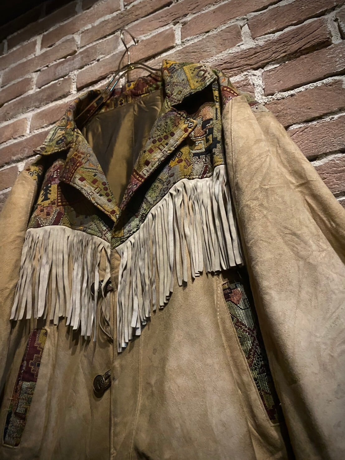 そしててヨークから袖に向かって優雅に揺れ動くフリンジを施し、着用時の躍動感が素晴らしい…フロントのループボタンのアクセントも◎