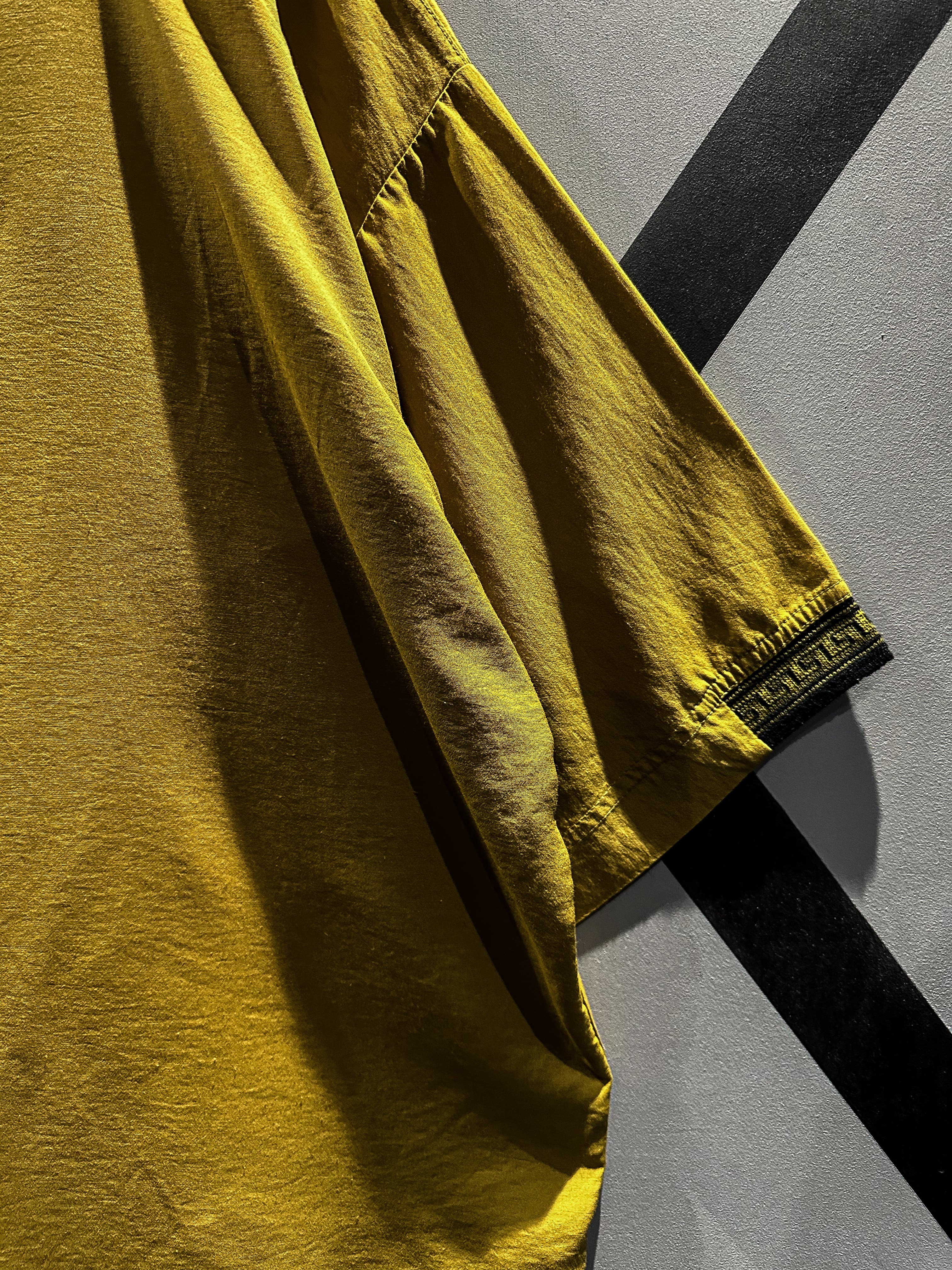 フワッと柔らかく、滑らかなビスコース×ポリエステル素材を用いたボディに、"Luci Della Citta(街の灯)"、"Ombre Rosse(駅馬車)、"Casablanca"などの1930年、40年代のレトロな名作映画のポスターを載せた半袖プルオーバー。