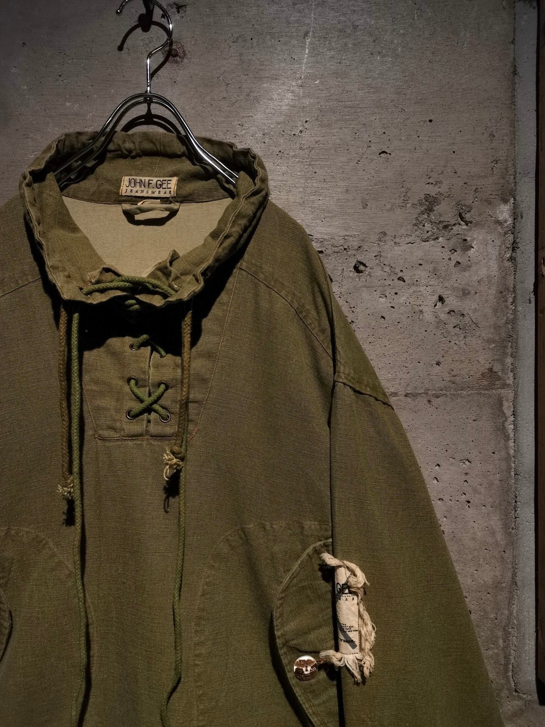 ボディサイドに大きめのフラップポケット、裾にはドローコードに、両サイドにはジップ、そして一際目を引く首元のレースアップにドローコードと、シンプルなルックスながら服好きの心を掴んで離さないギミックを盛りに盛り込んだ1着。