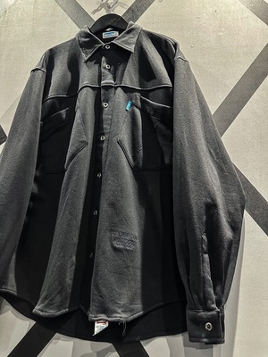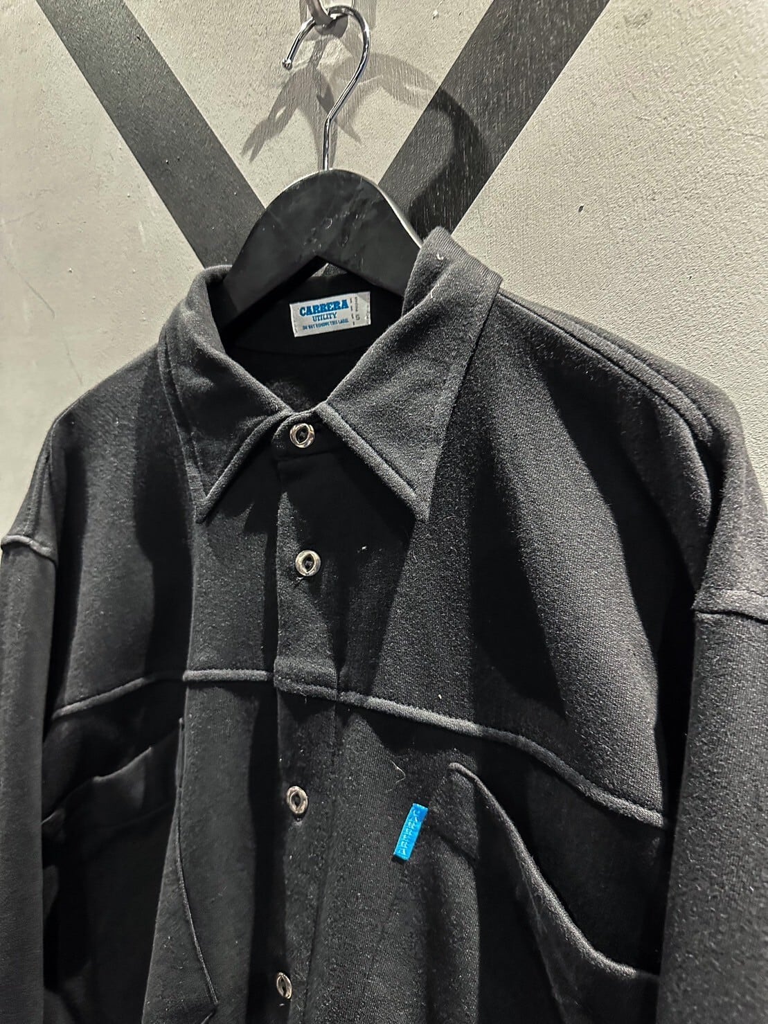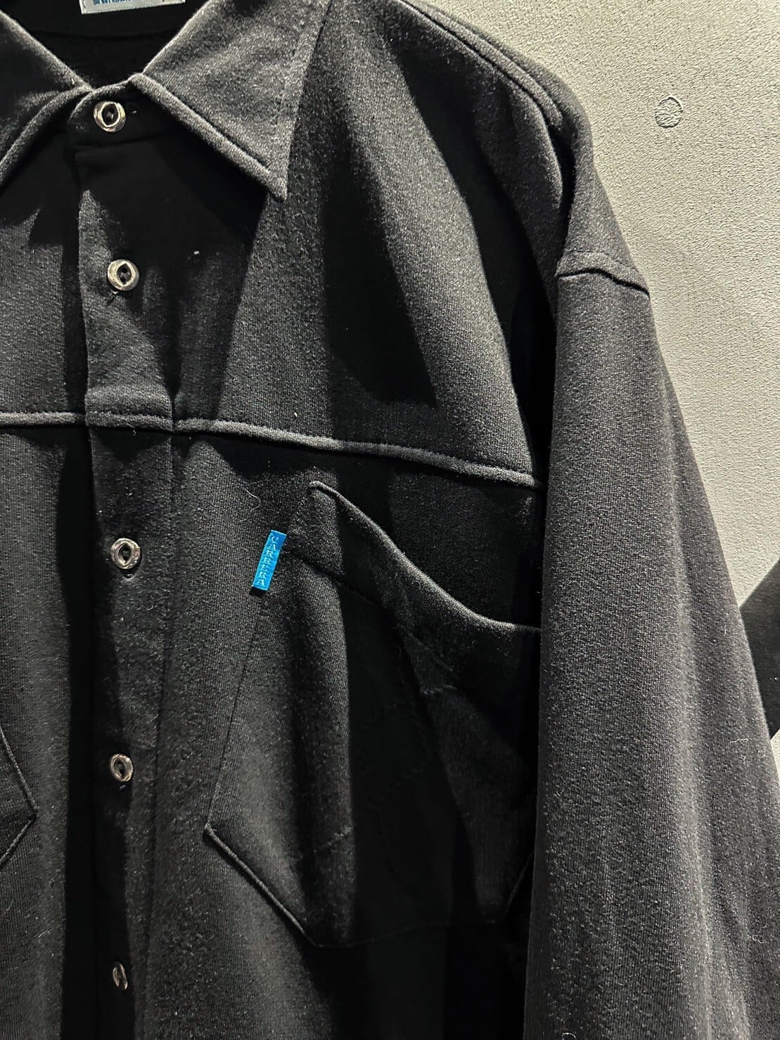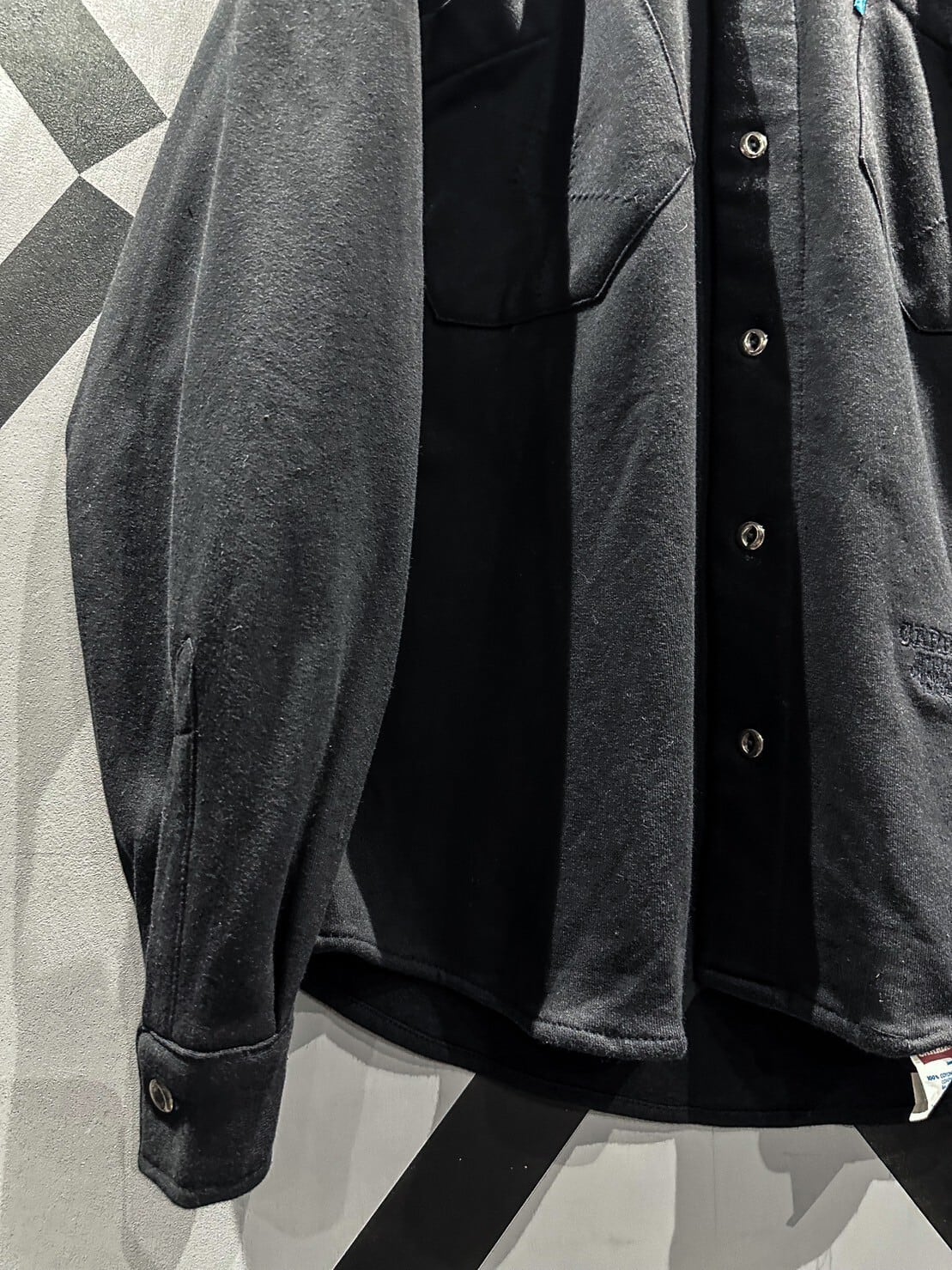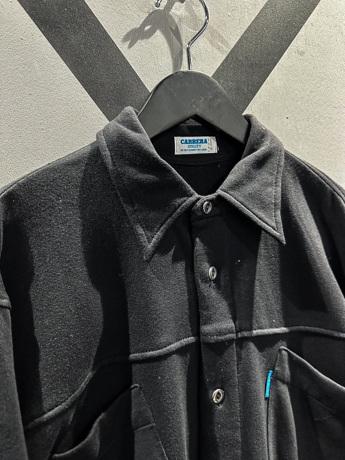 ブラックのスウェット素材を用いて、稀有な長袖シャツジャケットに仕上げたイタリーメイドの1着をご紹介致します。