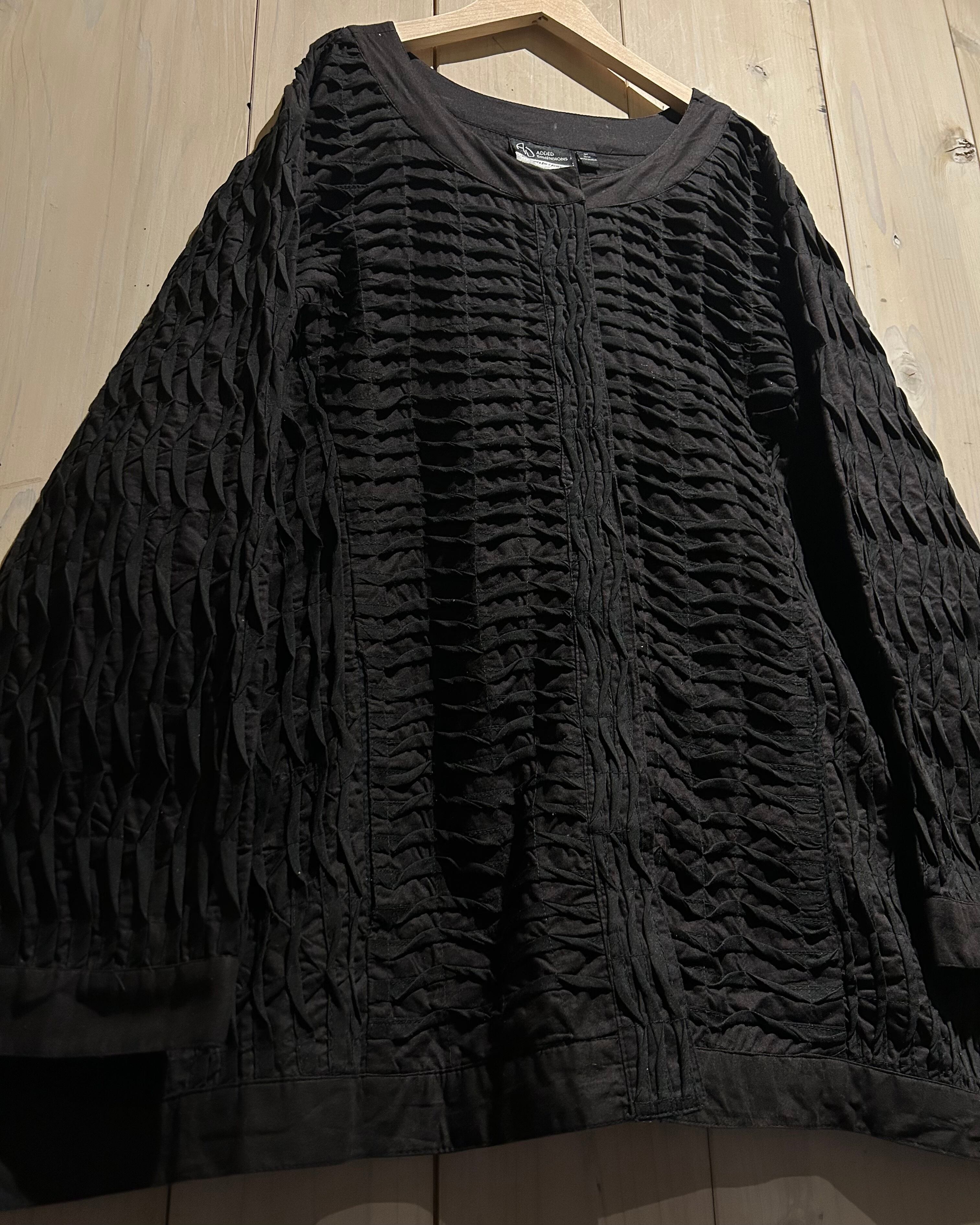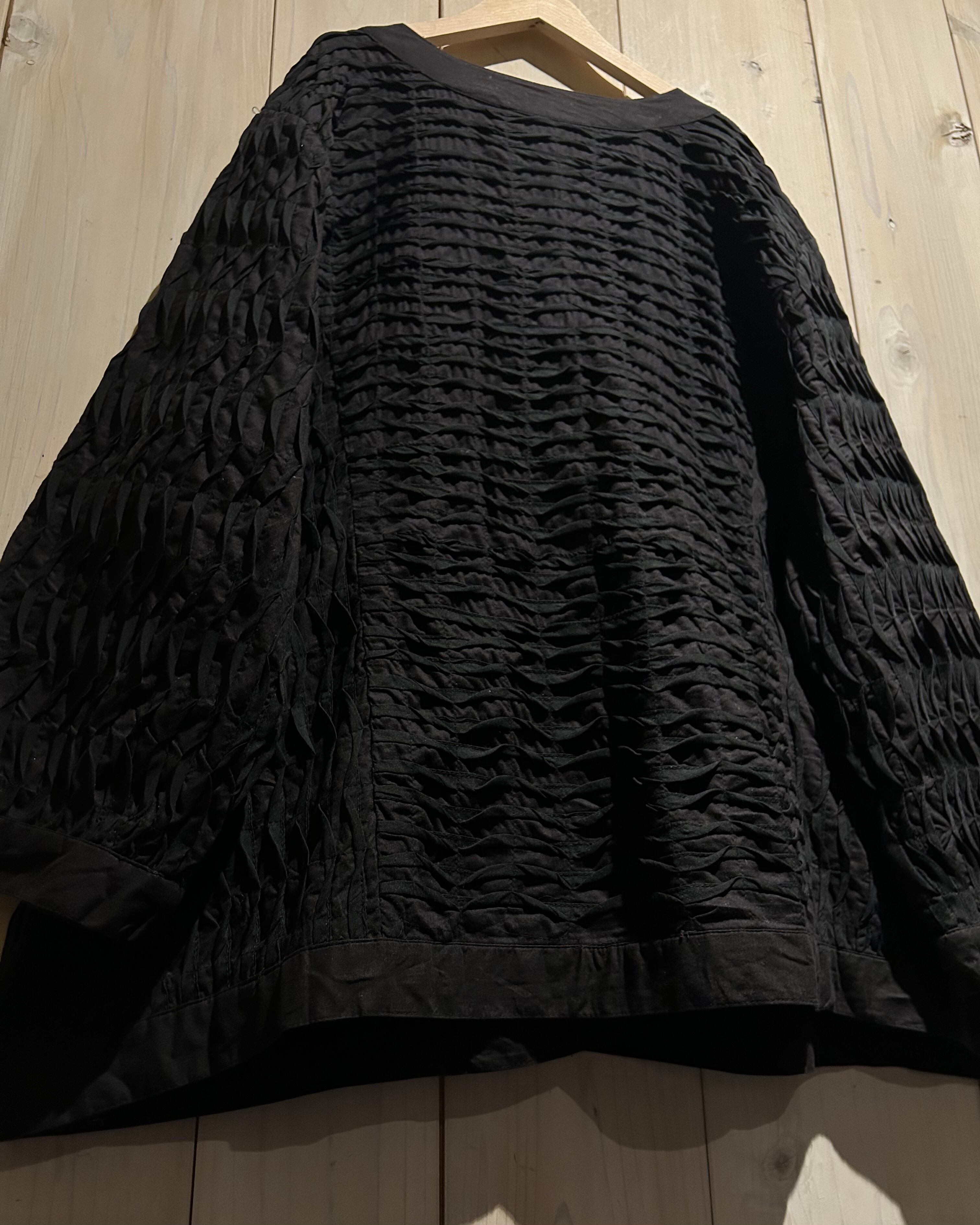 高い技術力で成された加工。独特な立体感がありながらもコーディネートに馴染んでくれ、今からの季節でもヘビロテ確定の1着です。