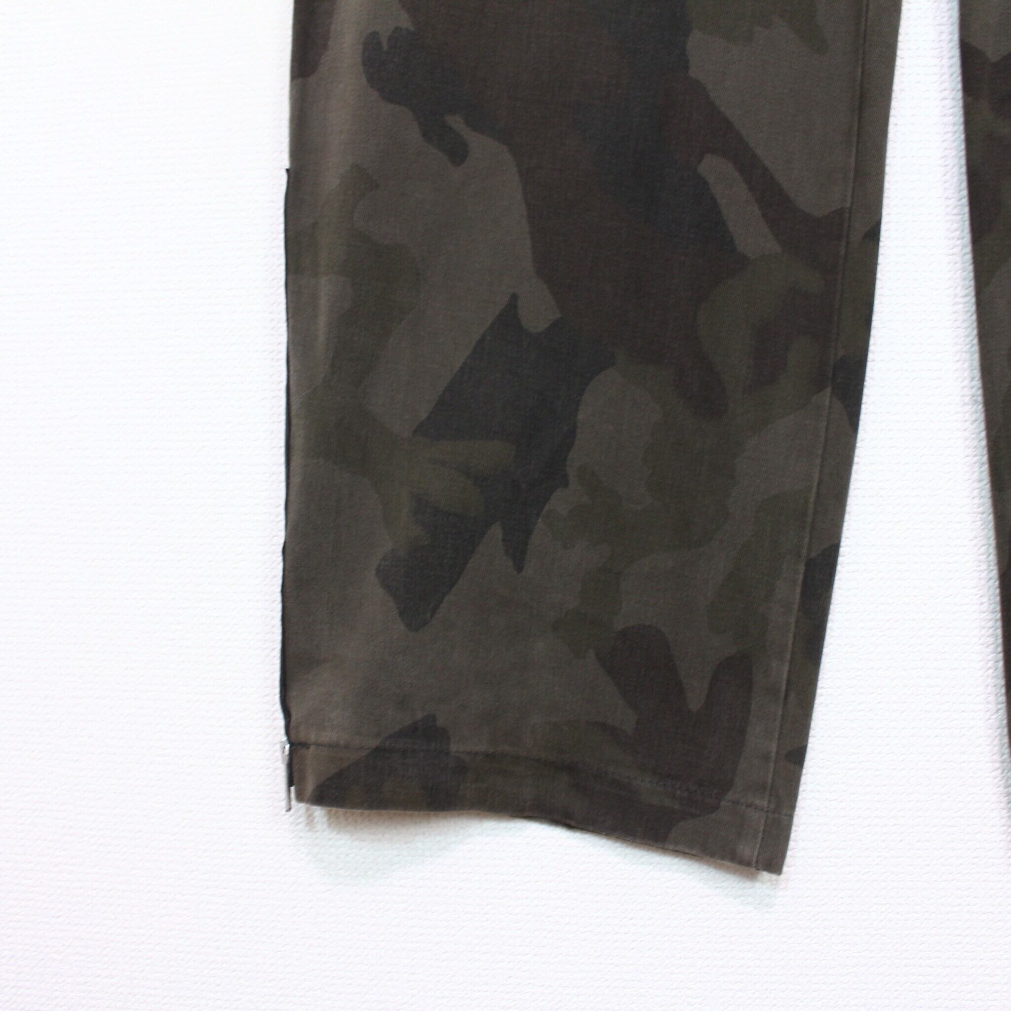 テーパードシルエットや絞りの効いた個体が多い中、こちらは裾にかけてストンと落ちるワイドなストレートシルエット。今の気分を捉えつつ、裾にはジップが施され開くことでシルエットに変化もつけることができます。