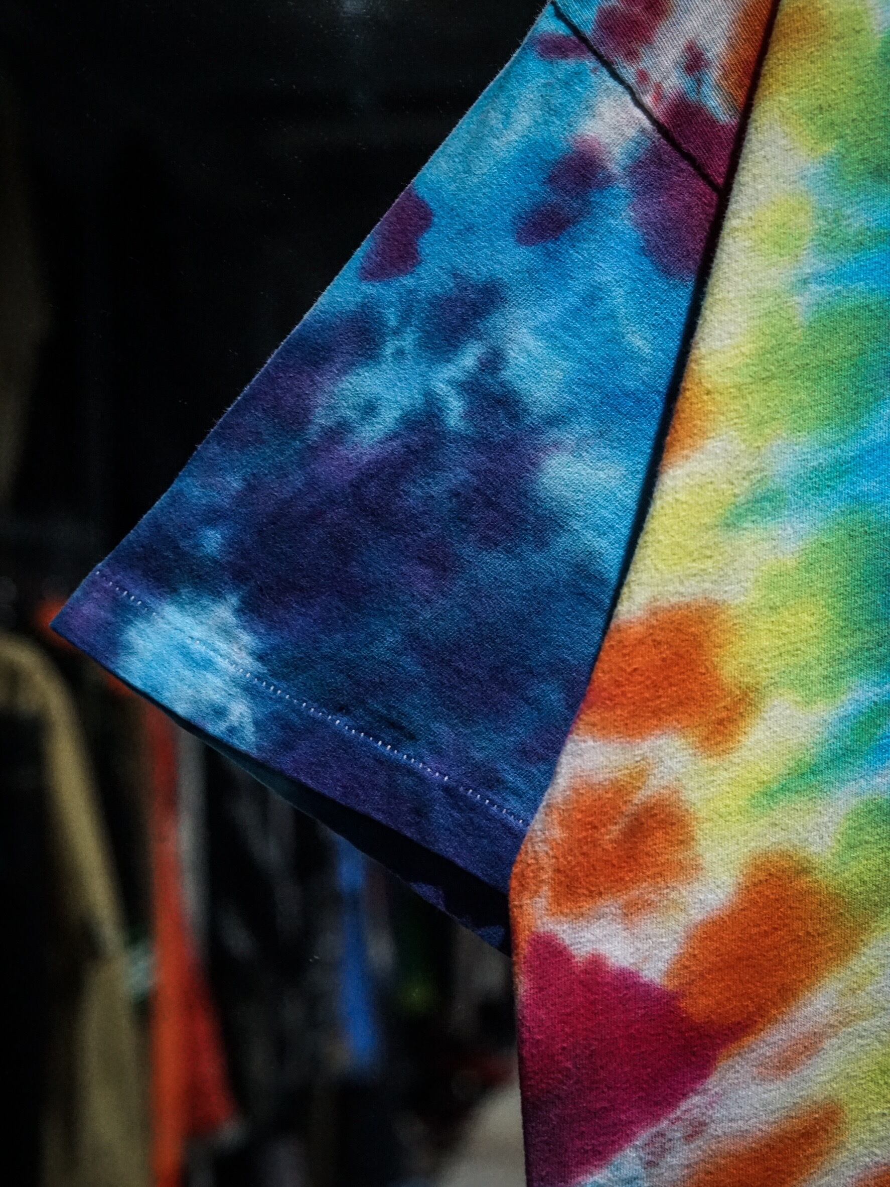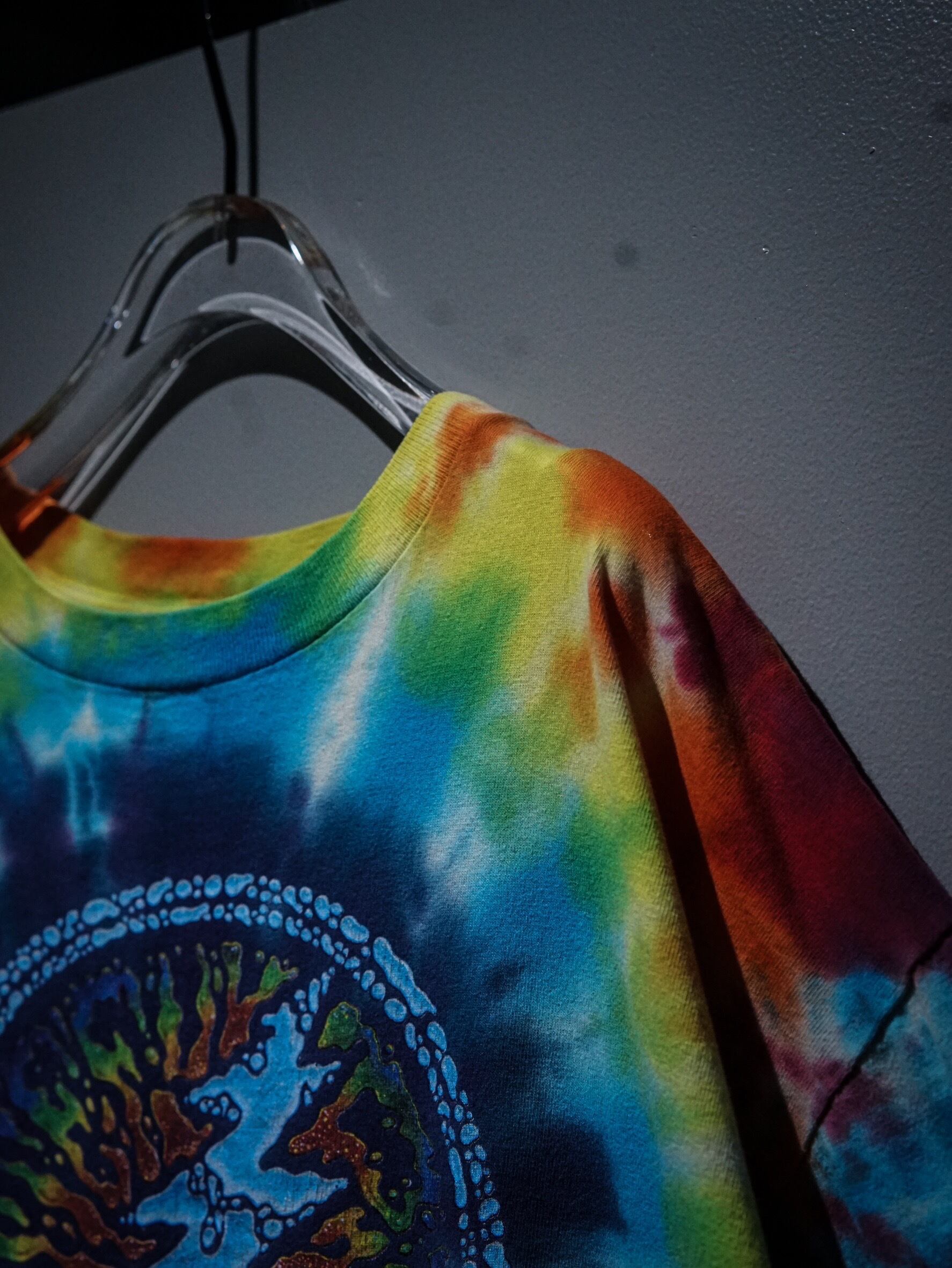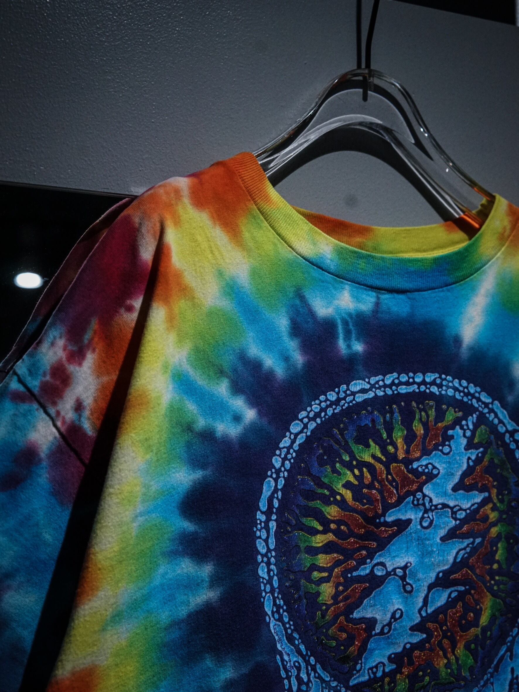 バンドらしいサイケデリックなタイダイ染めを施したボディに、アイコニックなスカルに薔薇のデザインをON。アーティストの世界観がアートワークとして反映されている1着で、デザインのノリは言わずもがな、完成度も非常に高い逸品ですね。