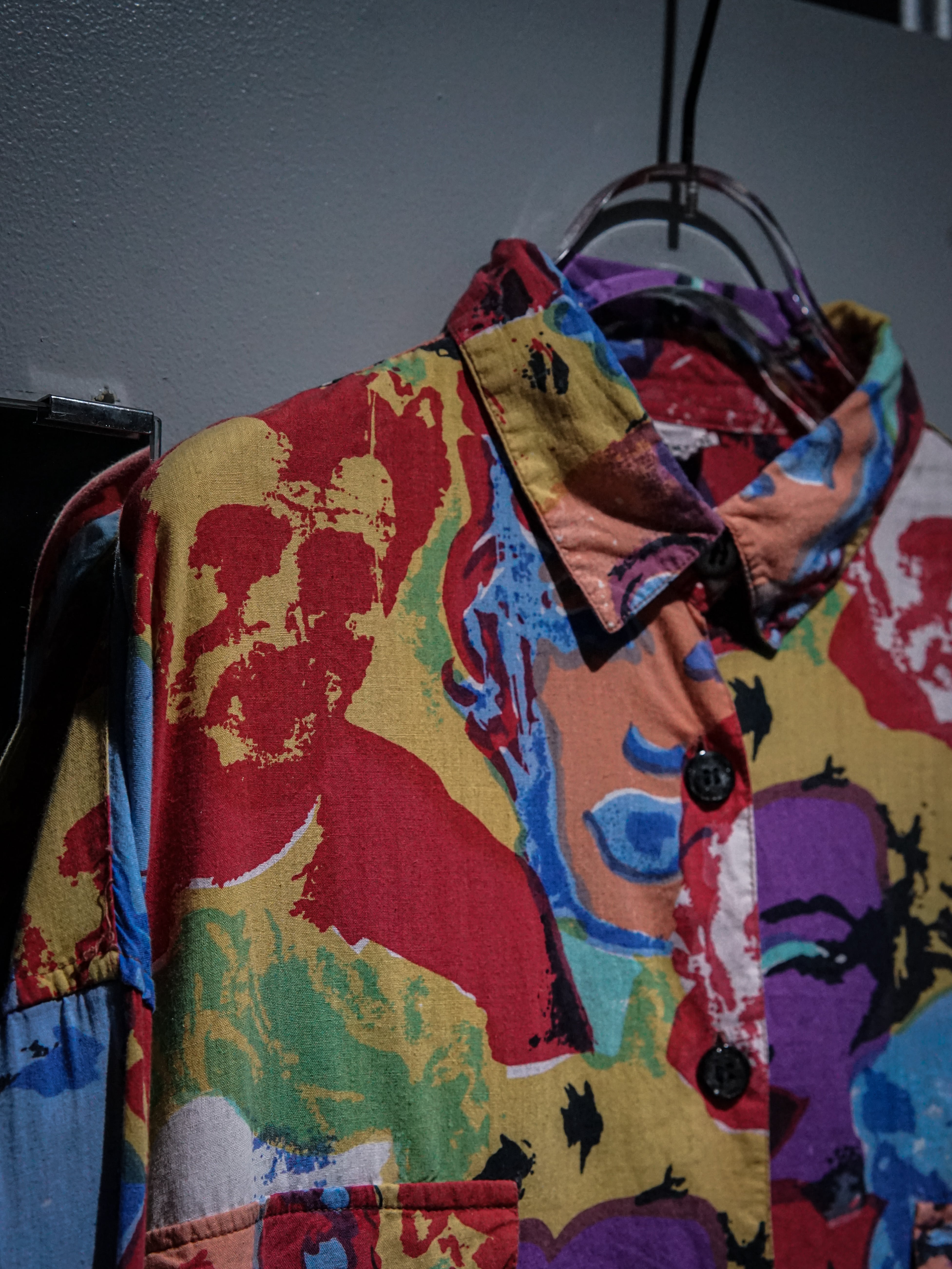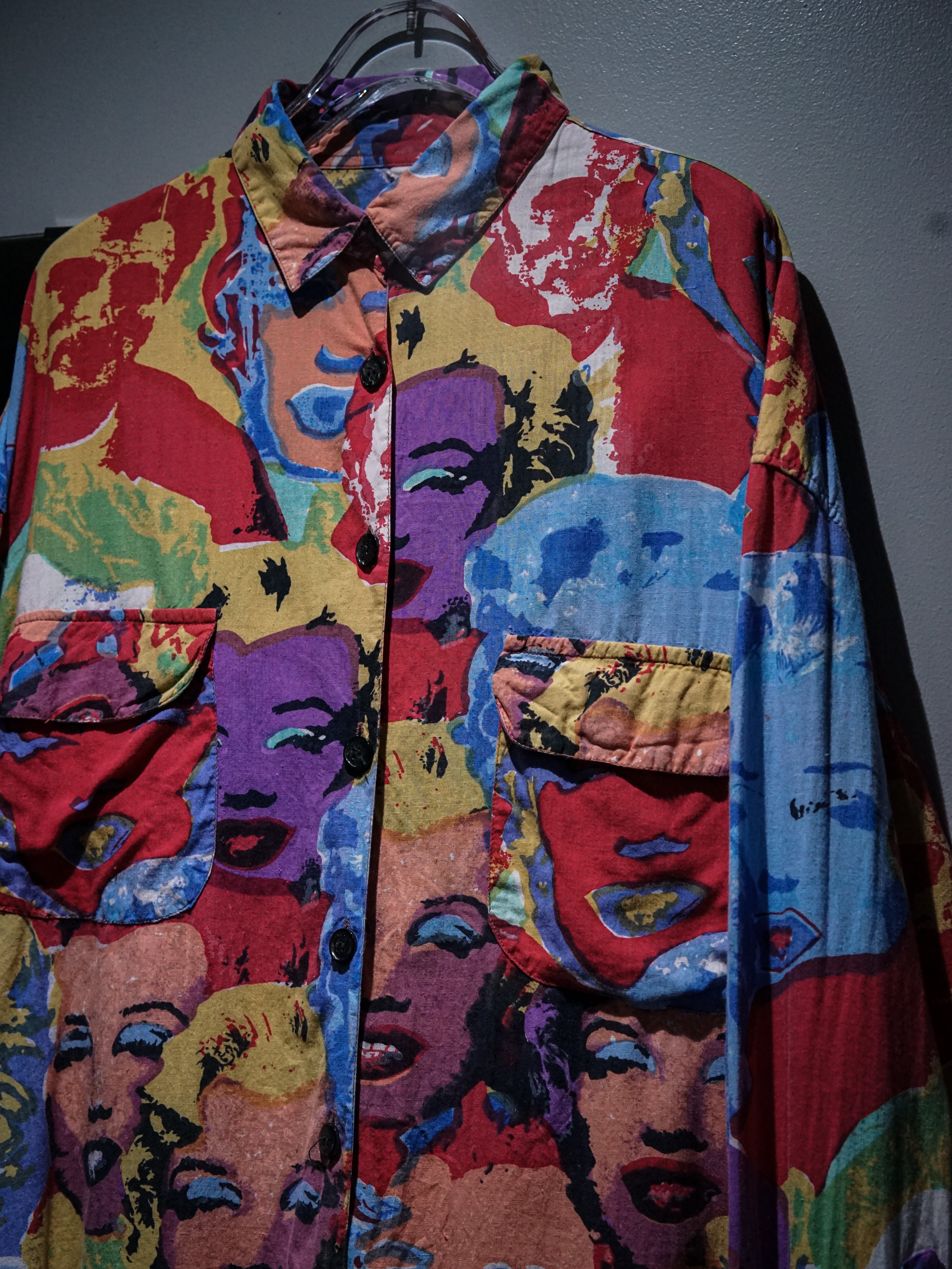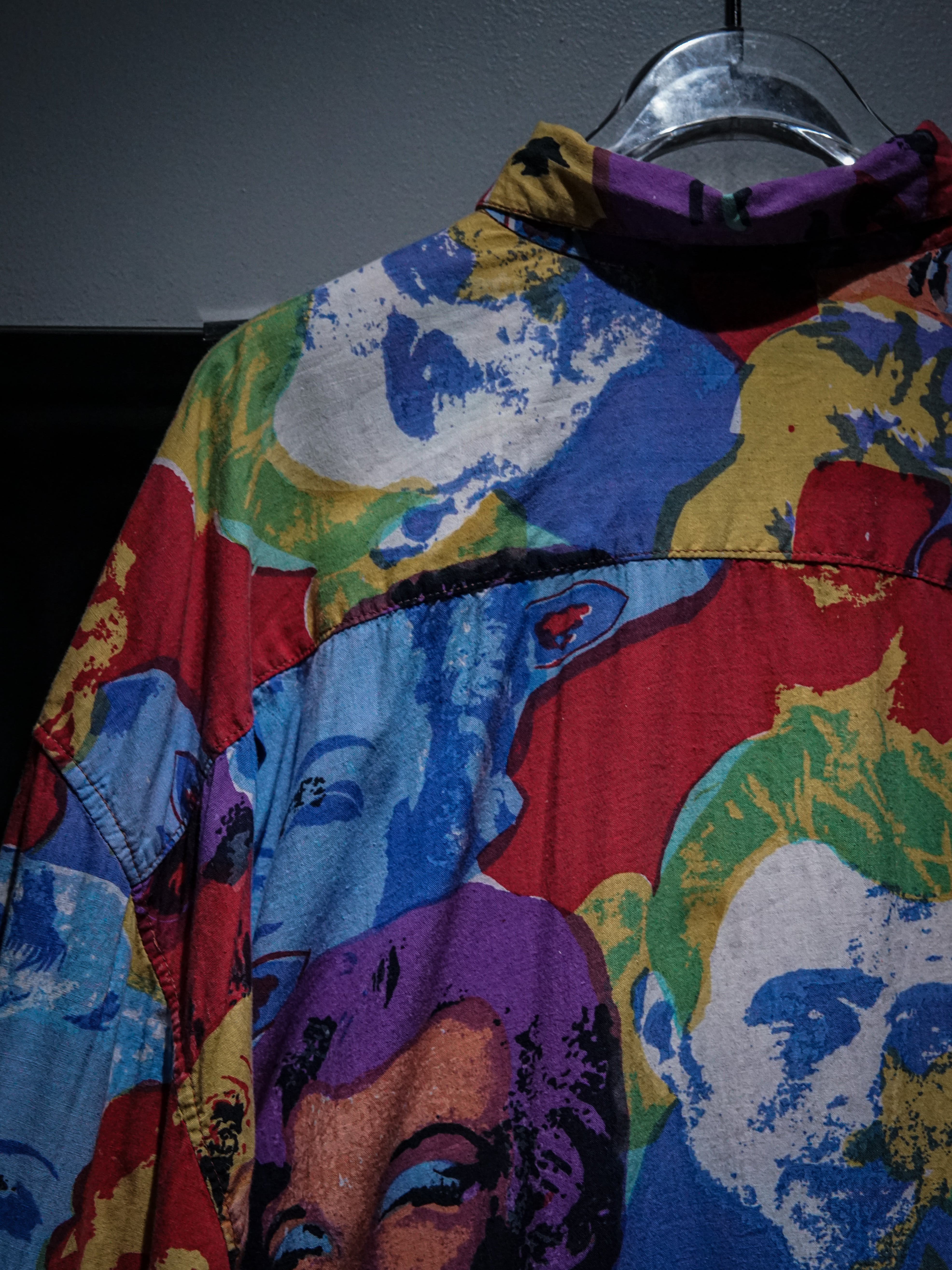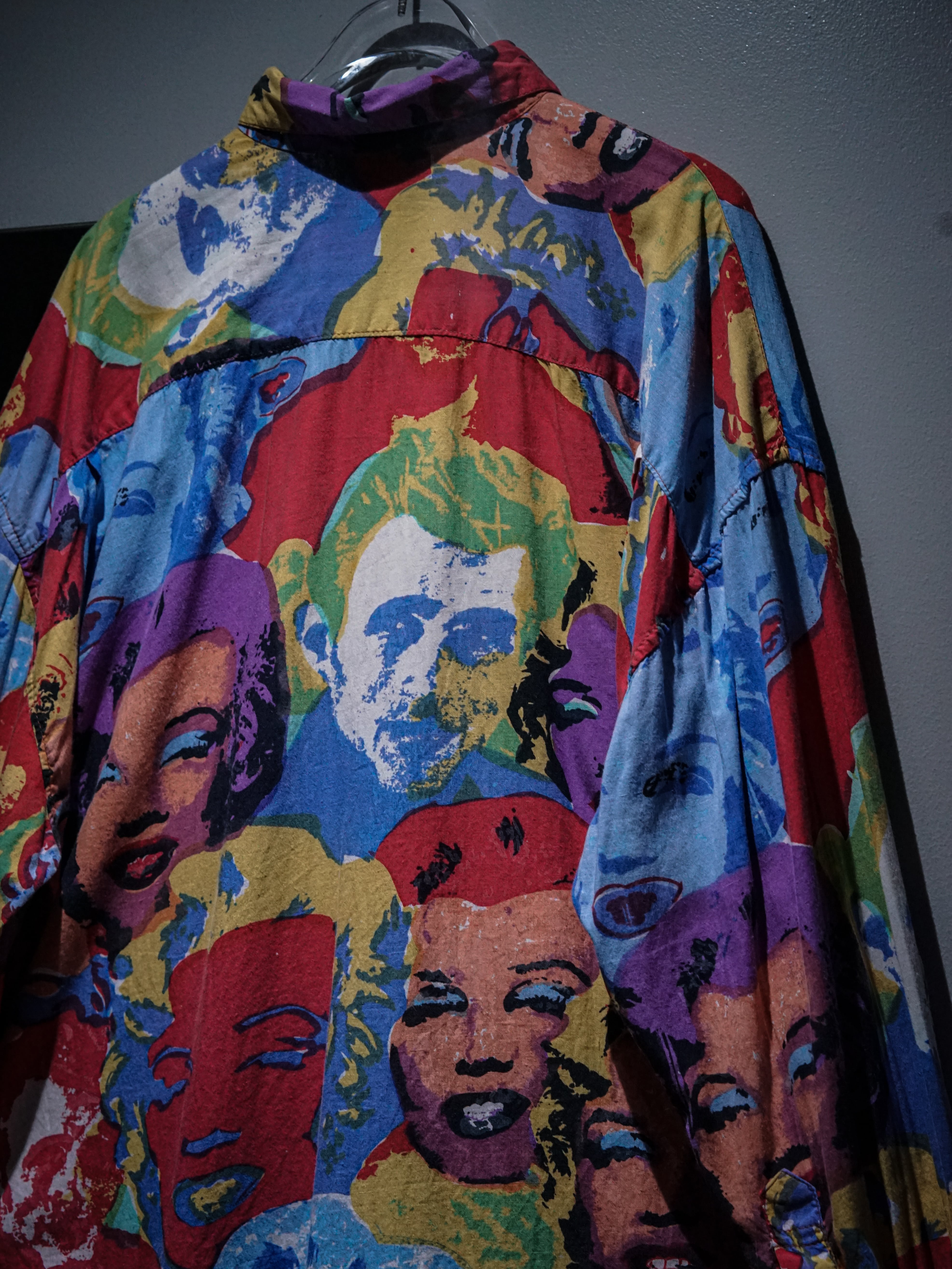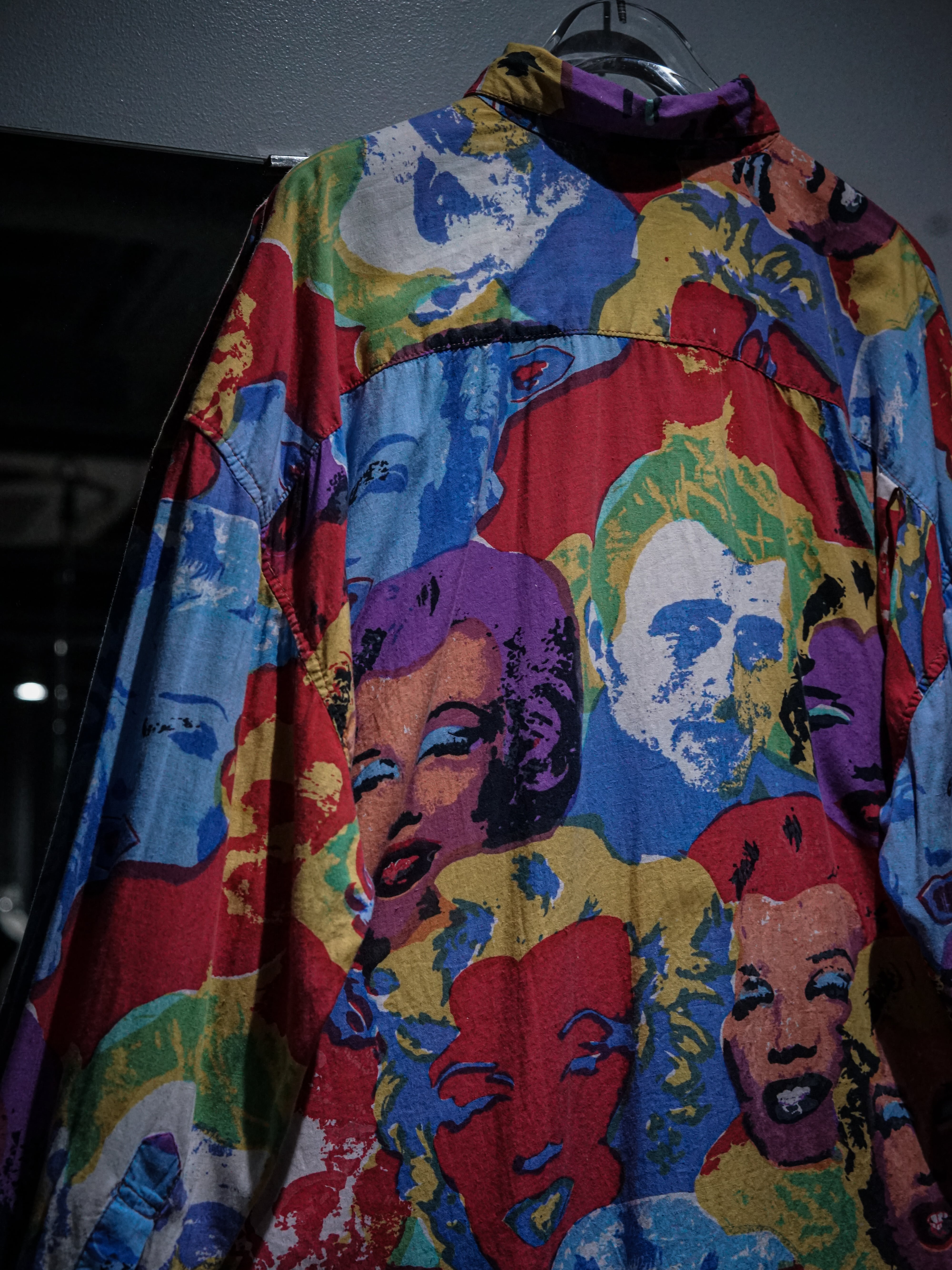 肌触りの良いシャツ生地をベースに、ポップアートの第一人者"アンディ・ウォーホル"の作品を彷彿とさせる"マリリン・モンロー"を全面に載せた長袖シャツ。
