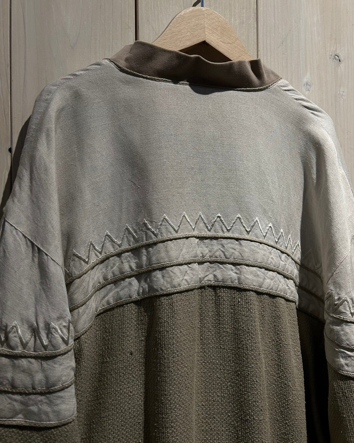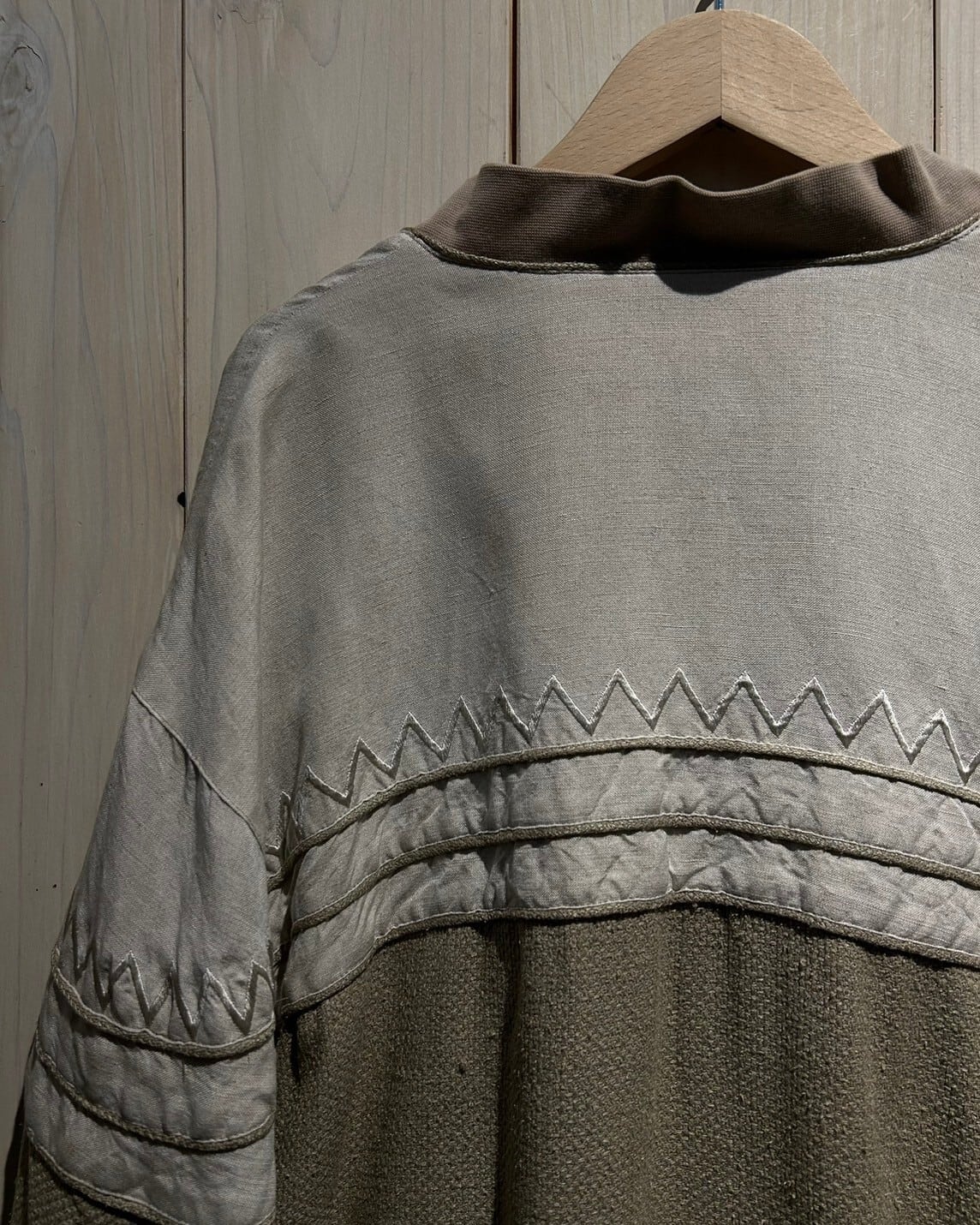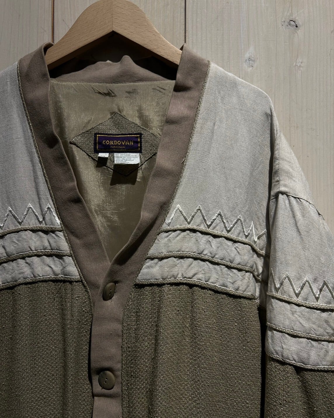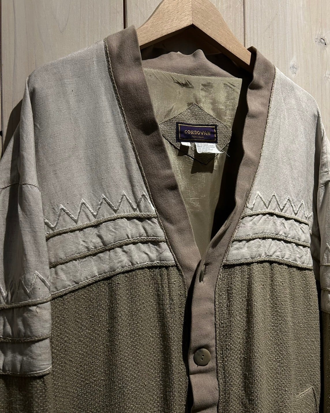 上質なシルク素材をベースに、ヨークにハリのあるリネンを切り替えた稀有なカーディガンジャケット。