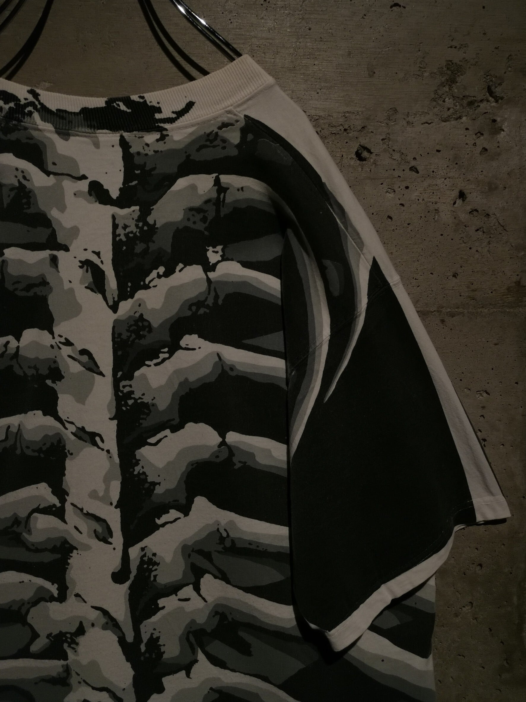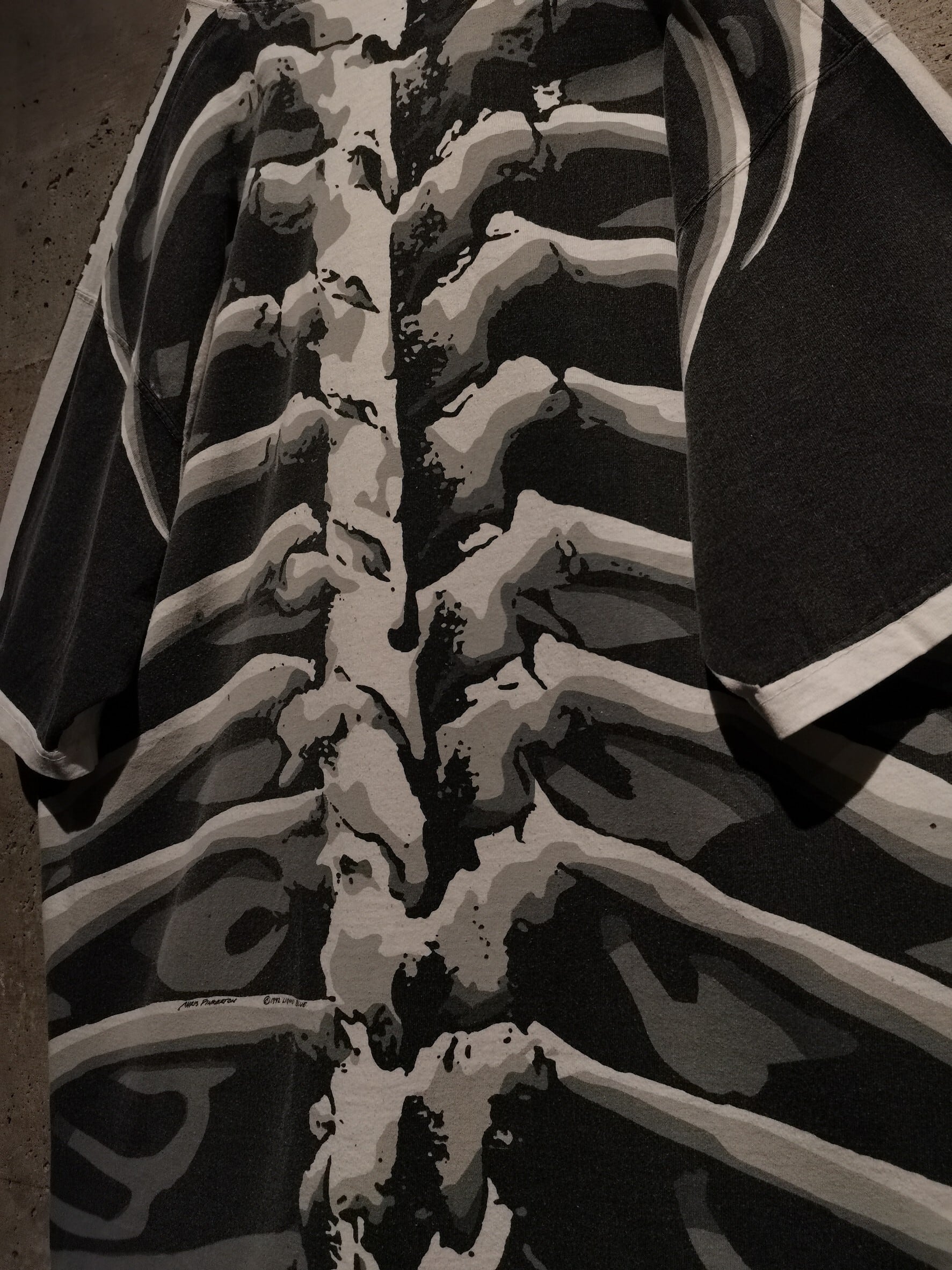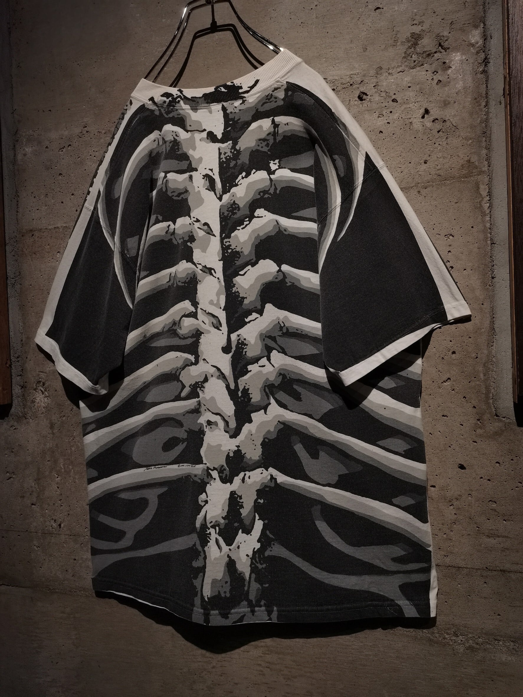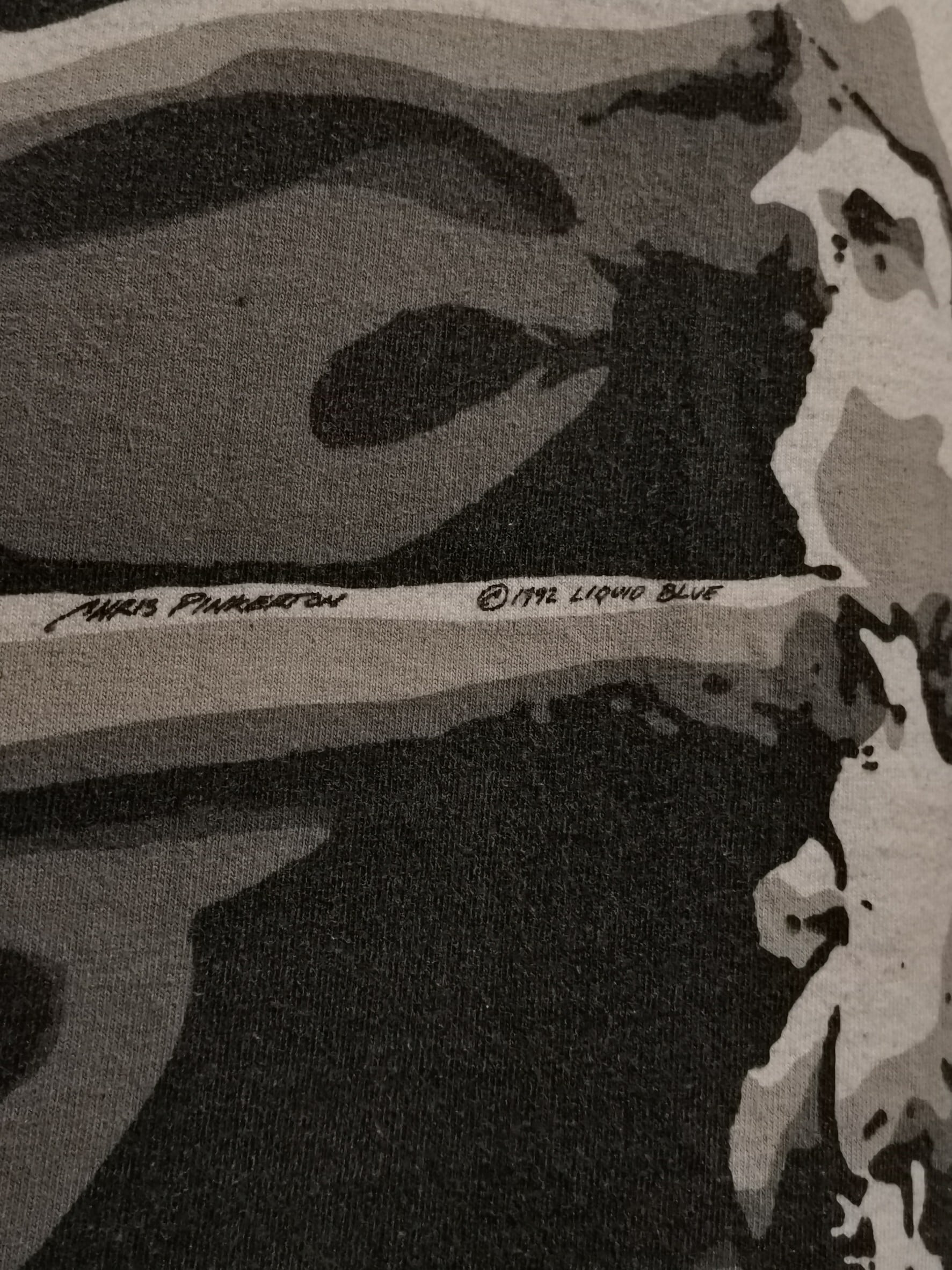 白のボディを埋め尽くすように、大胆なオールオーバープリントによってスカルをボディ全面に載せた、抜群のインパクトを放つ90's "LIQUID BLUE" のTシャツ。