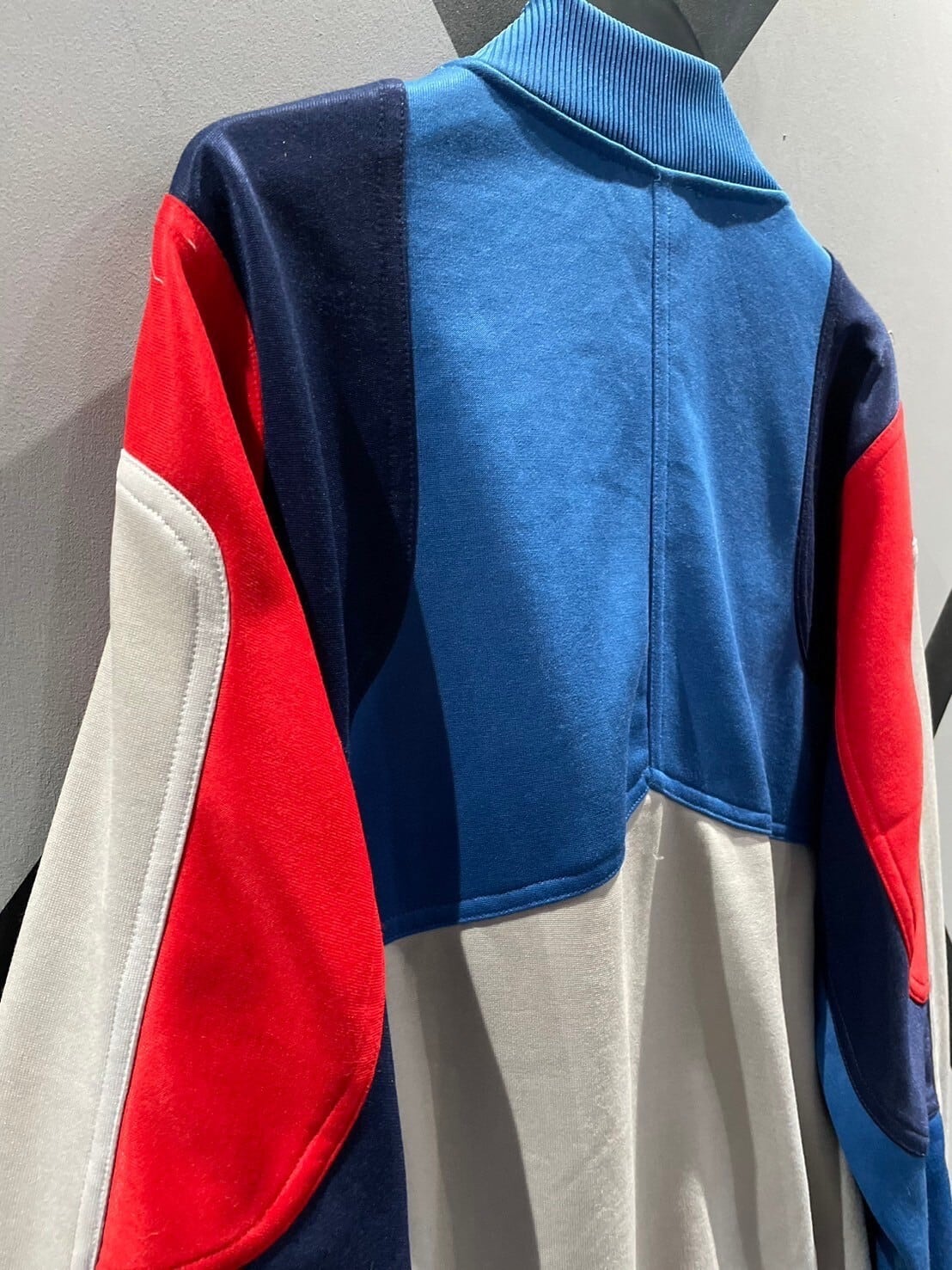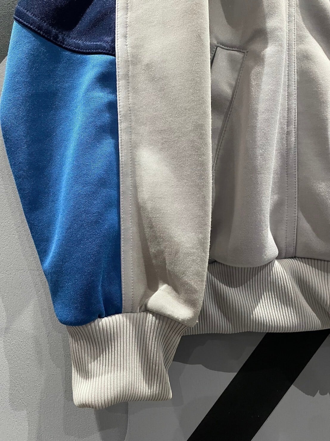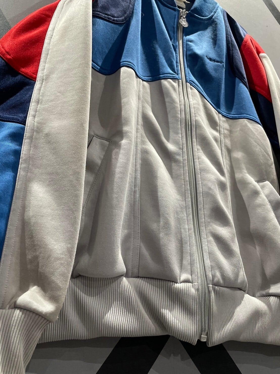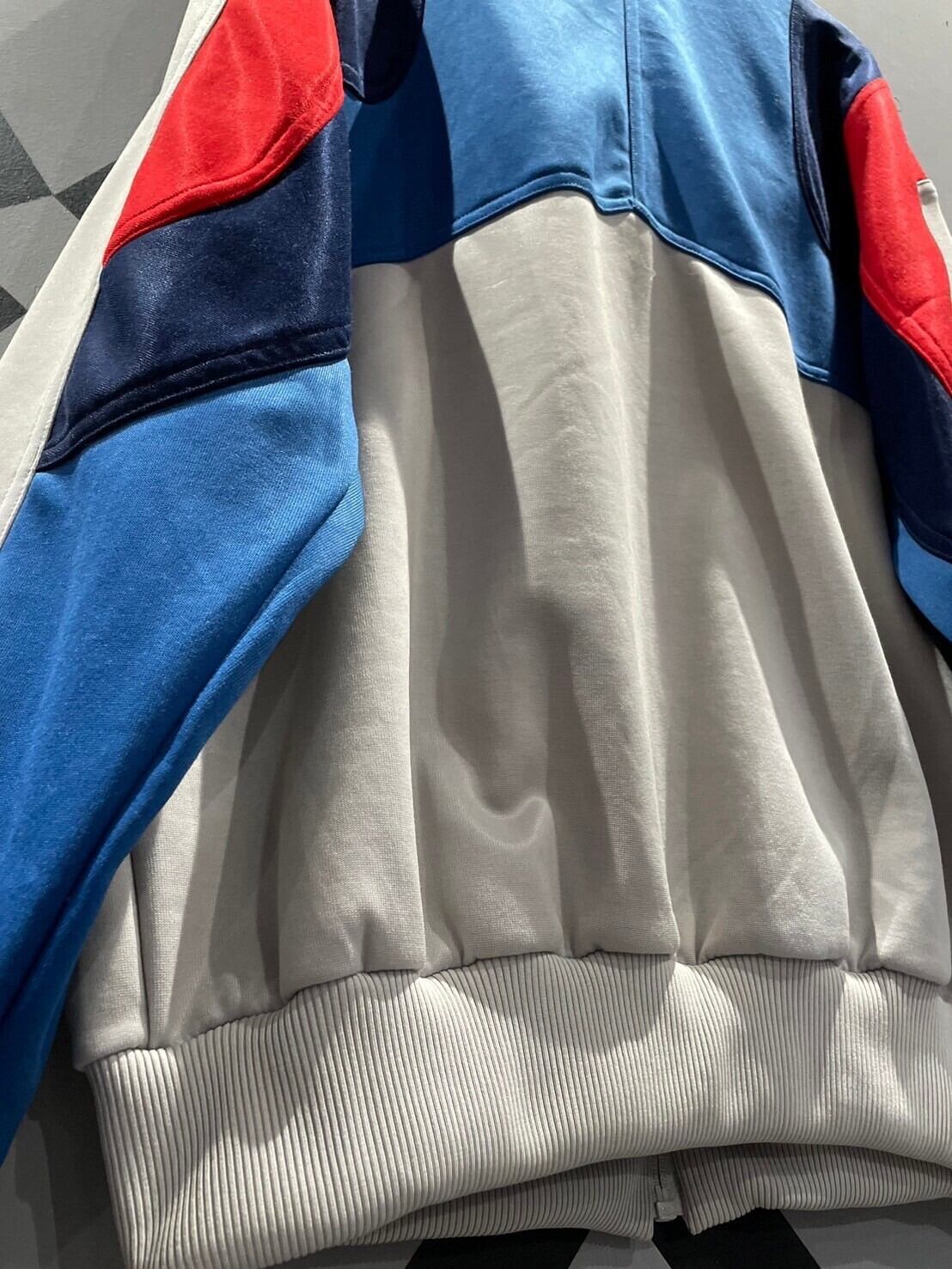 カラーリングや切り替え方からは当時の雰囲気を感じられつつ、フューチャリスティックなデザインバランスも良いですね。トレフォイルロゴが施されたジップトップもアクセントに。