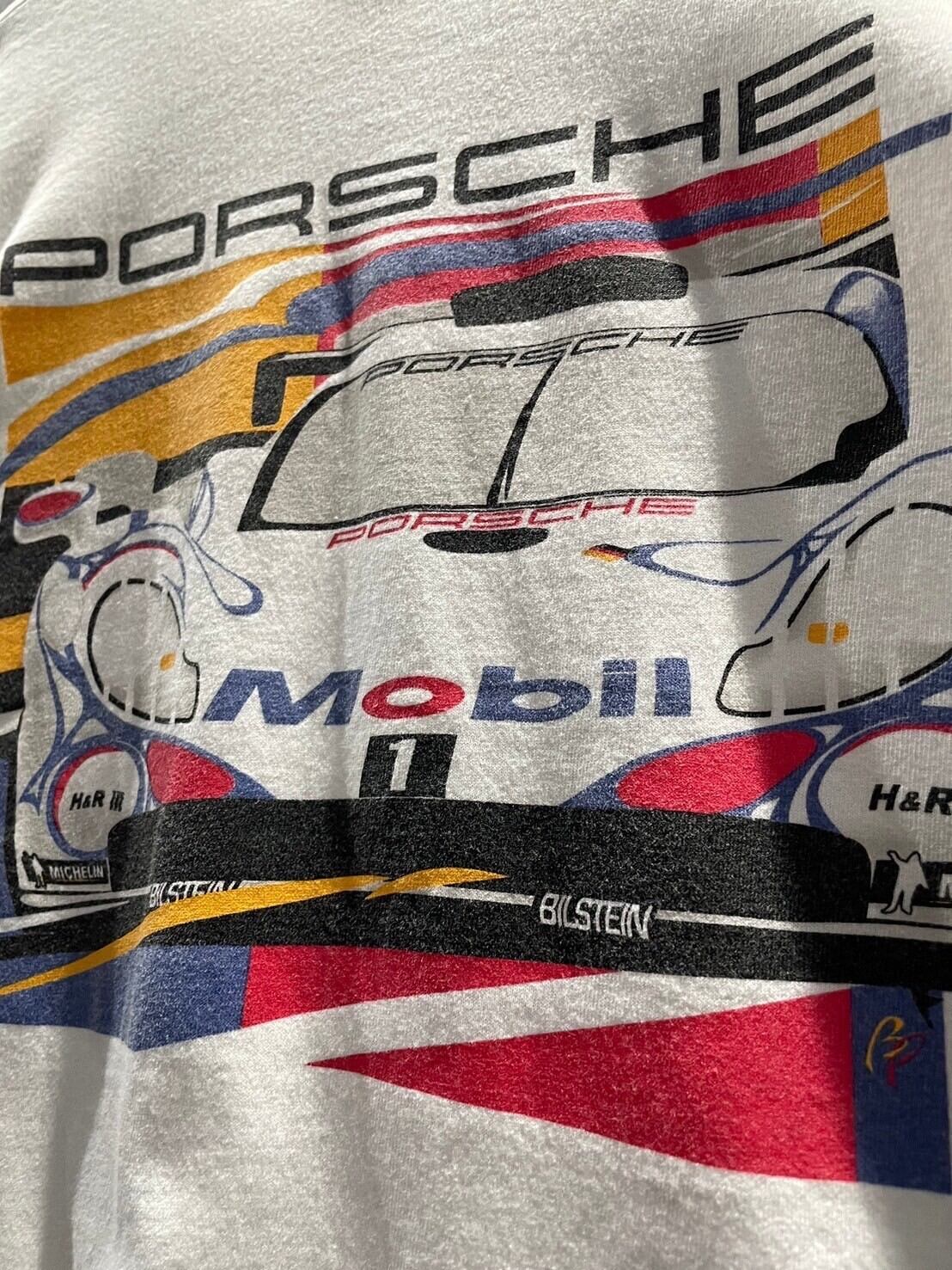 世界的に有名な高級スポーツカーでありながら、そのブランドネームに頼らず"走り"を追求したきたブランド"ポルシェ"と、エンジンオイルの代名詞でもある"Mobil 1"が提携した際のTシャツをご紹介致します。