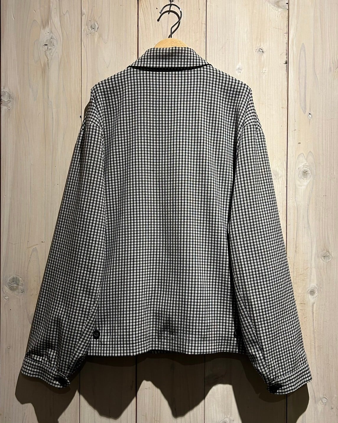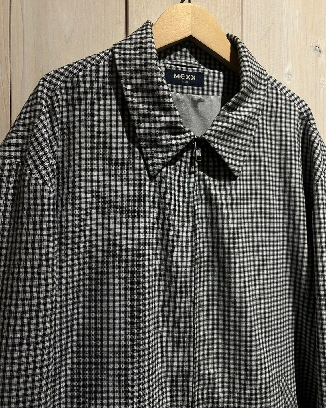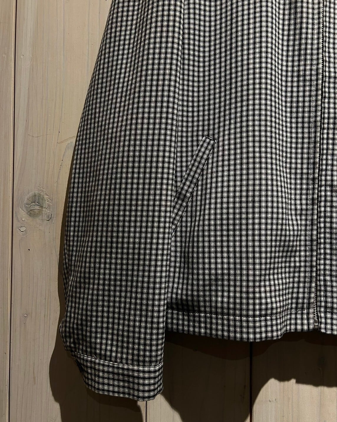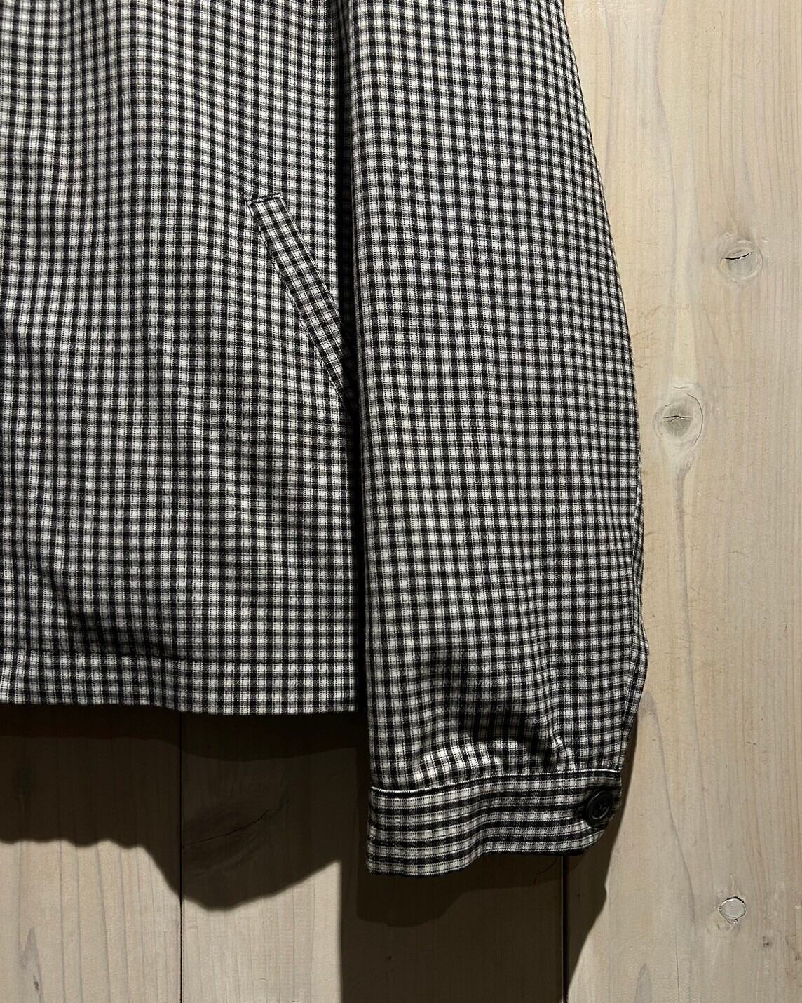 ハリのある素材を用いて、細やかな黒×白のモノトーンのチェック柄を載せたジップアップジャケット。