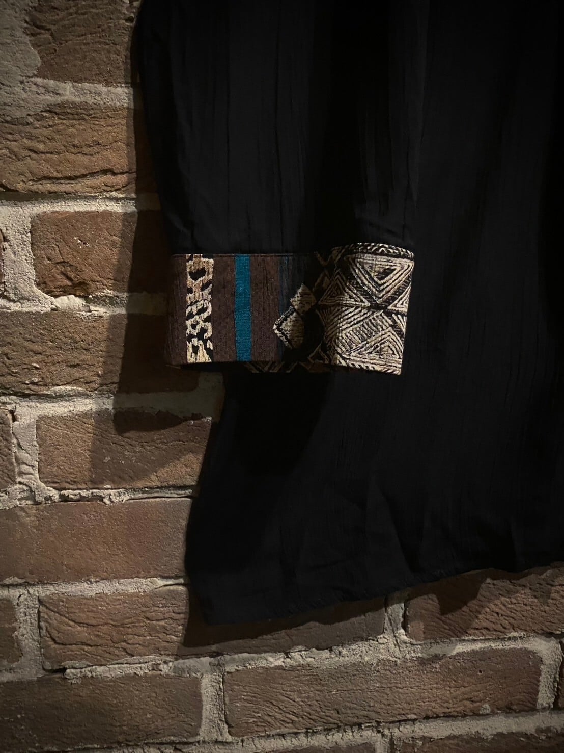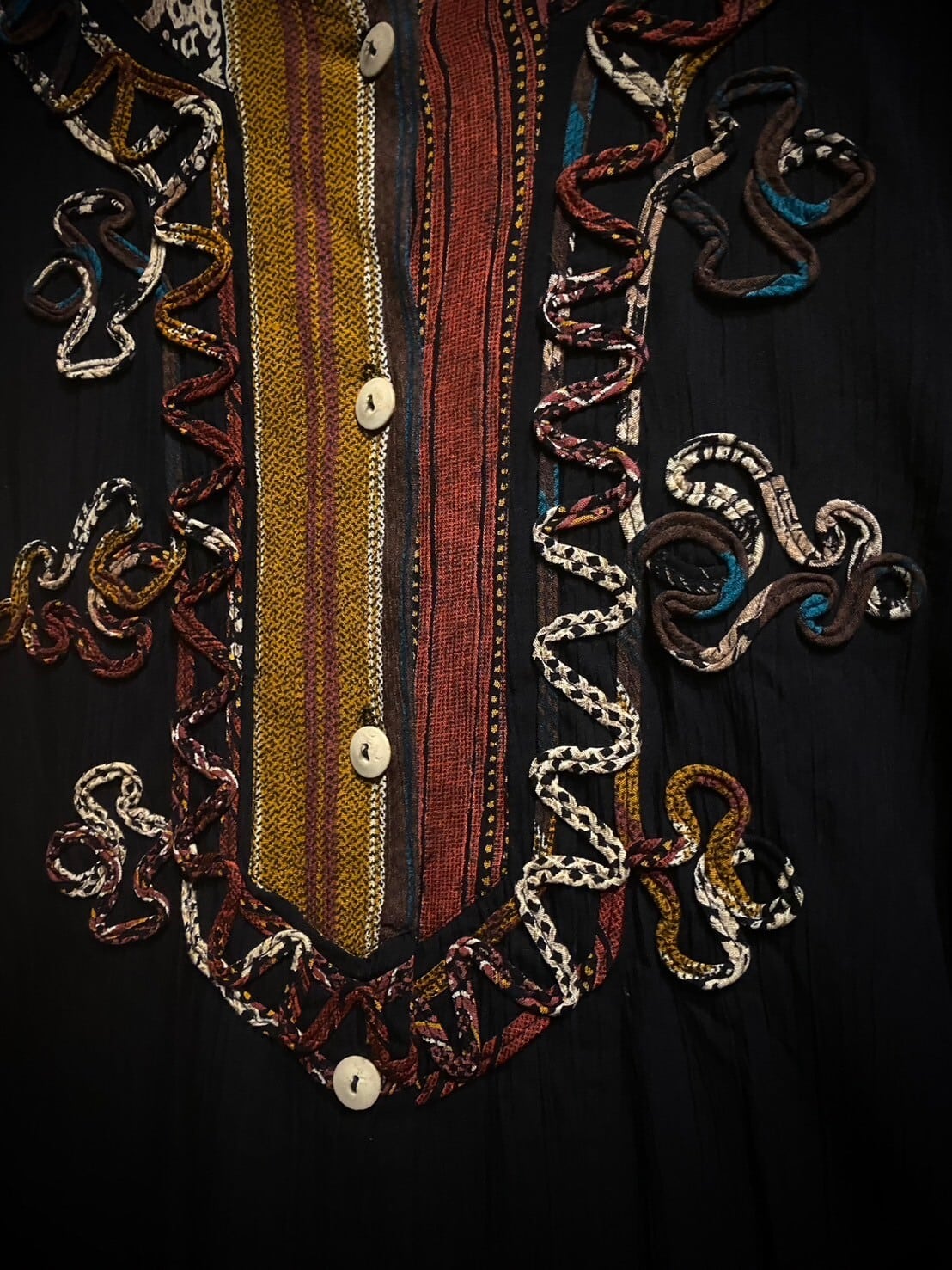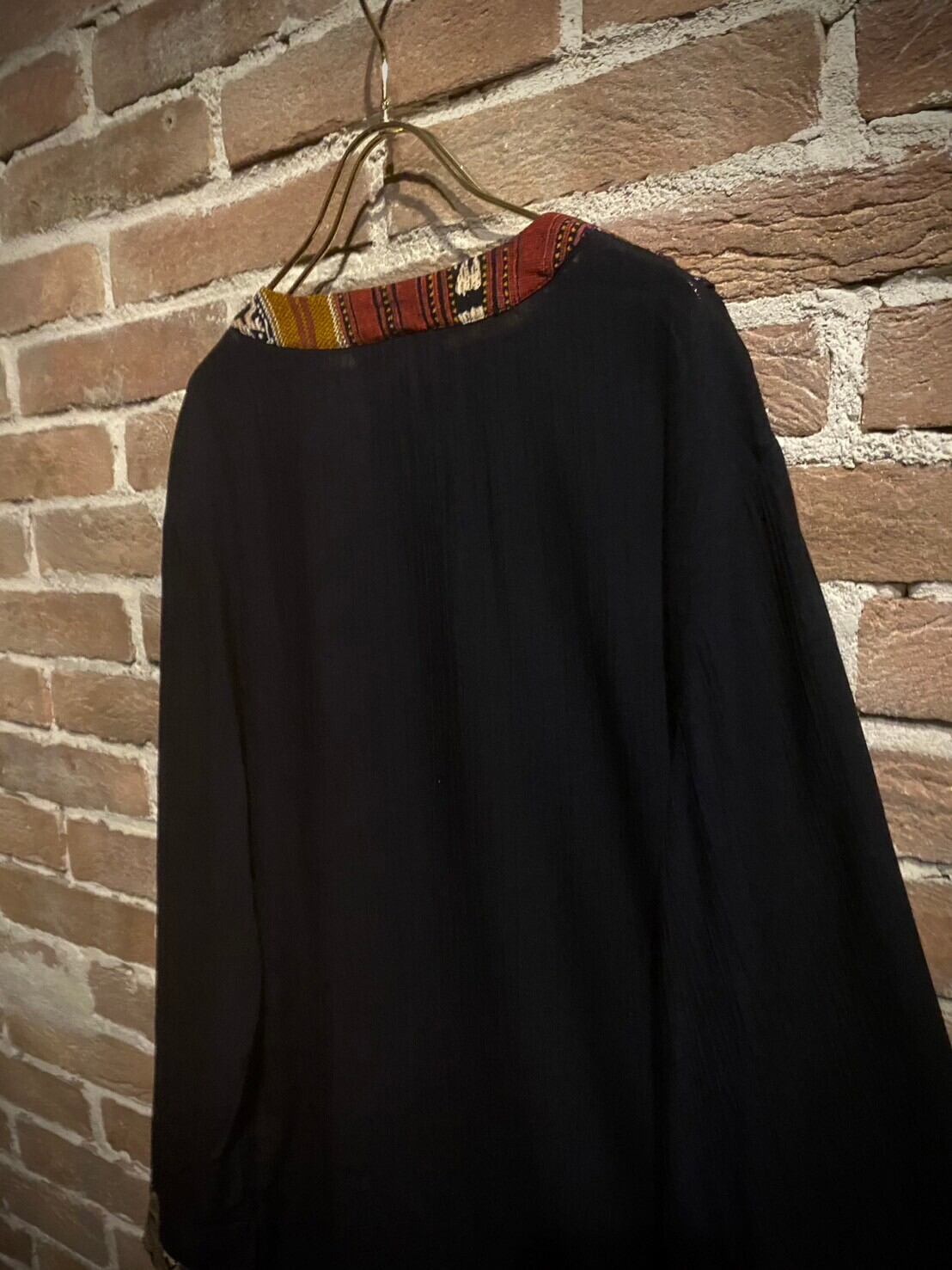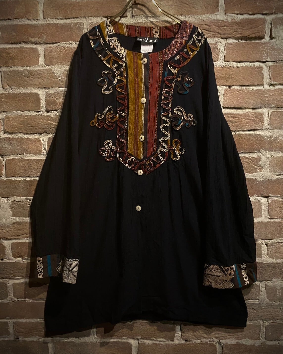 フワッと柔らかくトロみのあるレーヨン素材を用いたボディに、エスニックなフレーバーを漂わせる刺繍を刻んだUSA製の長袖シャツをご紹介致します。