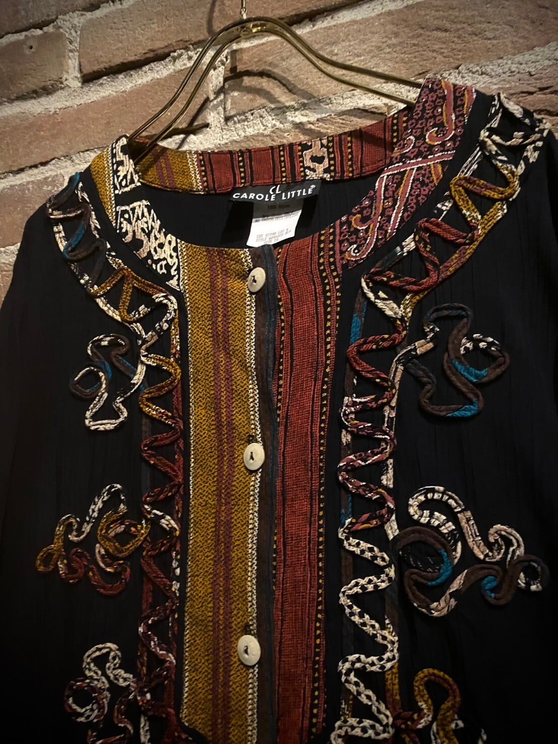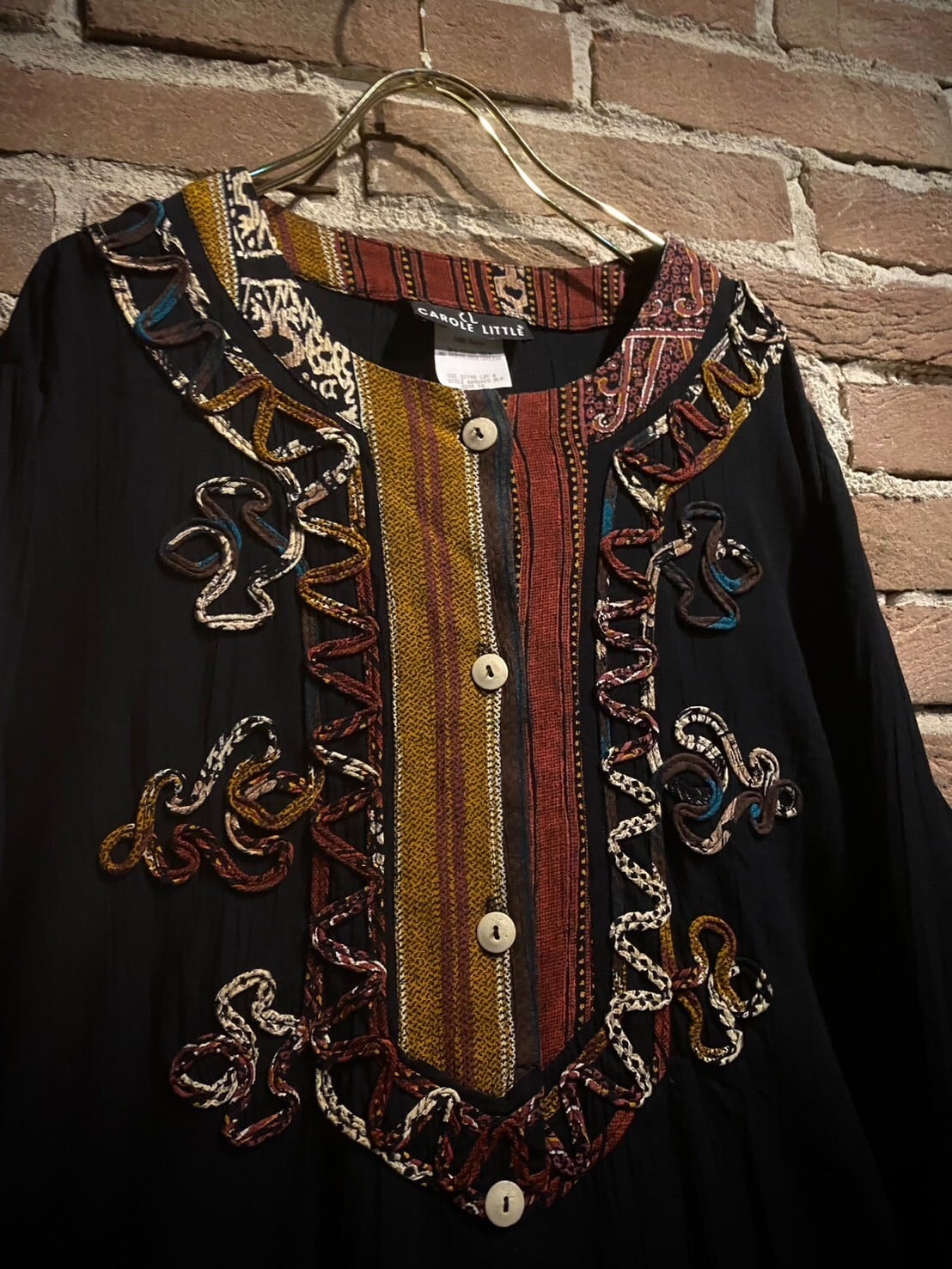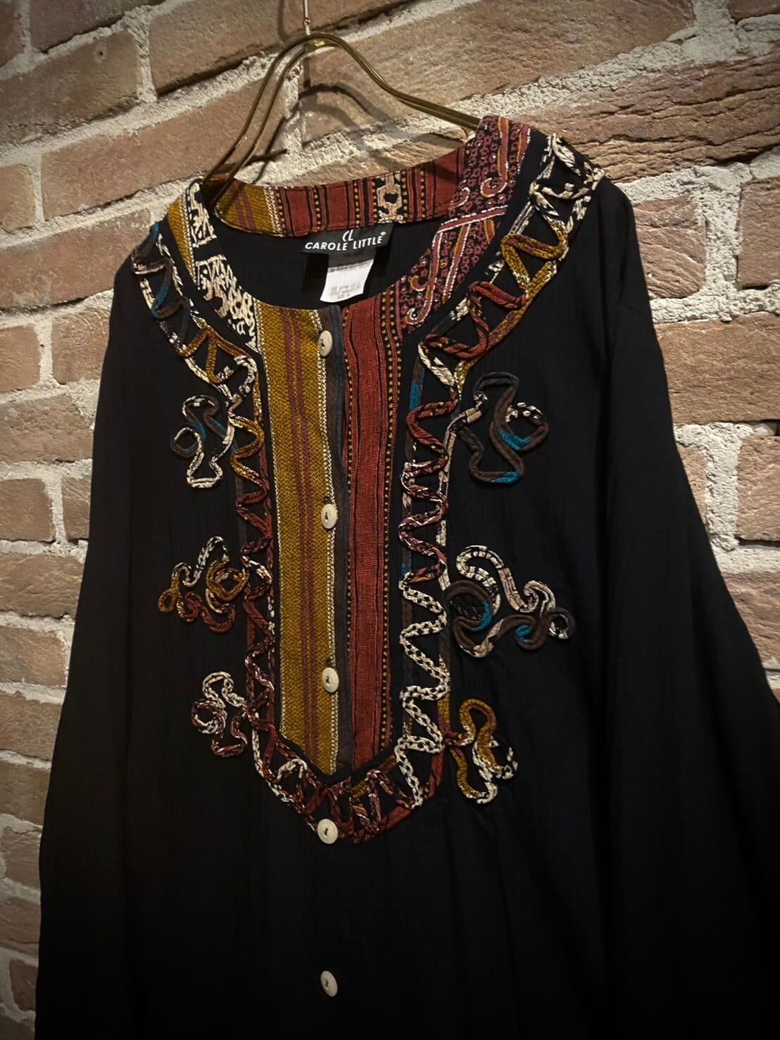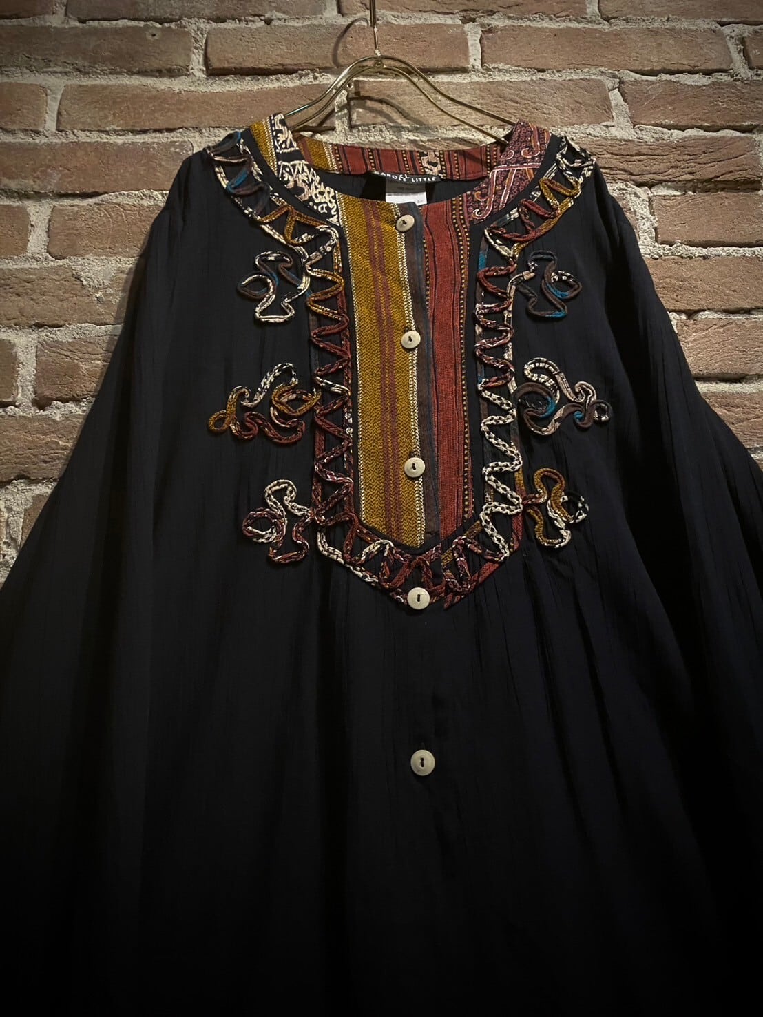 フワッと柔らかくトロみのあるレーヨン素材を用いたボディに、エスニックなフレーバーを漂わせる刺繍を刻んだUSA製の長袖シャツをご紹介致します。