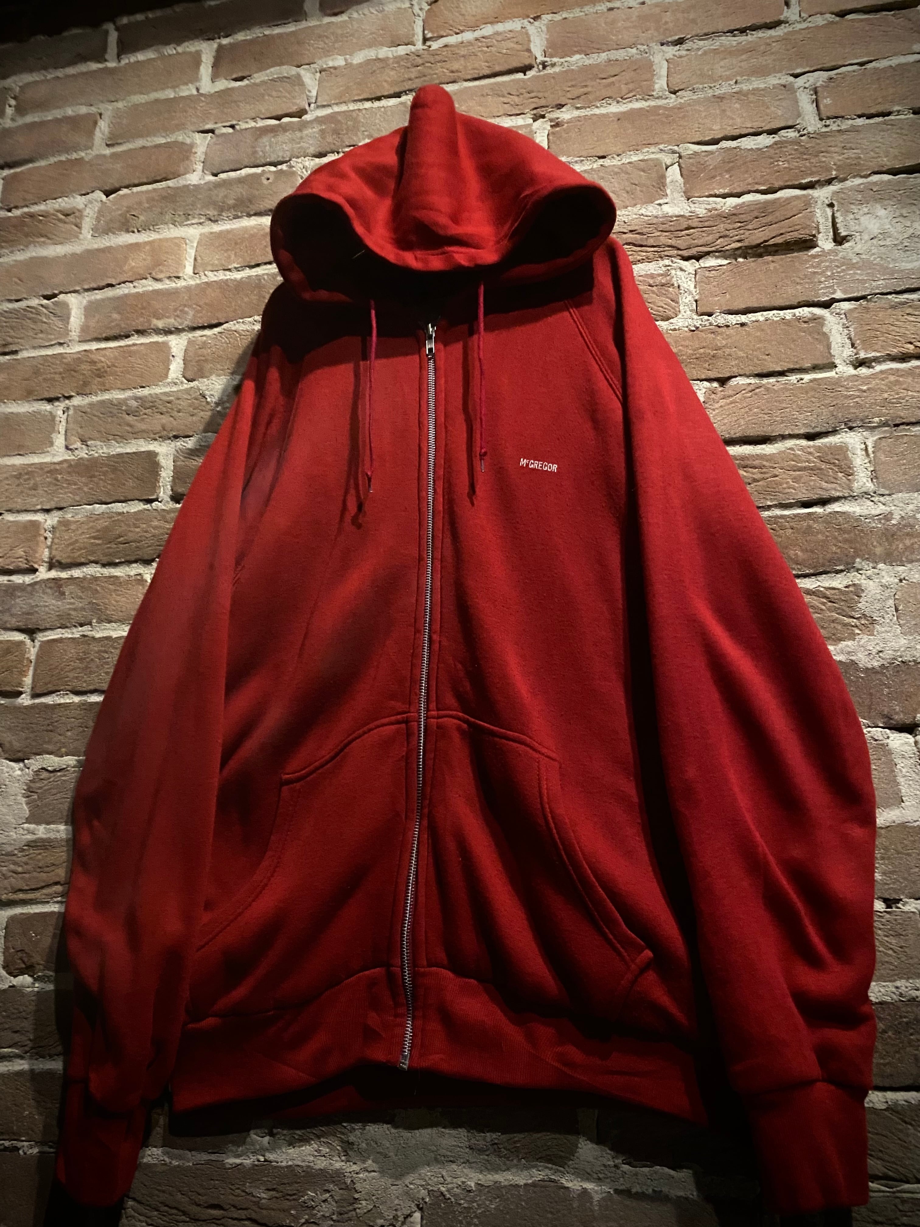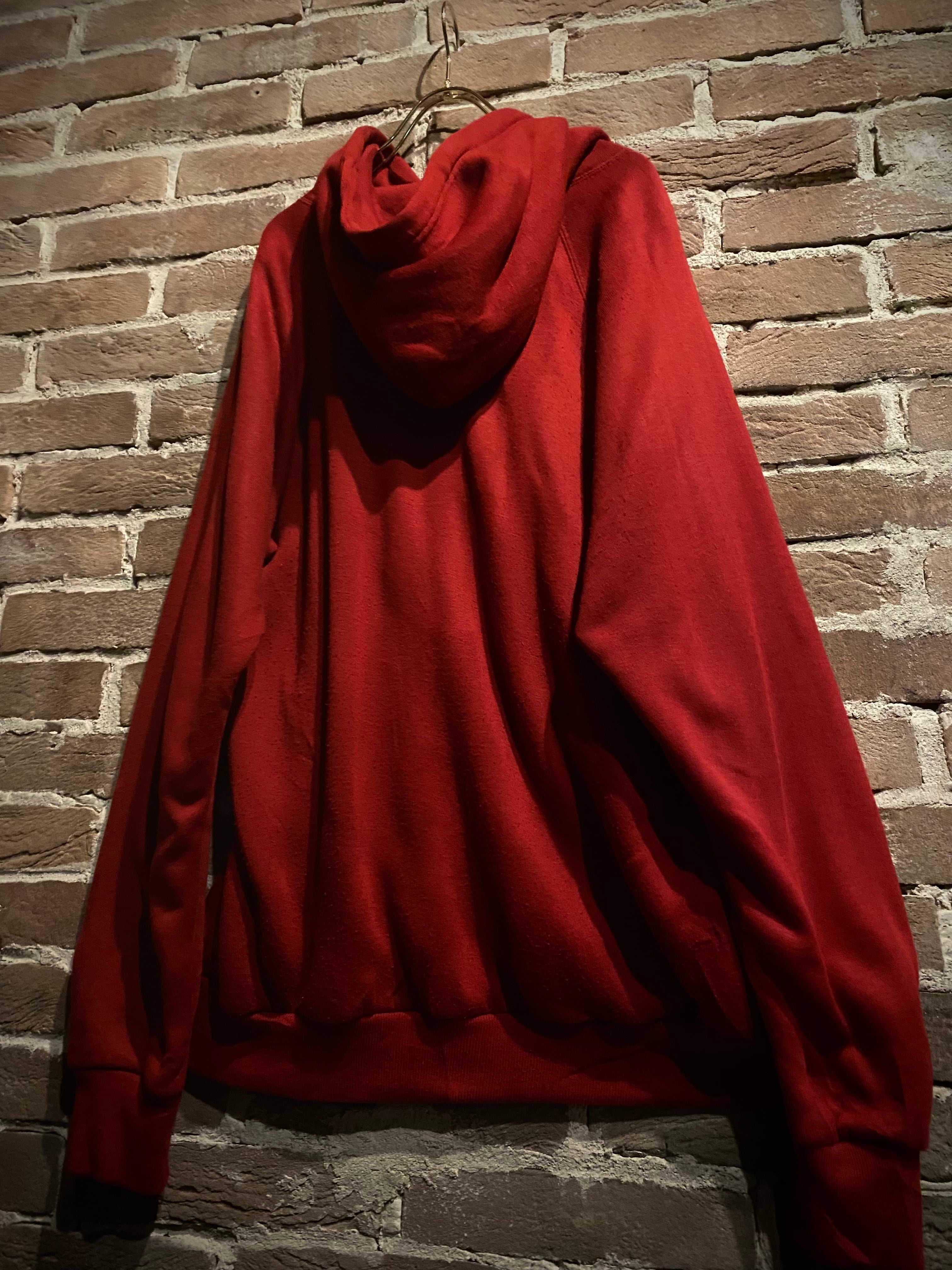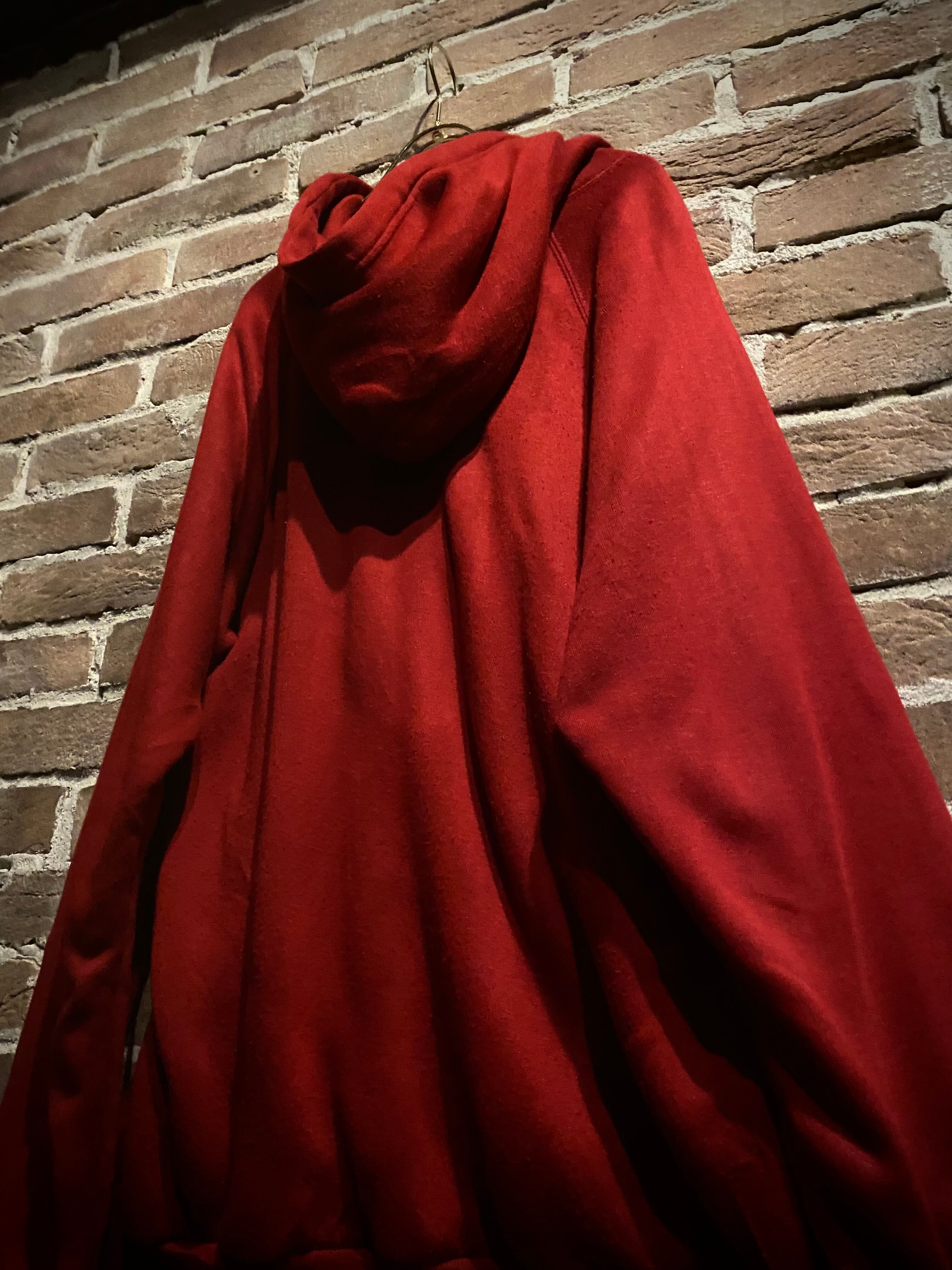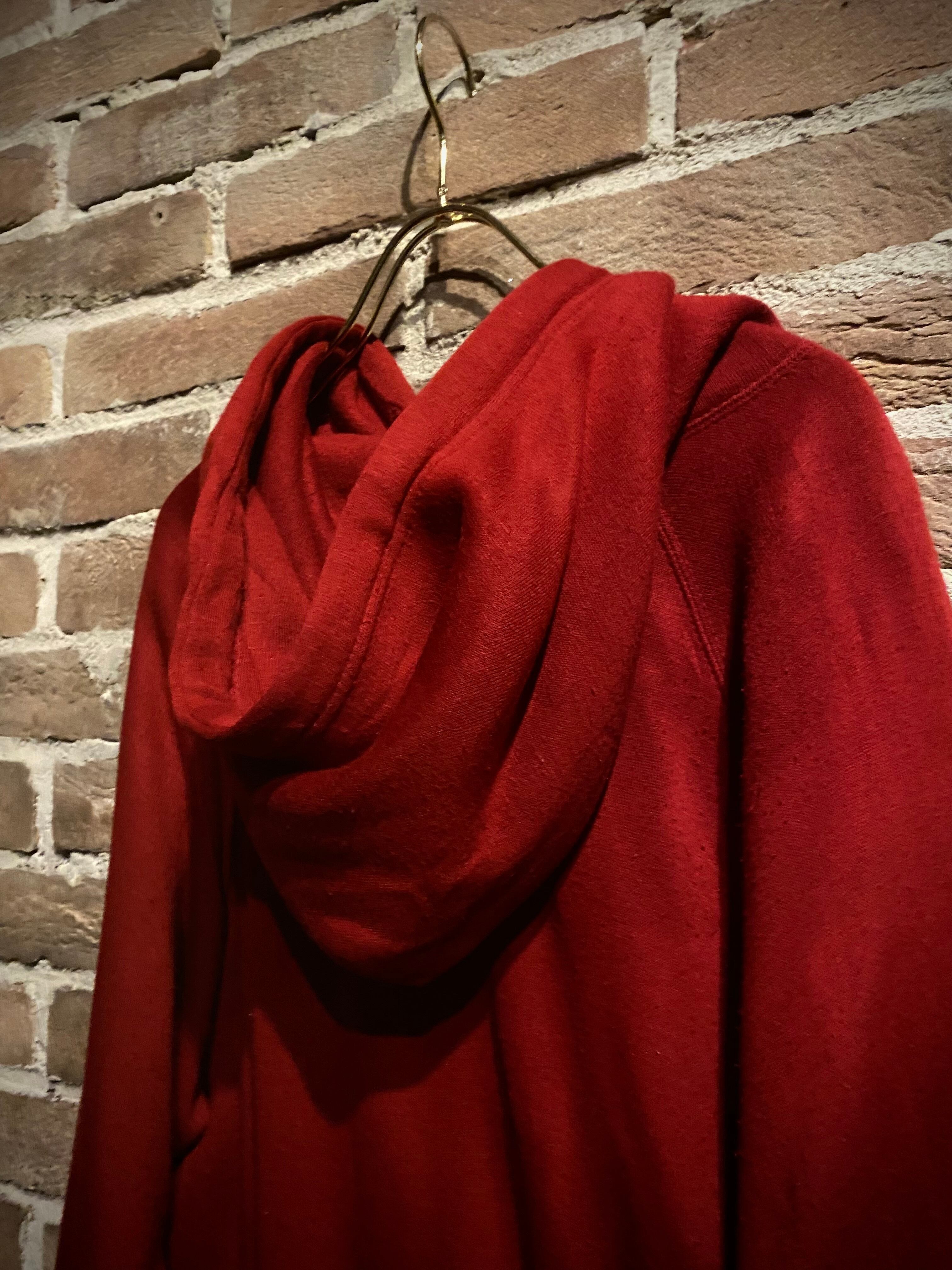 肉感のある上質な素材を用いて、真紅一色で仕上げたジップアップフーディ。