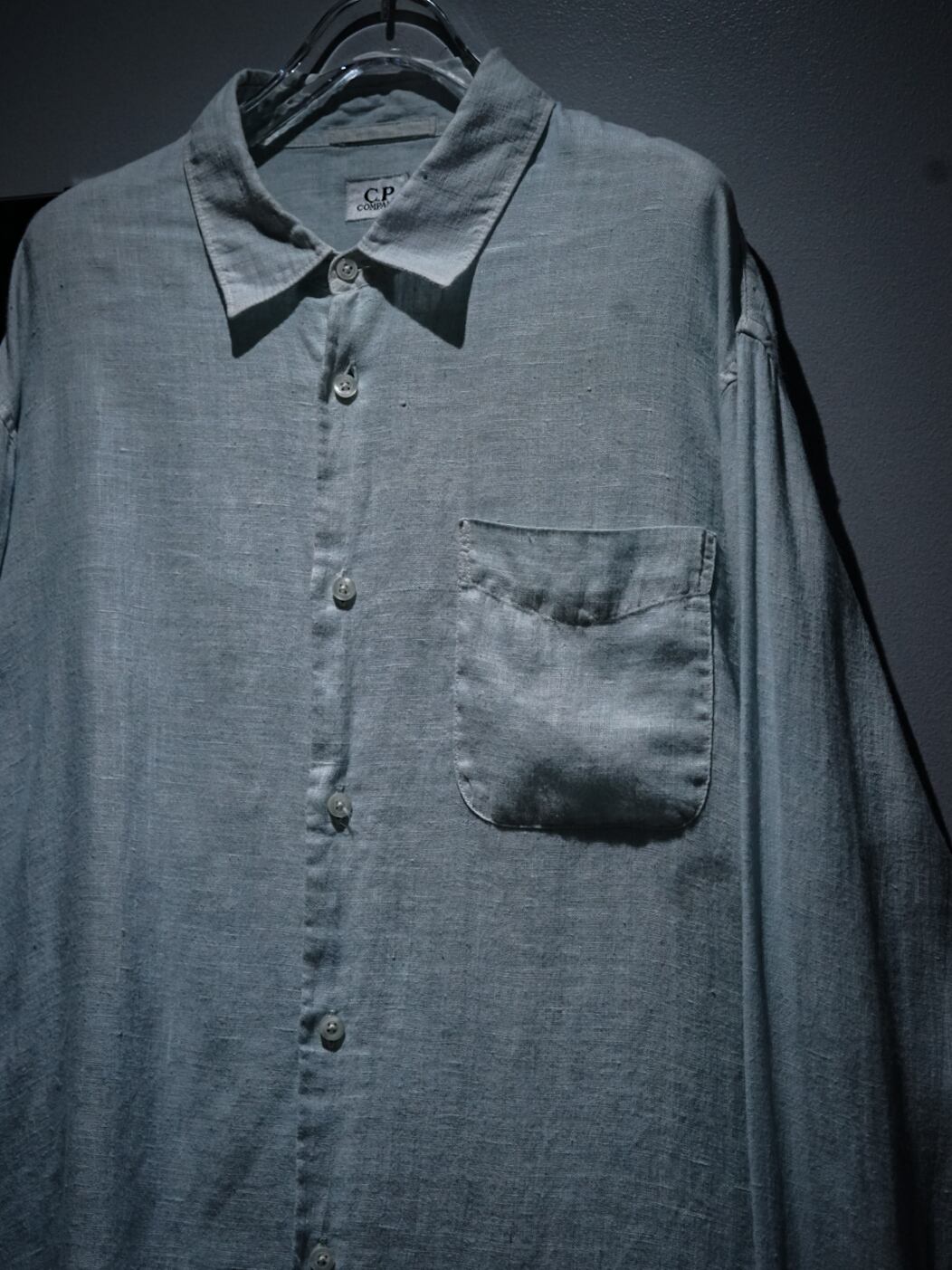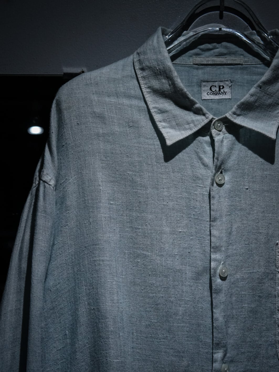 ハリのある、上質なライトブルーのリネンを用いた長袖シャツ。至極シンプルな仕上がりで、洗練された雰囲気が漂います。