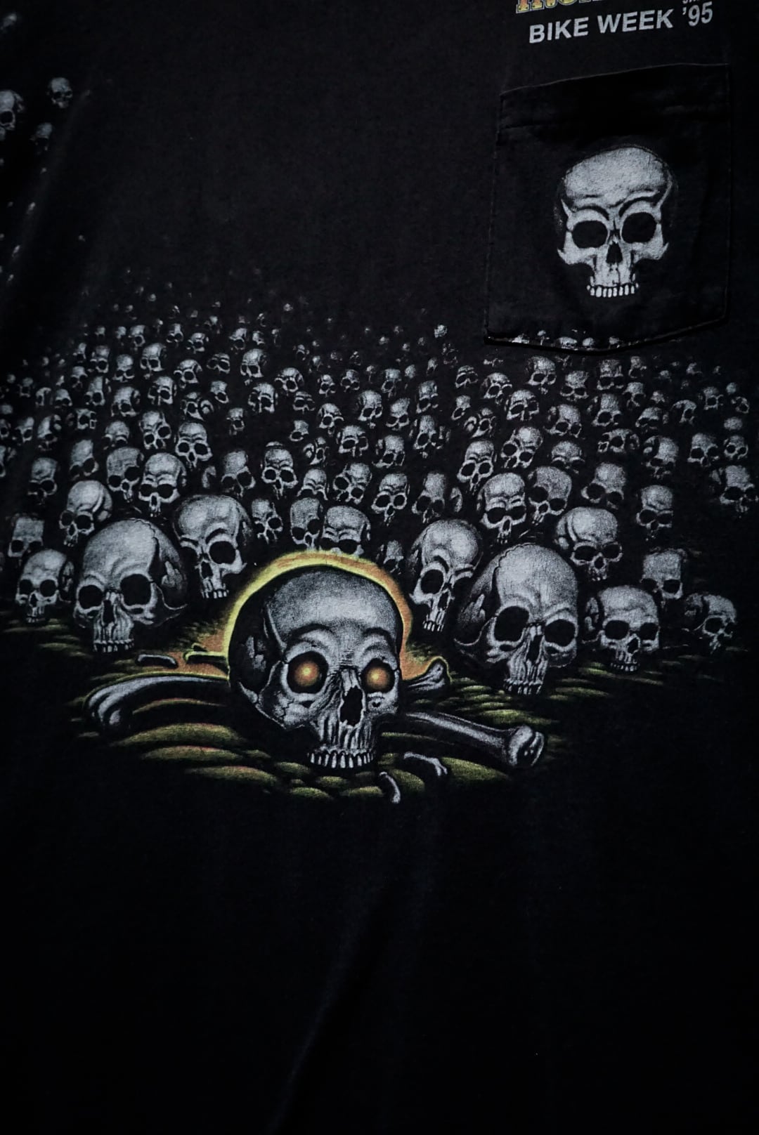 バイカーのTシャツでこんなにもデザインが効いたモノは非常に稀少。デザインにサイジングを、バックカルチャーを兼ね備えた逸品です。