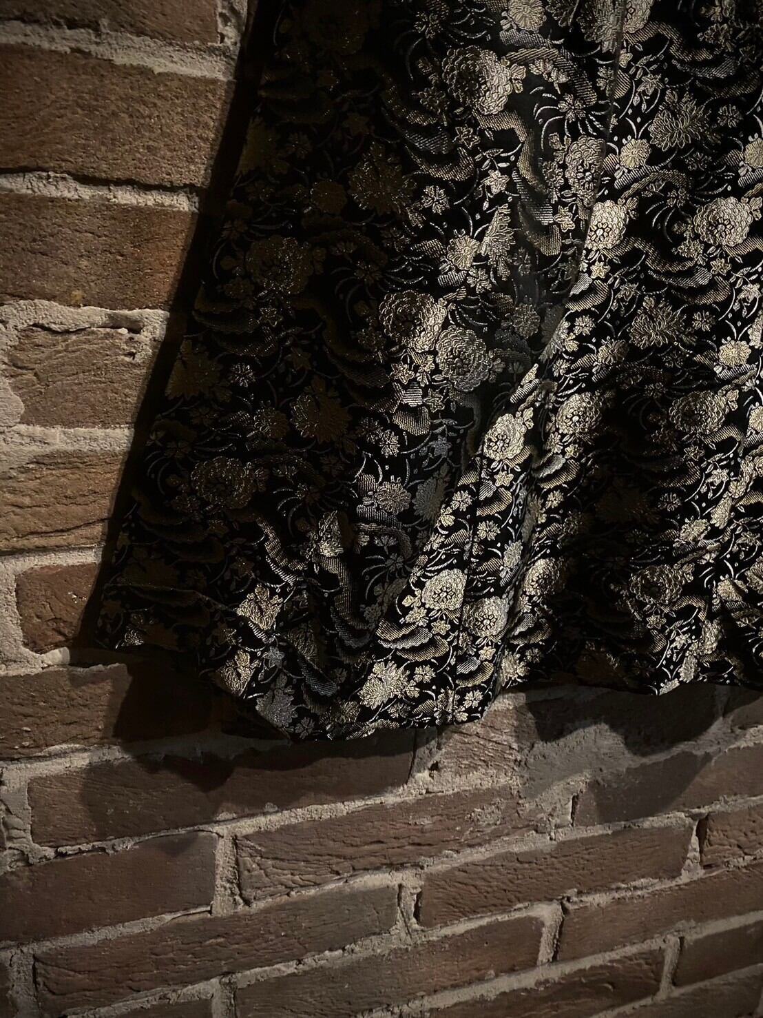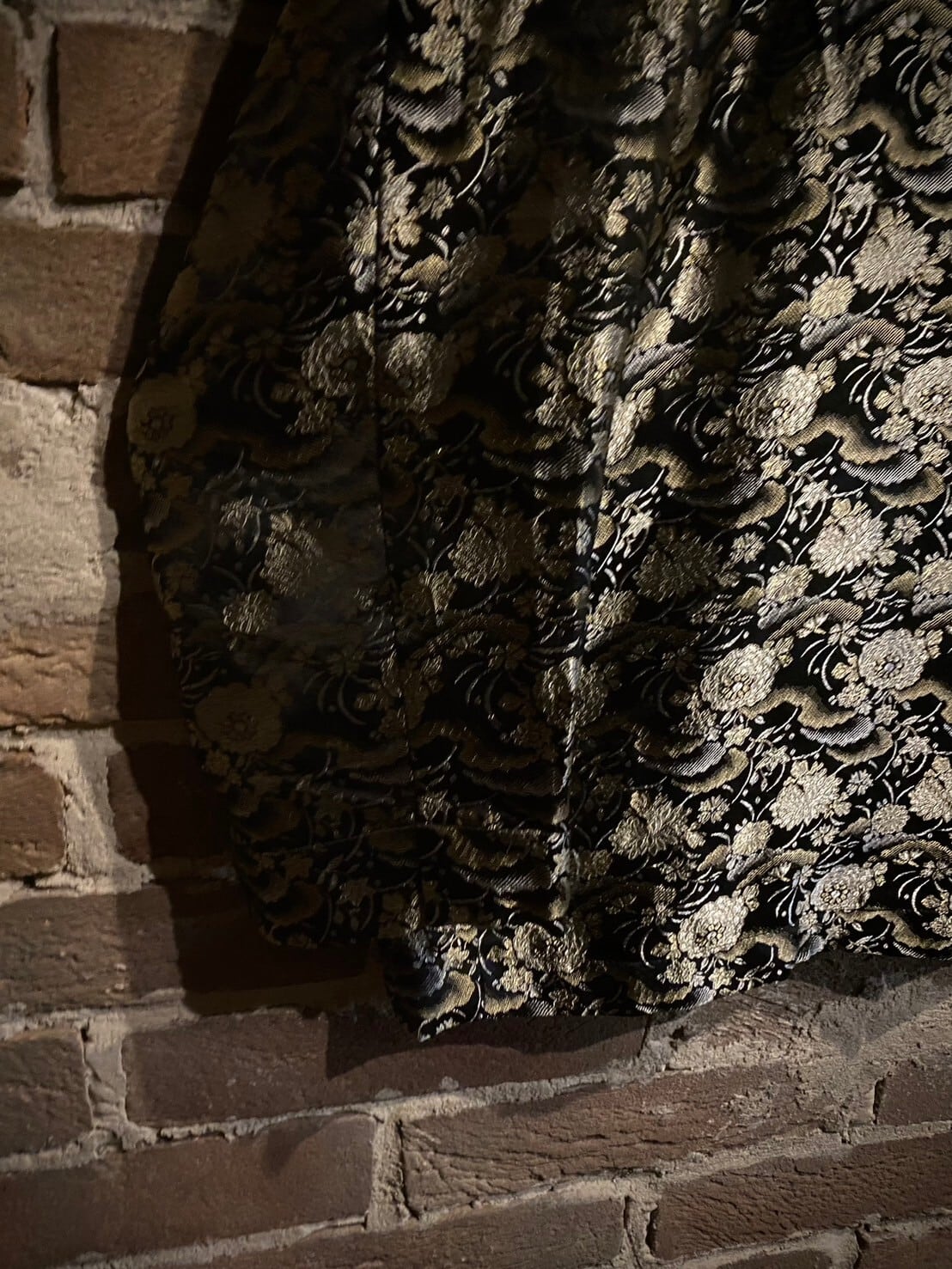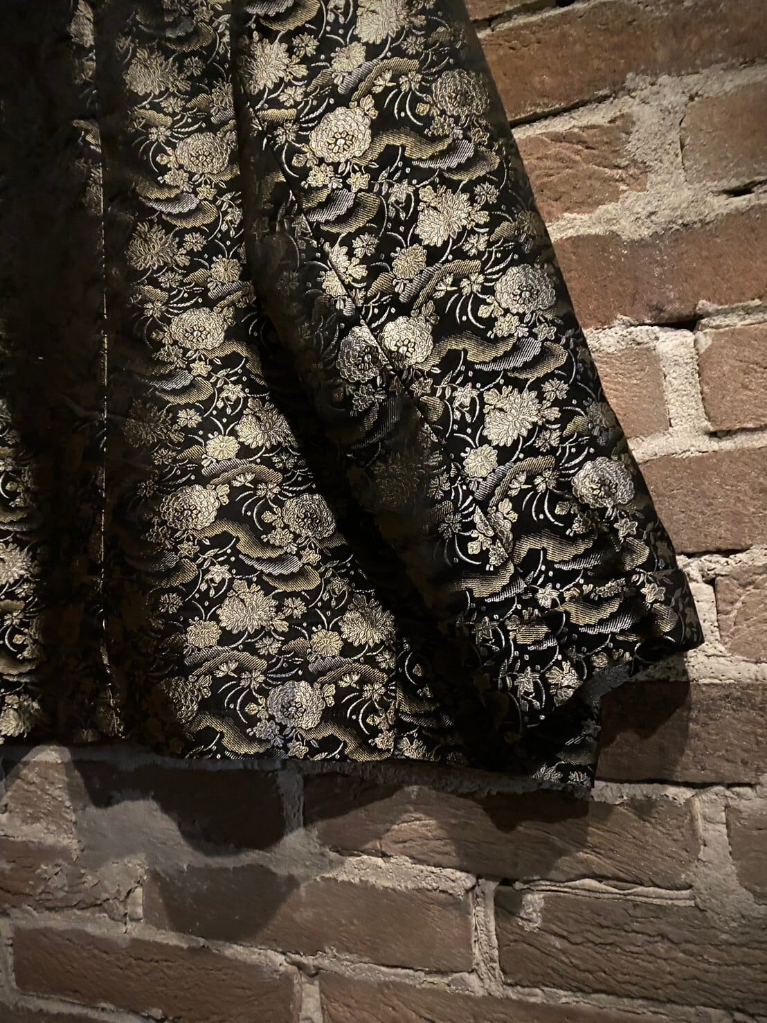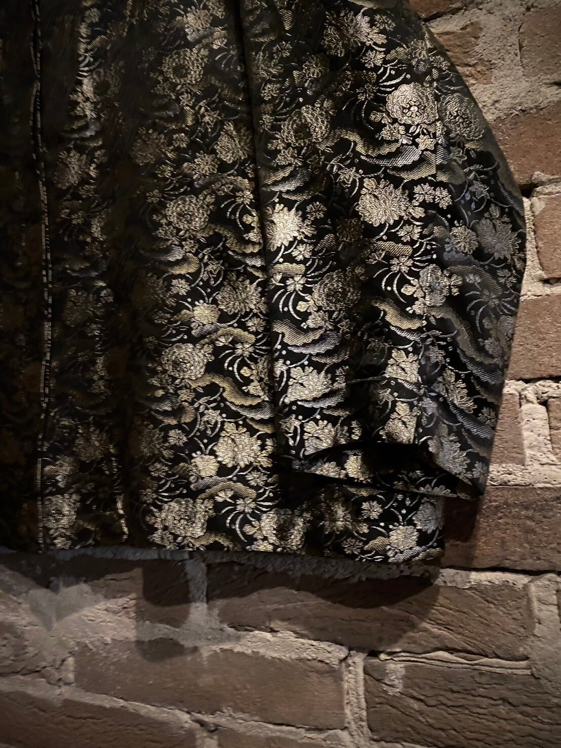 艶やかなブラックのボディをベースに、光沢を放つ金糸と銀糸の織りで花を表現した非常〜に美しいジャケット。
