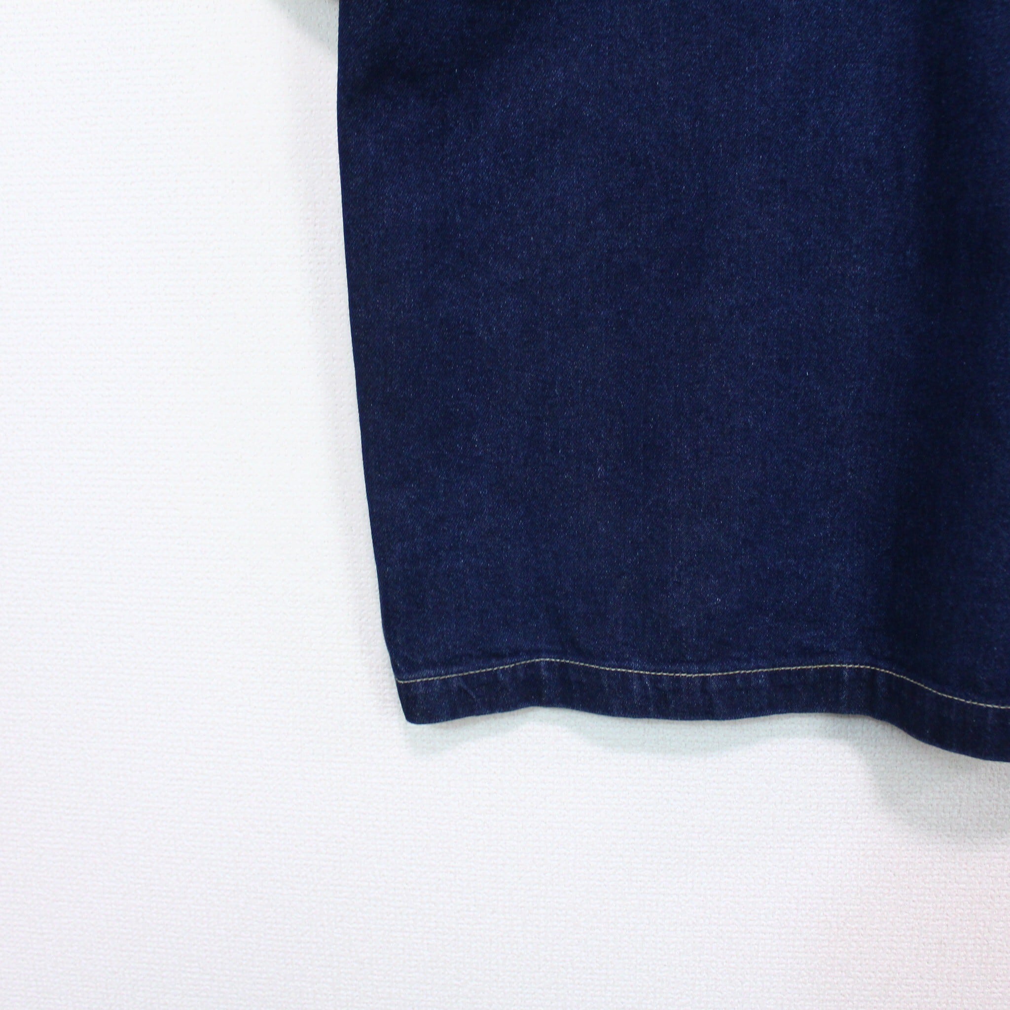 フロントには同じデニムを切り替えポケットギミックをON。前たてはトップボタン以外比翼仕立てでミニマルな仕上がりに。