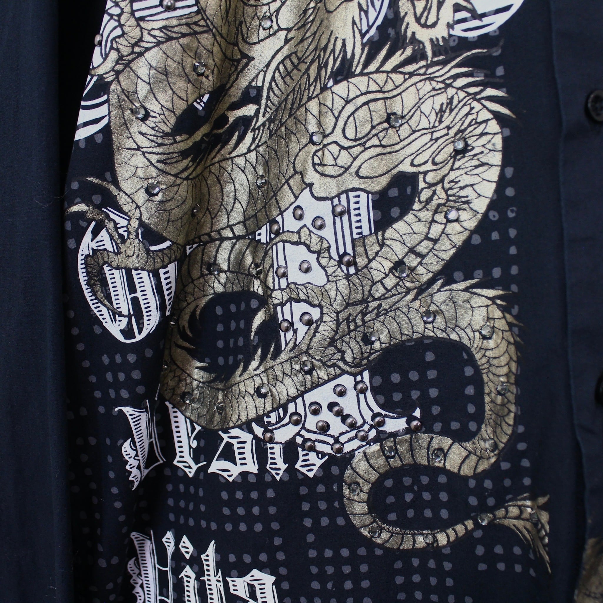 クロスにはラインストーンが施され、よりBling-Blingなフレーバーがムンムンに漂います。背面にも大判にプリントを施した上に、さらにゴールドで龍とクロスを載せたことで立体感のある仕上がりに。