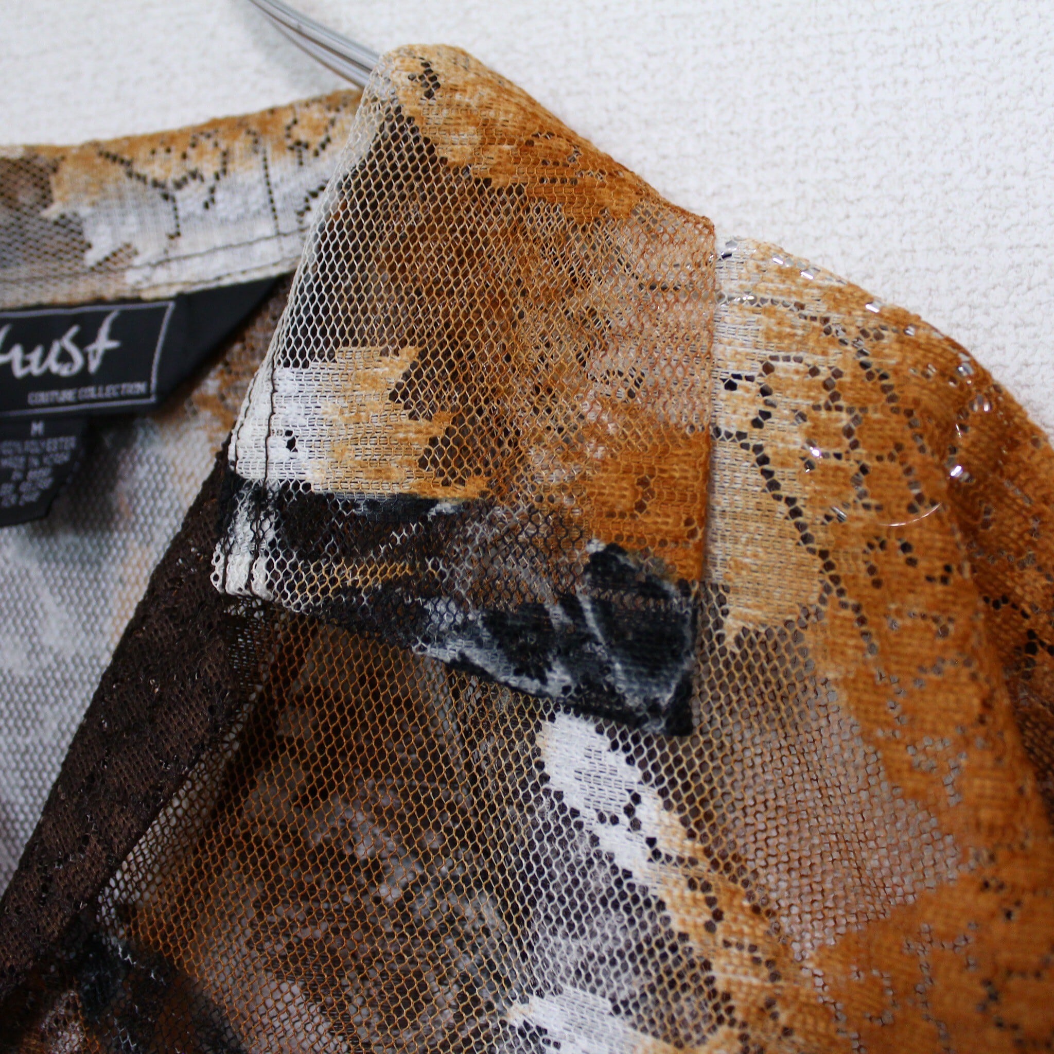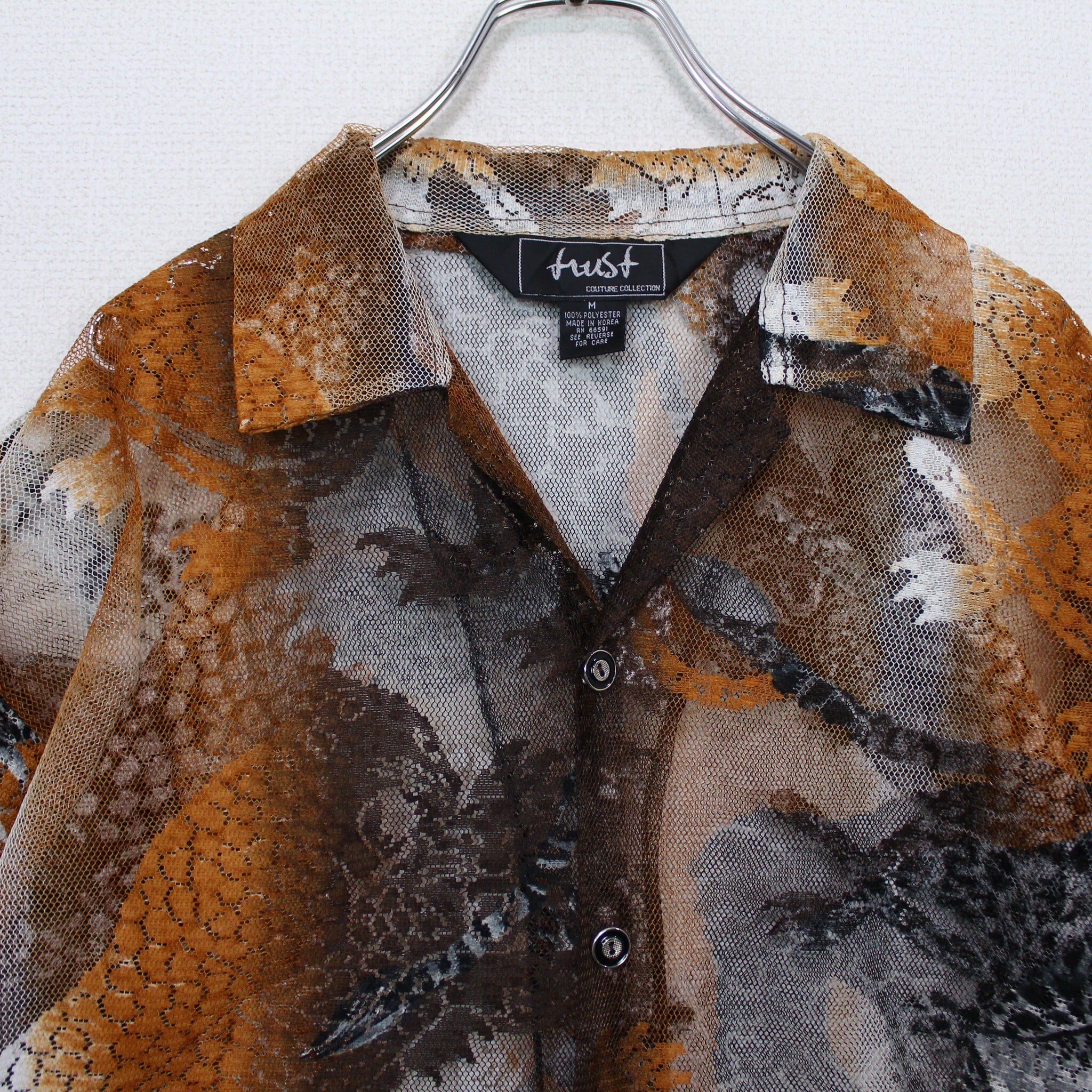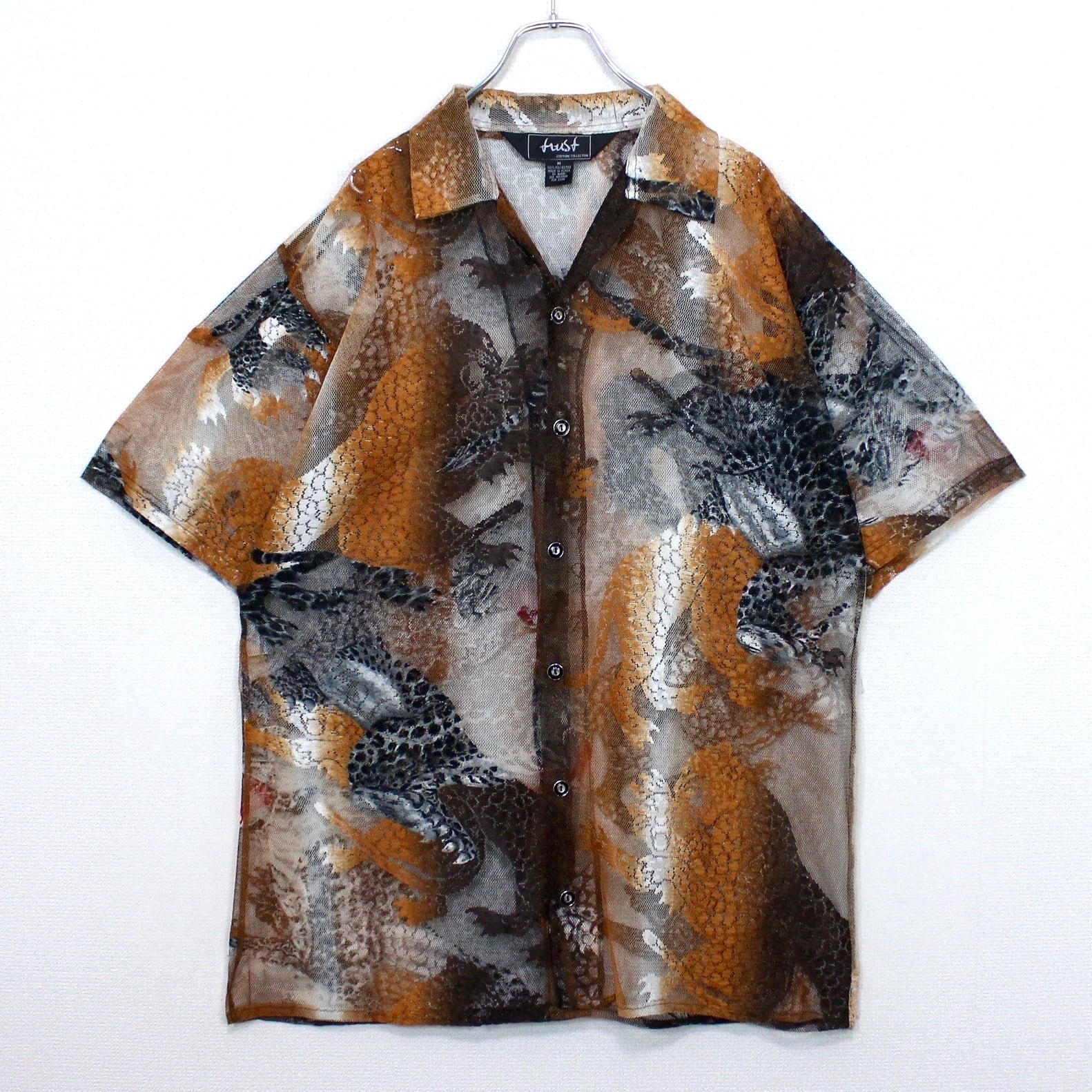 涼しげな透け感のあるメッシュ素材をベースにに、勇ましい虎を載せた半袖シャツ。