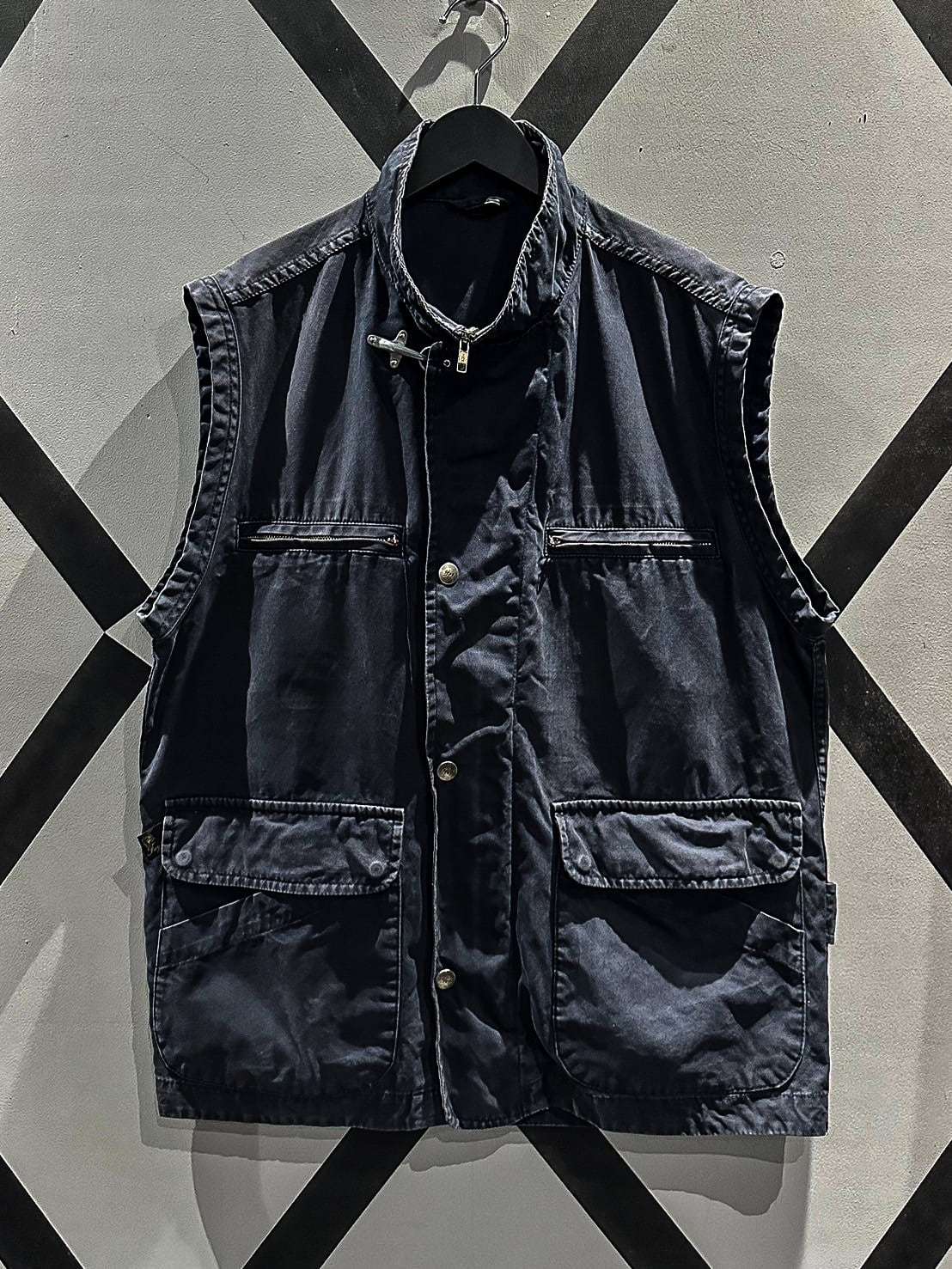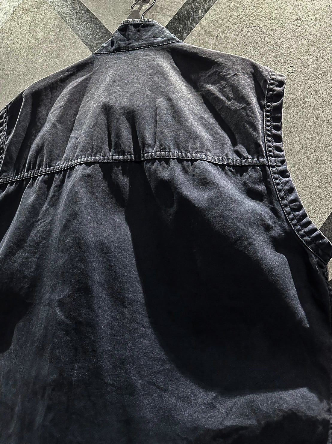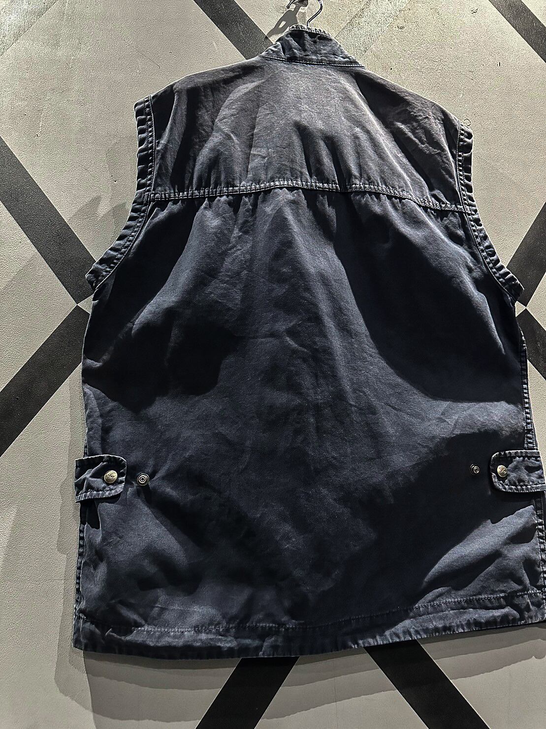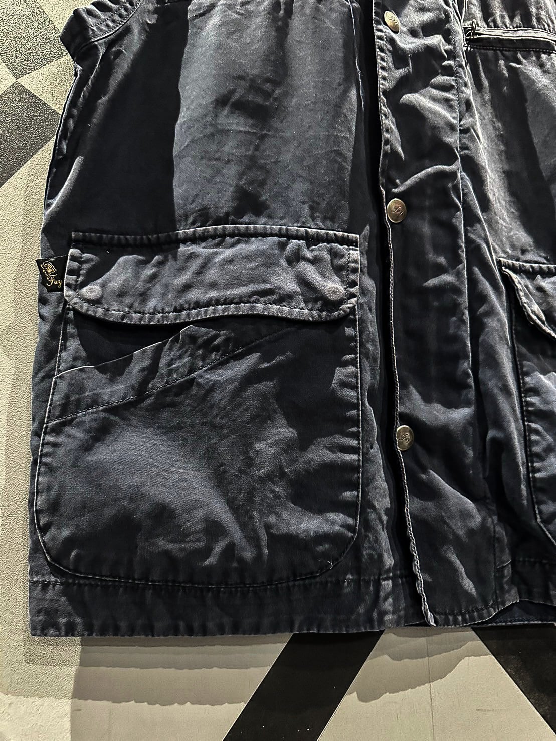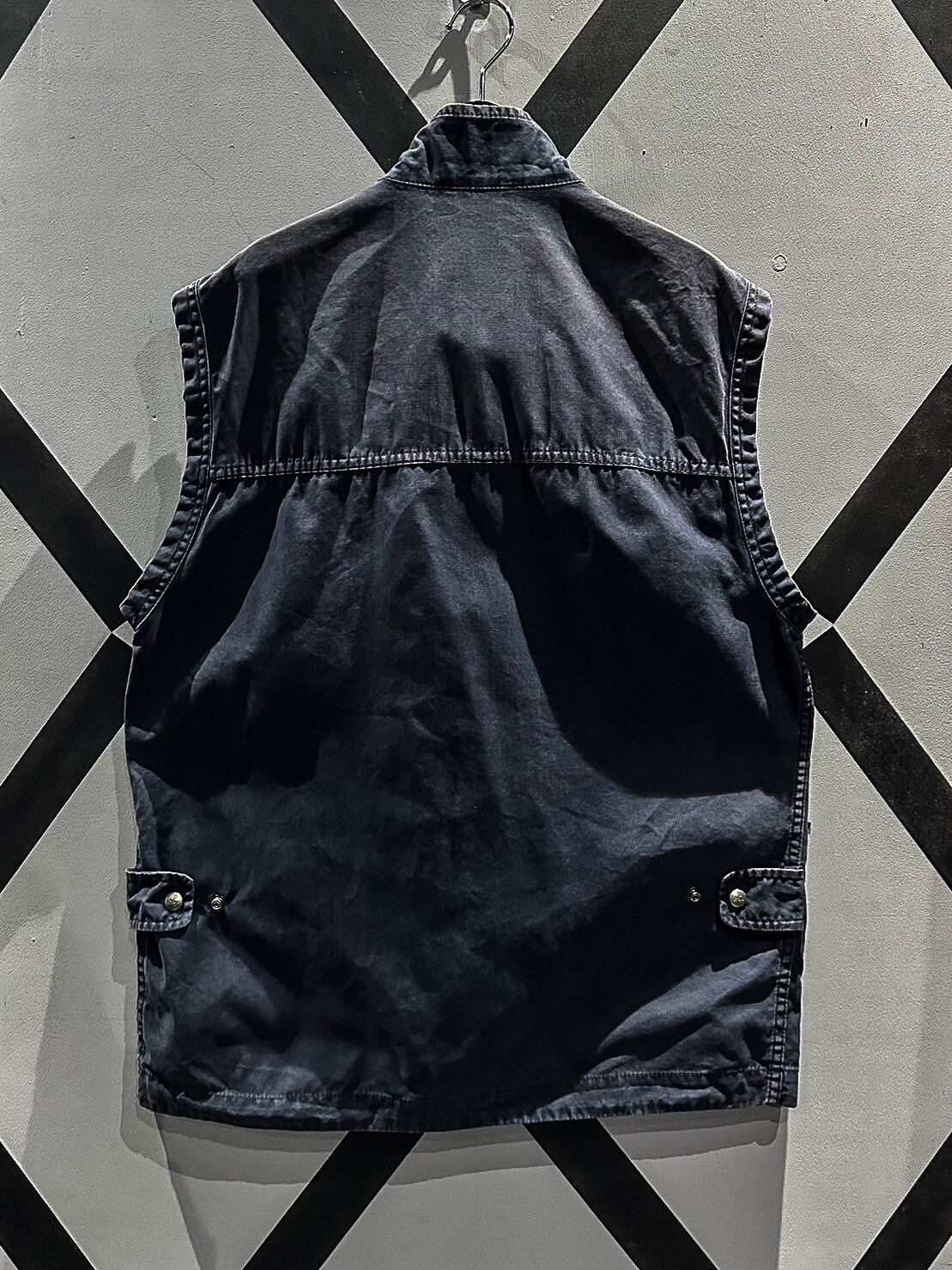 ガシッとタフなダック地を用いたボディに、古着業界の枠を超えて、名だたるブランド達がデザインソースとしてサンプリングしているファイヤーマンバックルを施したベスト。