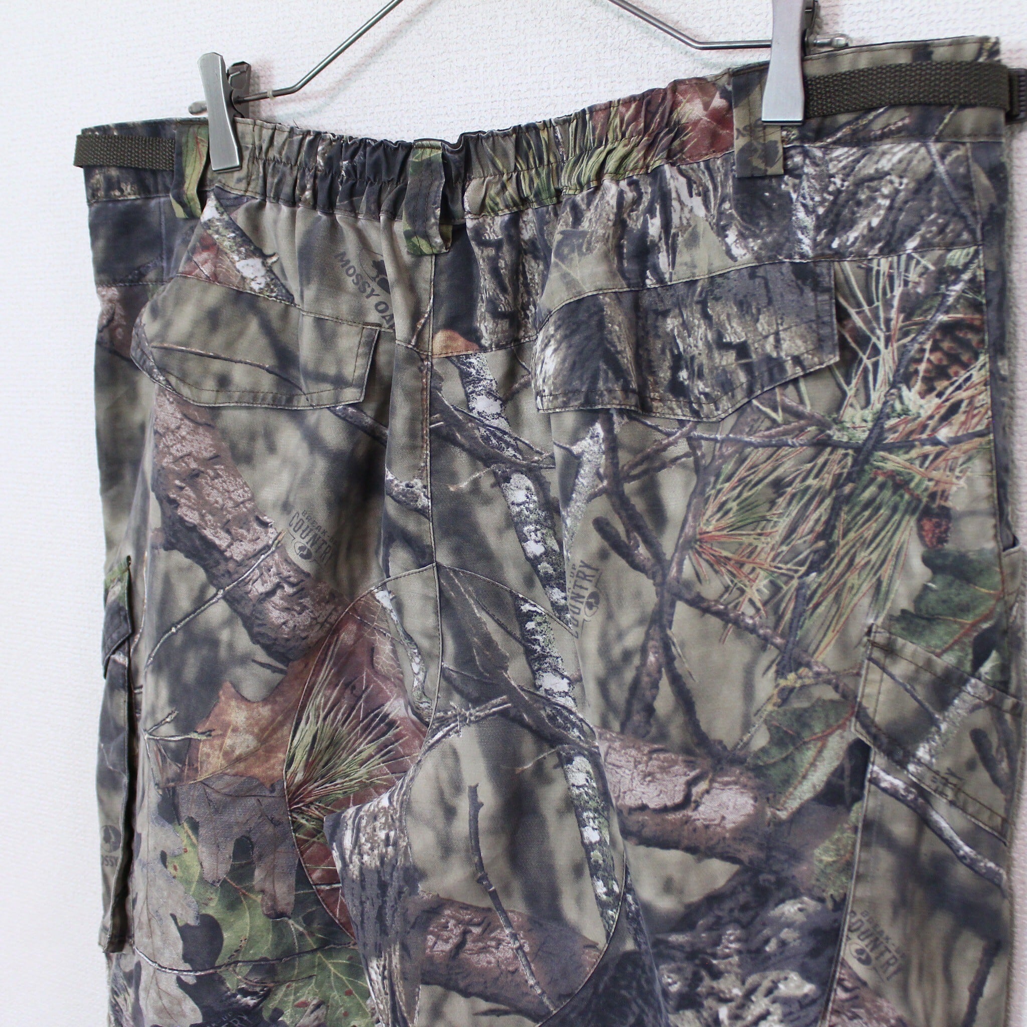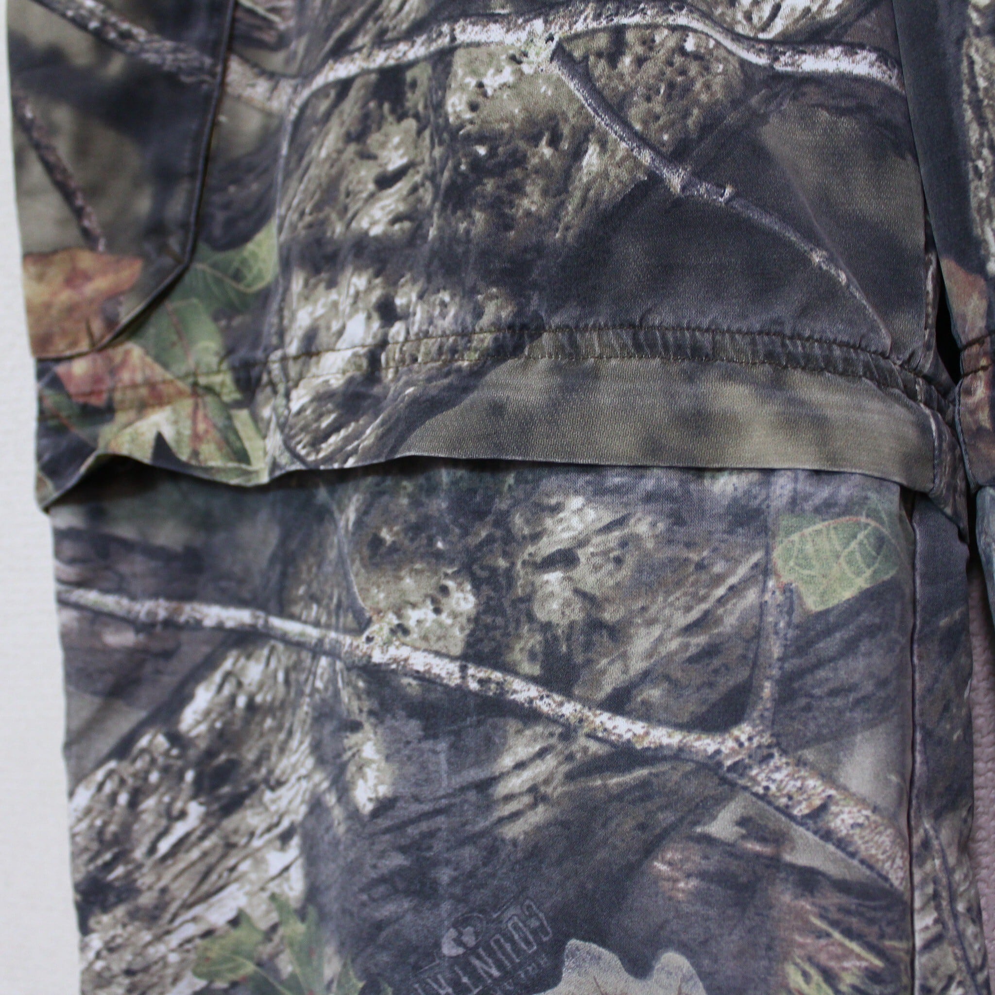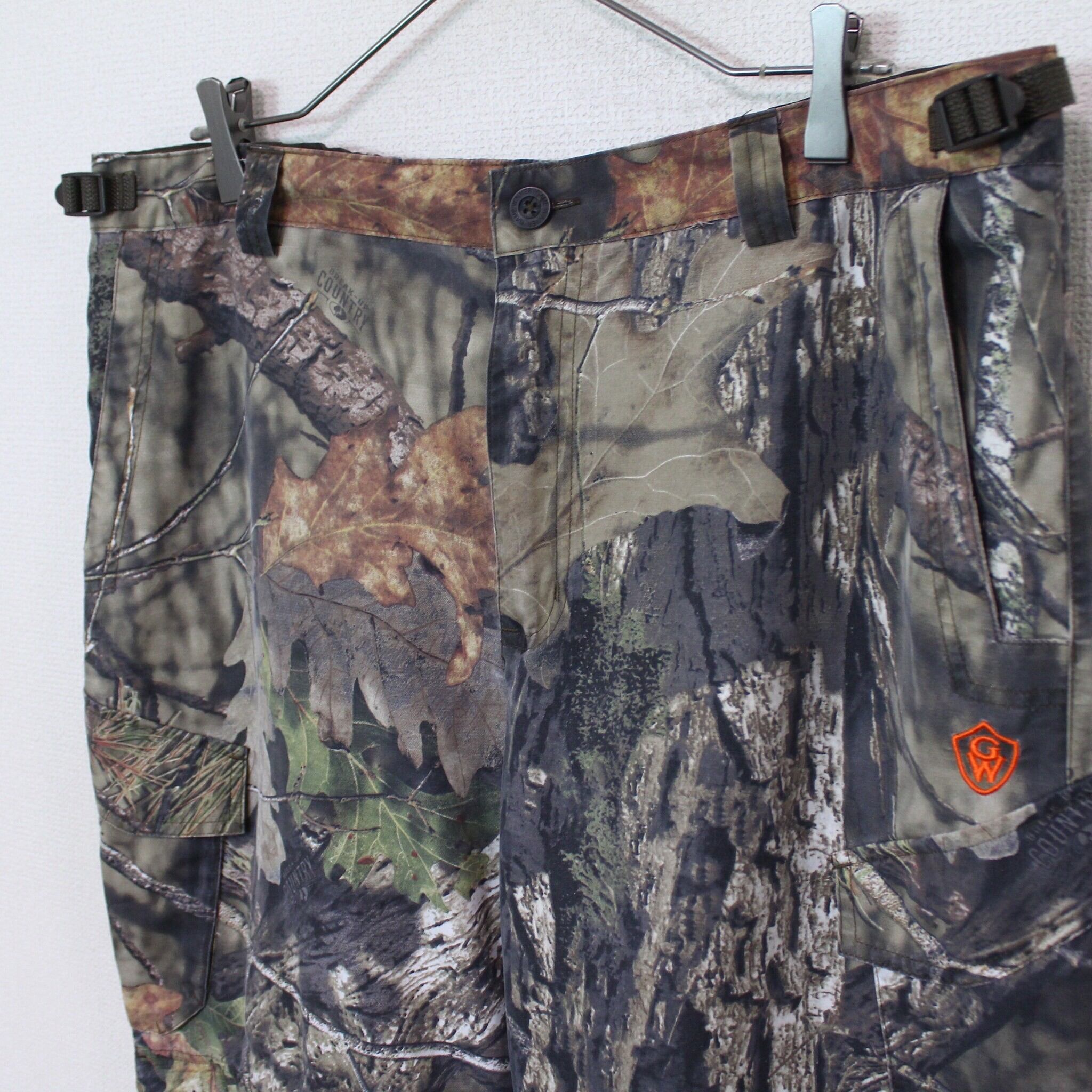 ハリのある素材を用いたボディに、奥行き、立体感のあるリアルツリーカモ柄を載せたカーゴパンツ。