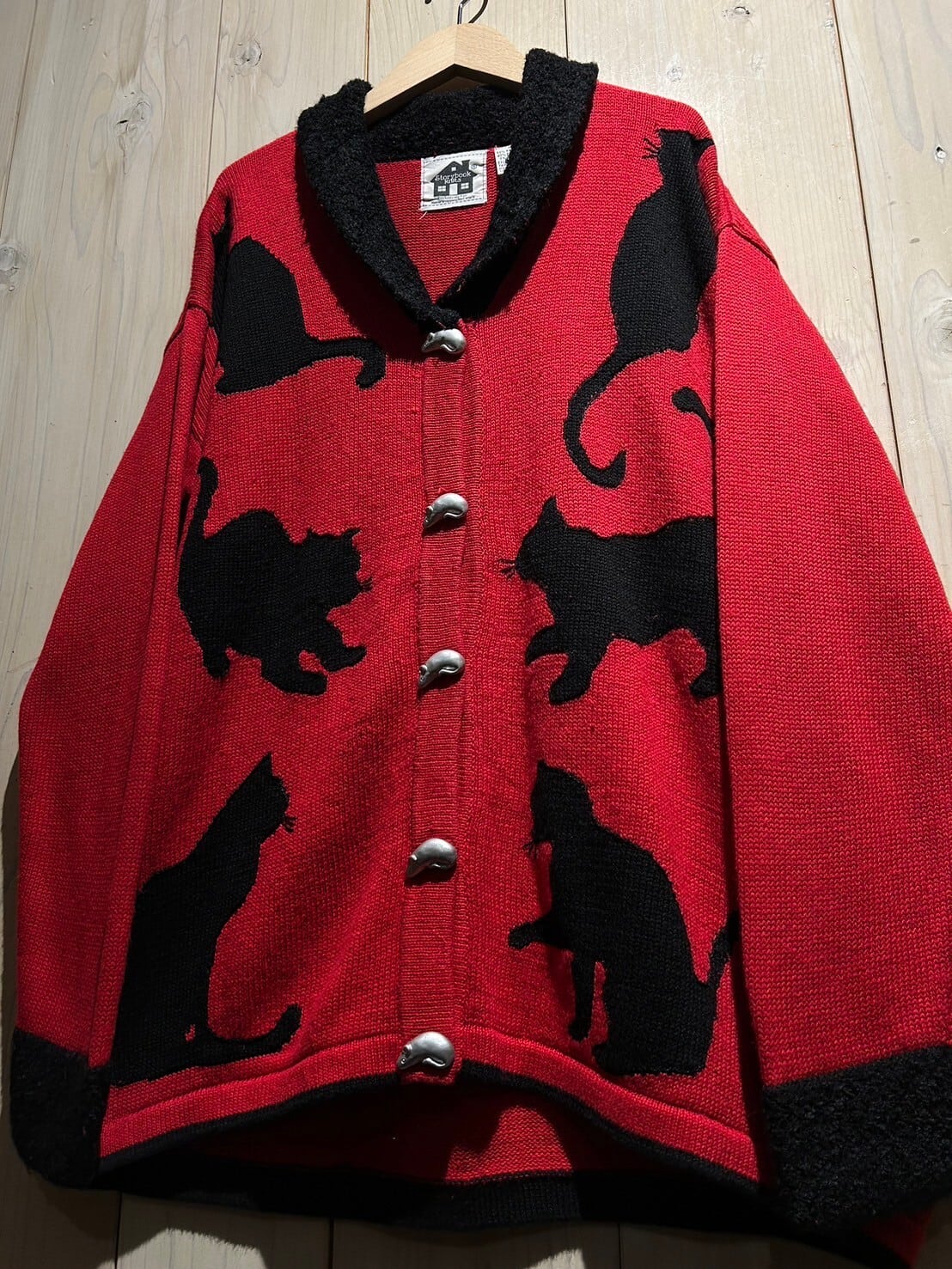当店がお届けするニットアイテムから、レトロかつキャッチーなデザインに仕上げられた、正に一点モノ。猫好き、服好き、どちらに属さない方でも是非ともオススメしたい逸品となっております。