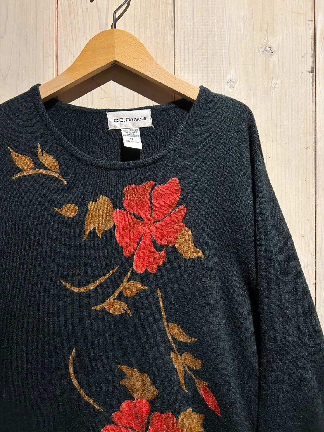 ブラックのボディをベースに、美しい真紅の花を載せたニット。ブラックのボディに花々が良く映え、ヴィンテージらしさがありつつも、どこかモードなフレーバーも漂います。