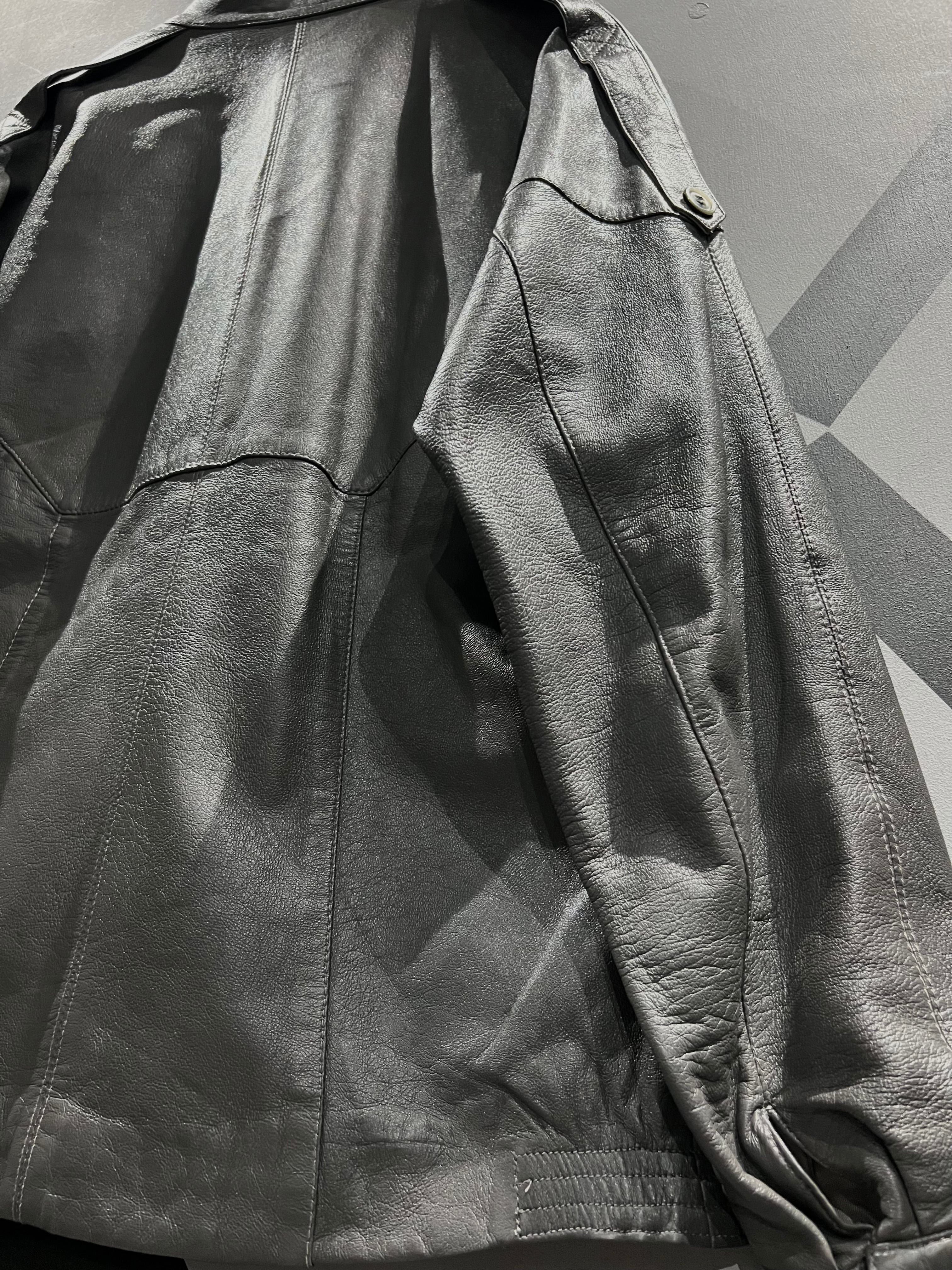 ハリ、コシを兼ね備えた、レアなグレーカラーのレザーを用いて、ミリタリーのフライトジャケットをデザインソースに作られた、イタリアメイド、ユーロヴィンテージのレザージャケット。