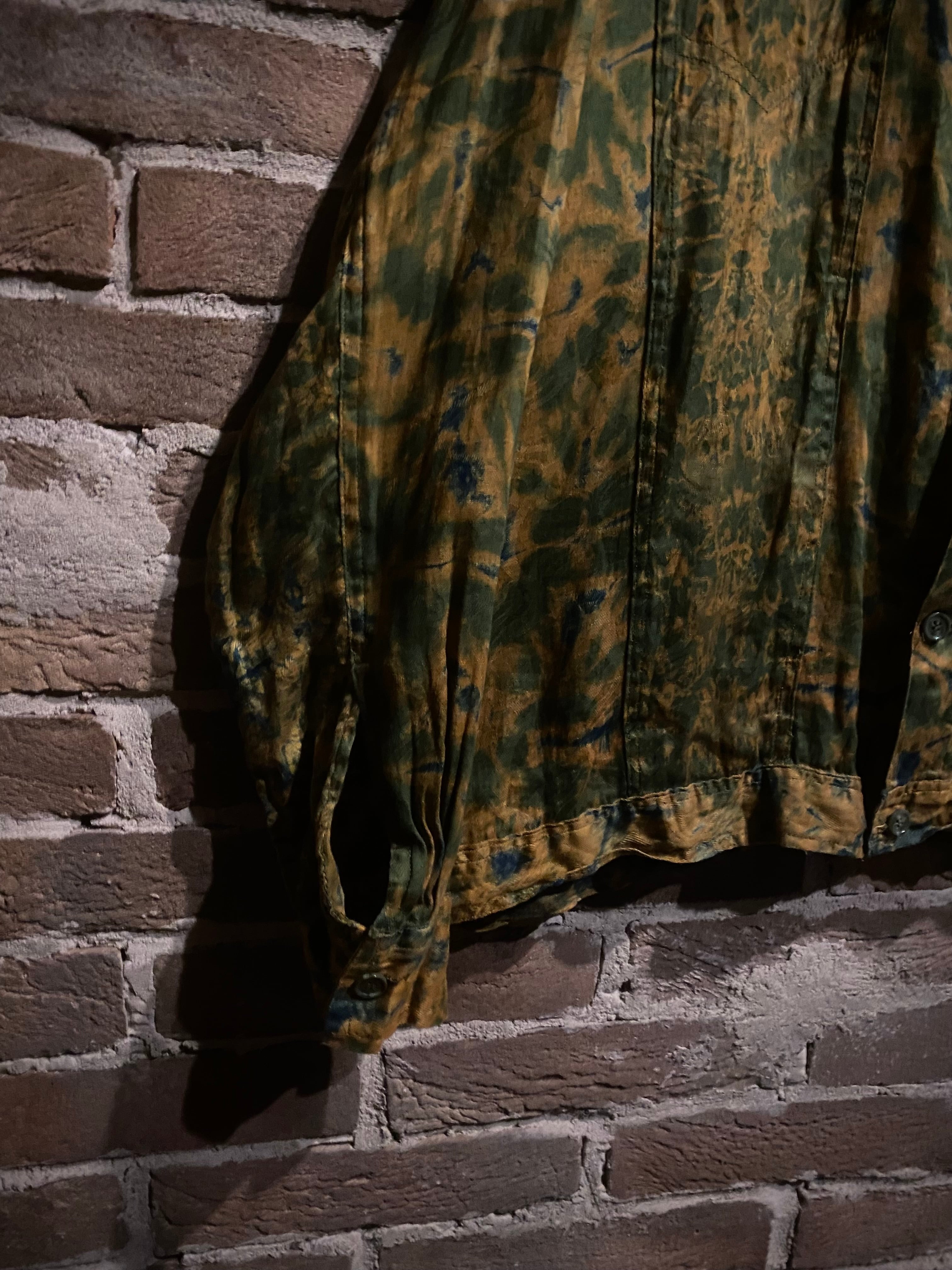 柔らかく肌触りの良い素材を用いたボディに、染め風のデザインを載せた、唯一無二感を漂わせるトラッカージャケット。
