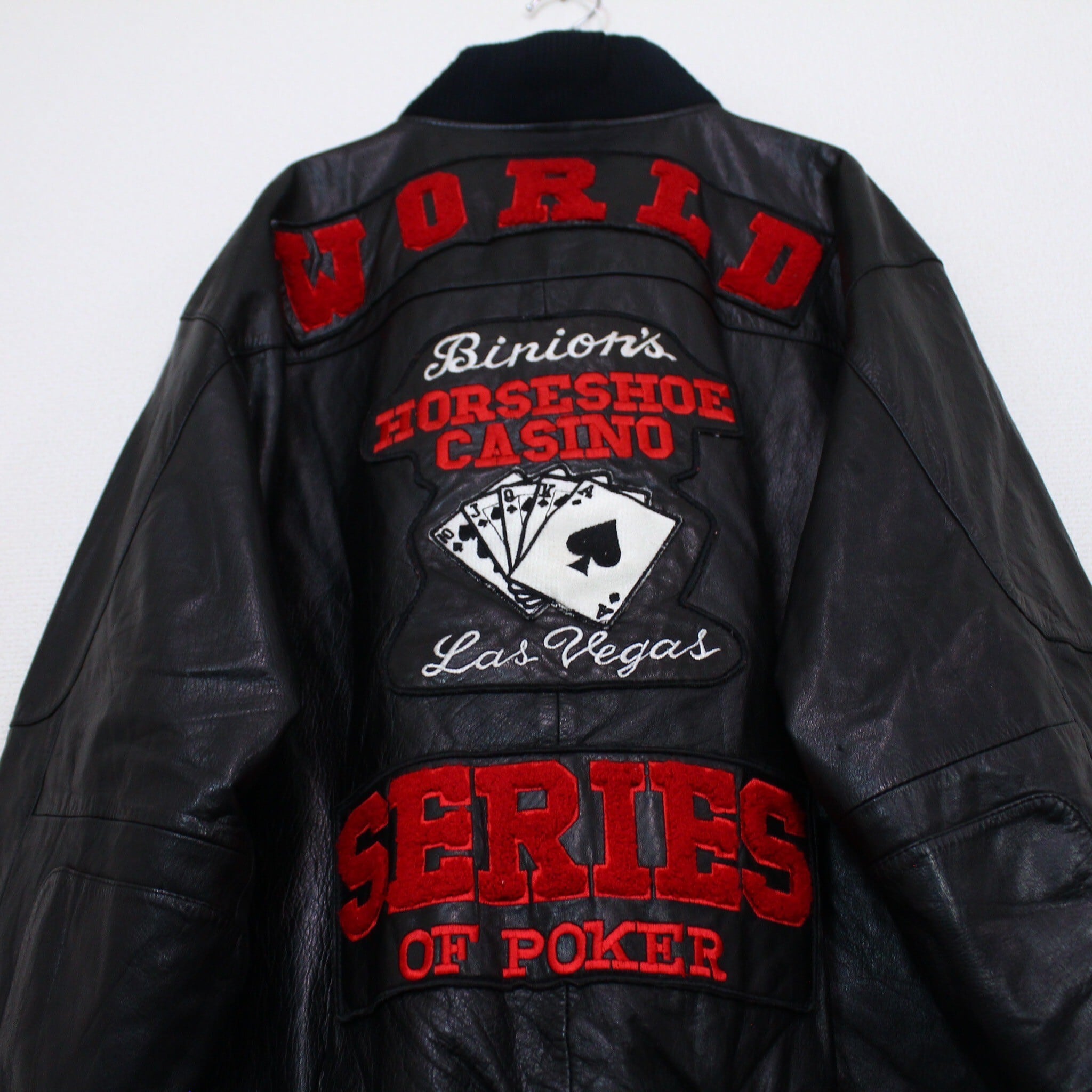 左胸、背面には1970年から開催されているポーカーの世界的トーナメント"World Series of Poker" の刺繍やパッチをON。立体感のあるパッチ、トランプなどデザインのノリが非常に良いですね。