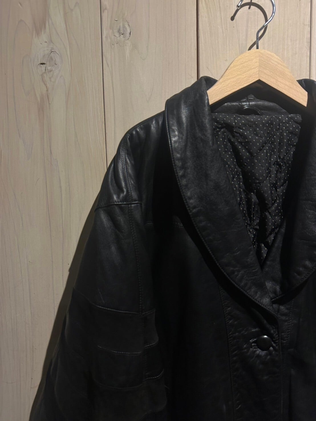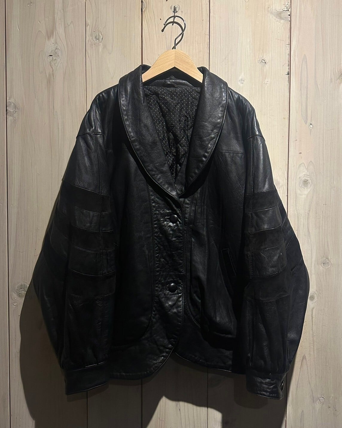 ドルマンスリーブの設計の為にレザーをたっぷりと用いており、非常に贅沢な1着。デザイン面でも素晴らしく、切り替えはもちろんのことフロントのショールカラーもアクセントに。