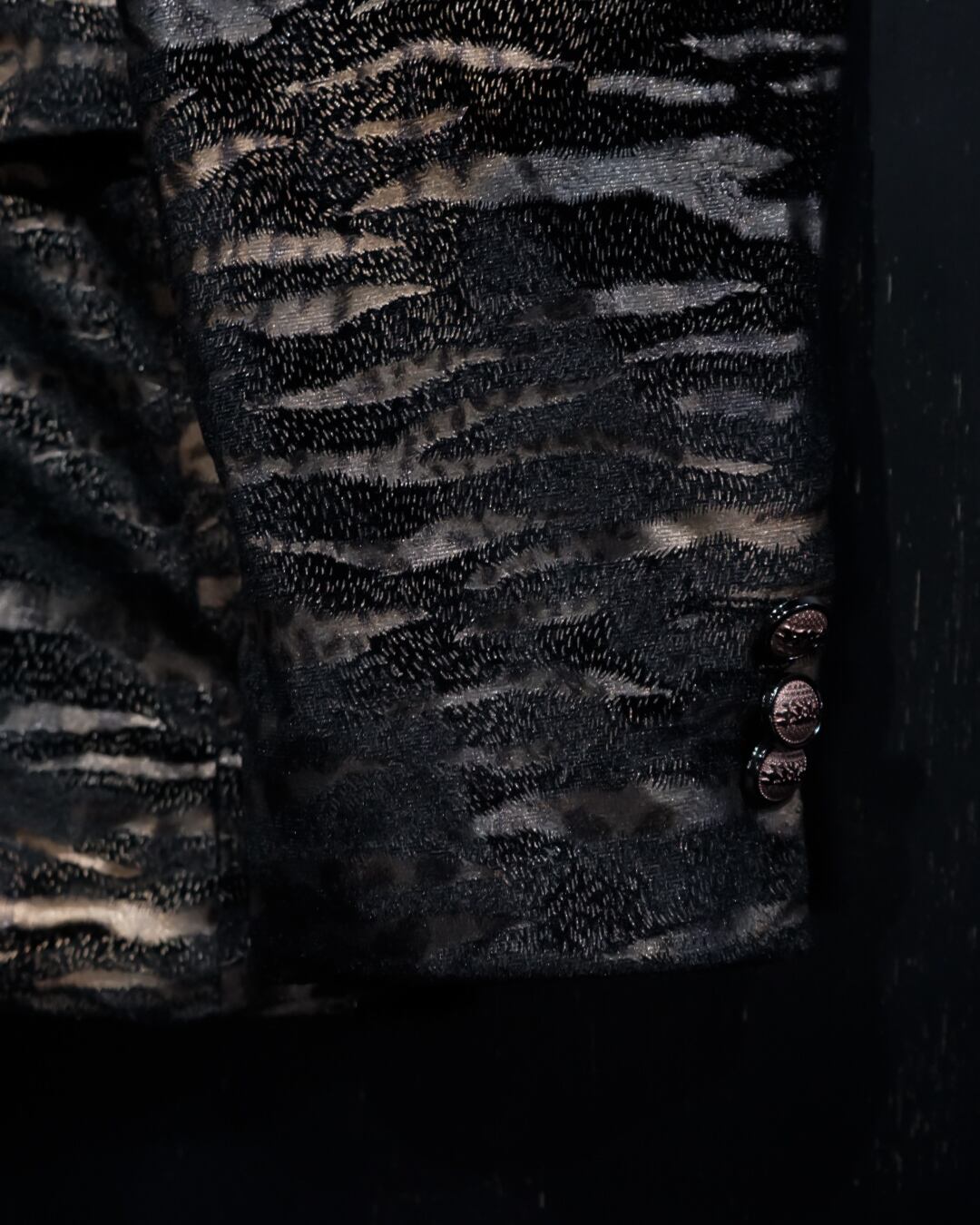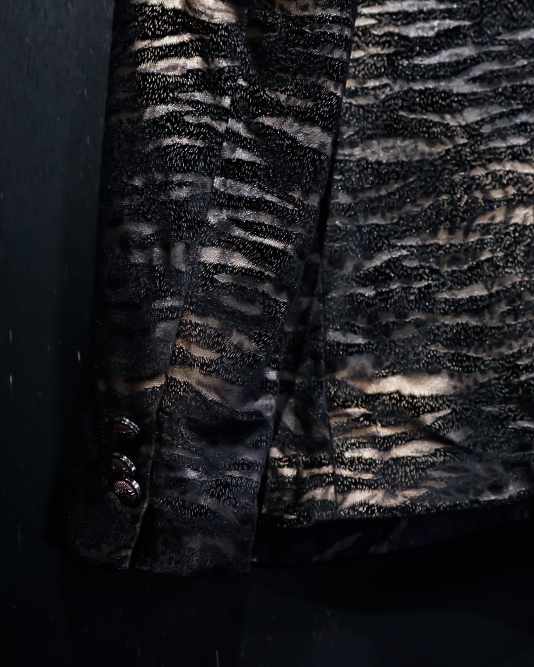 フワッと軽やかでシーズンレスな、メタリックなボディにゼブラ柄を載せたテーラードジャケット。