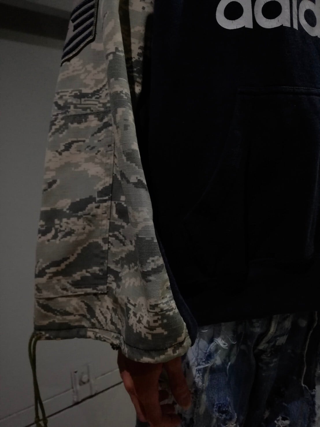 ミリタリー特有のカーキとデジタルカモのブルゾンジャケットを両袖に切り替えた、witに富んだデザインの1着。