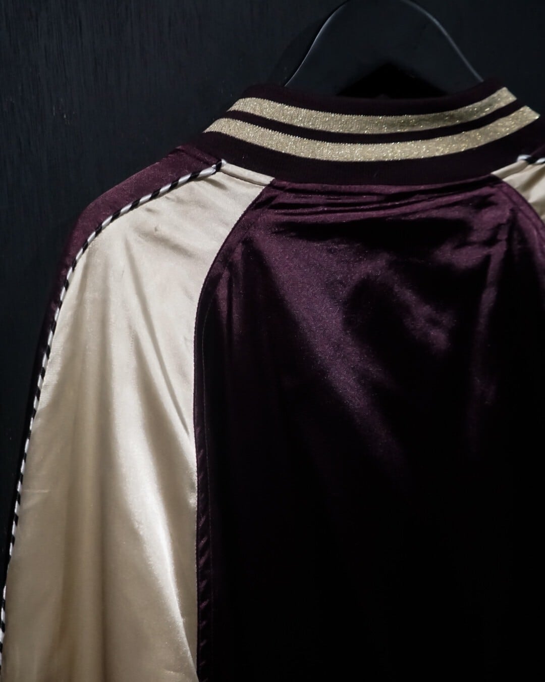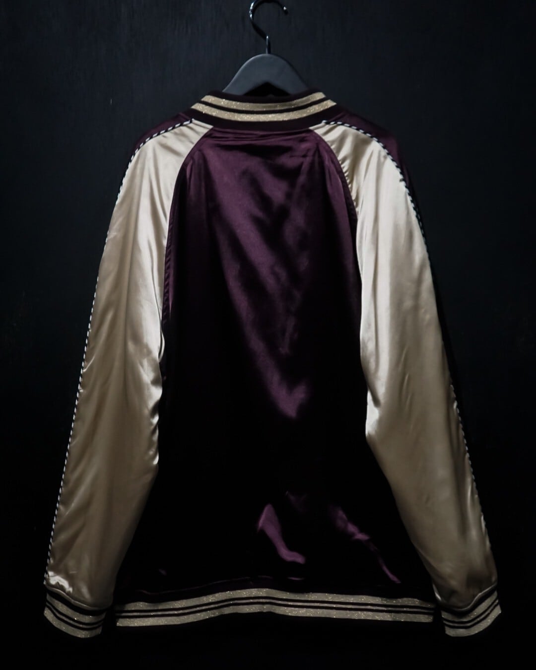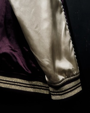 デザインが効いた物が多いこの手のアイテムに比べシンプルなデザインに。テロっとしたサテン生地のような光沢によってインパクトは抜群で、切り替え等のデザインバランスも絶妙な仕上がりになっています。