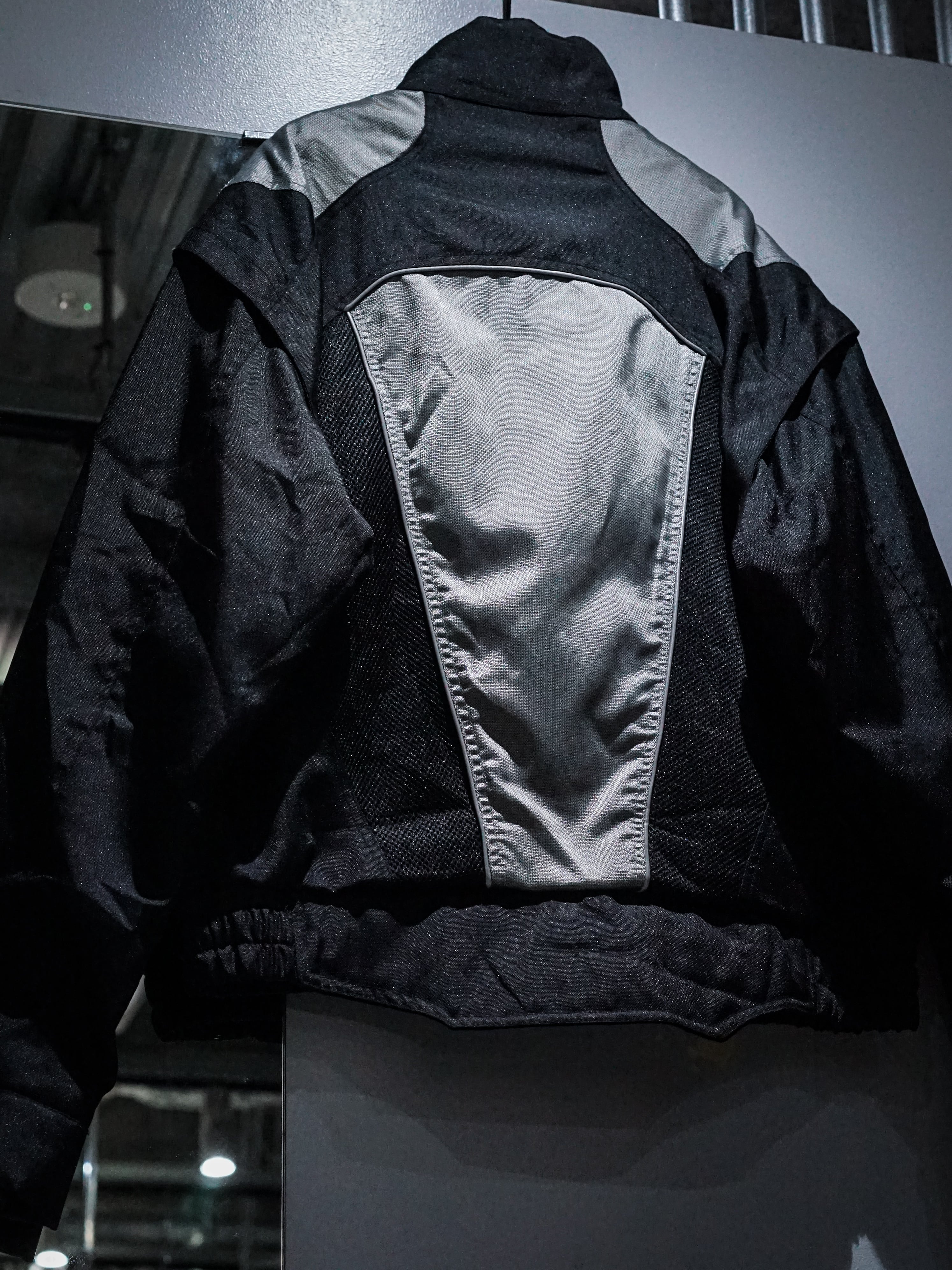 ブラック×シルバーのソリッドなカラーリングで切り替え、レーシングギアジャケットらしいギミックを盛り込んだ1着。
