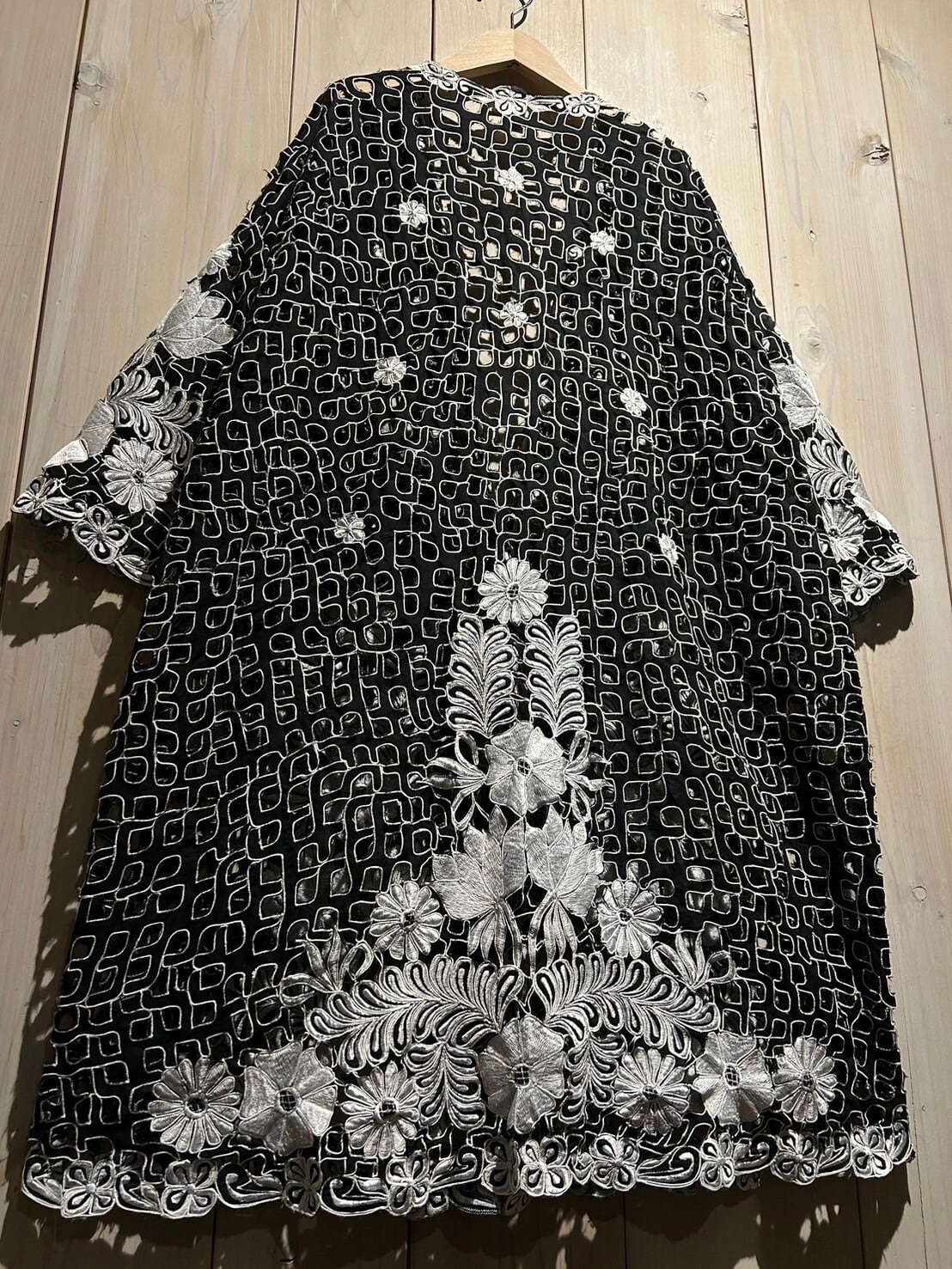 モノトーンでの仕上がりで様々なコーディネートに組み込みやすいのも嬉しいポイントですね。そして緻密で繊細な花柄が本当に美しい、、、