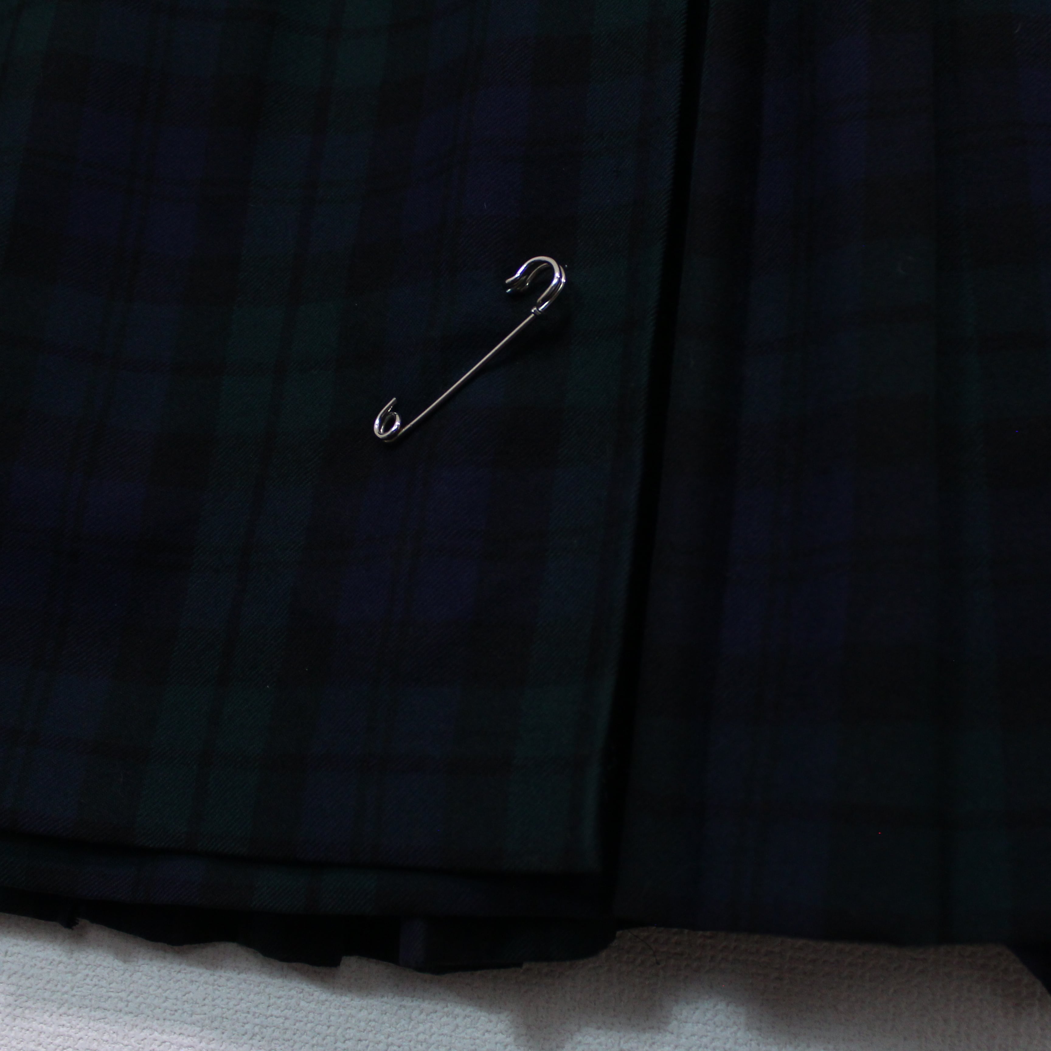 ネイビー×グリーンの定番の配色で成されたタータンチェックを載せたプリーツスカート。