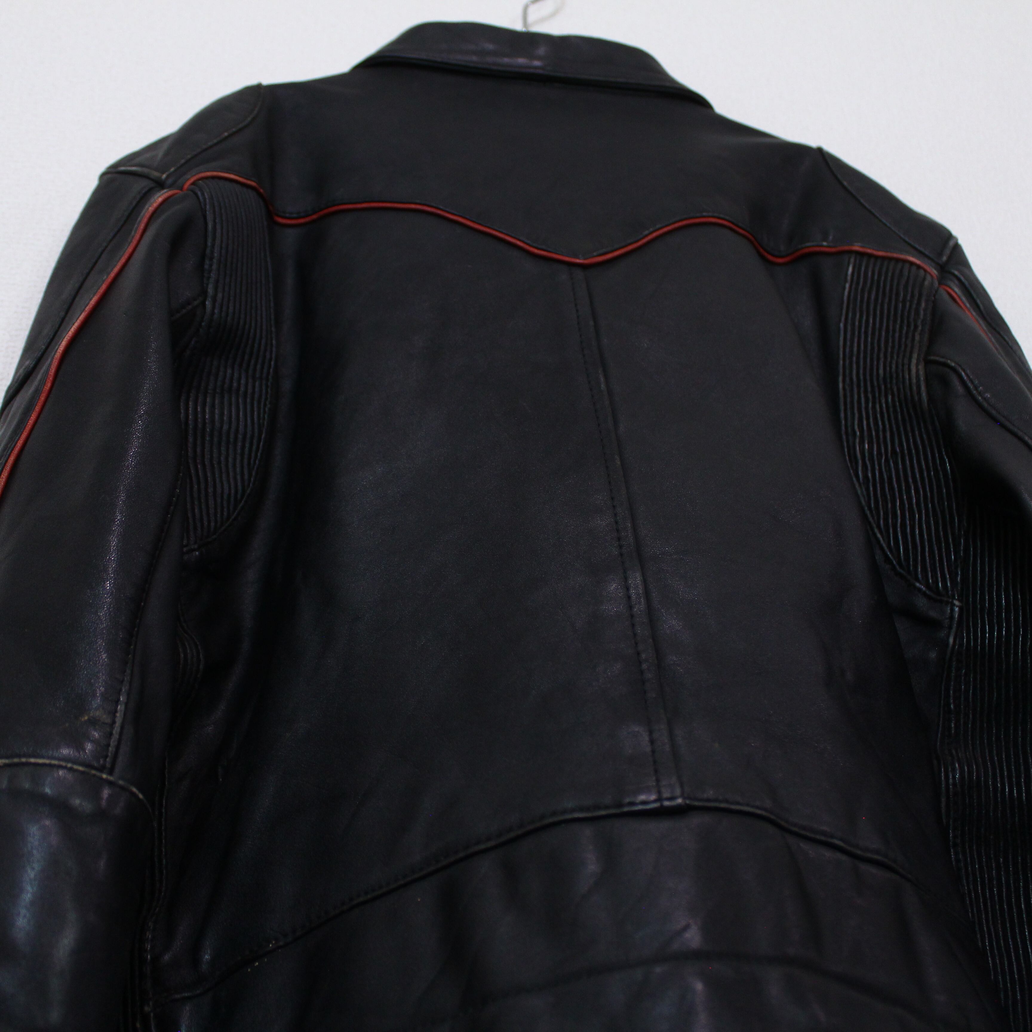 しなやかなブラックのレザーボディをベースに、ヨークからスリーブにかけて、赤色のパイピングを載せ、シングルのライダースジャケット型に落とし込んだ逸品。