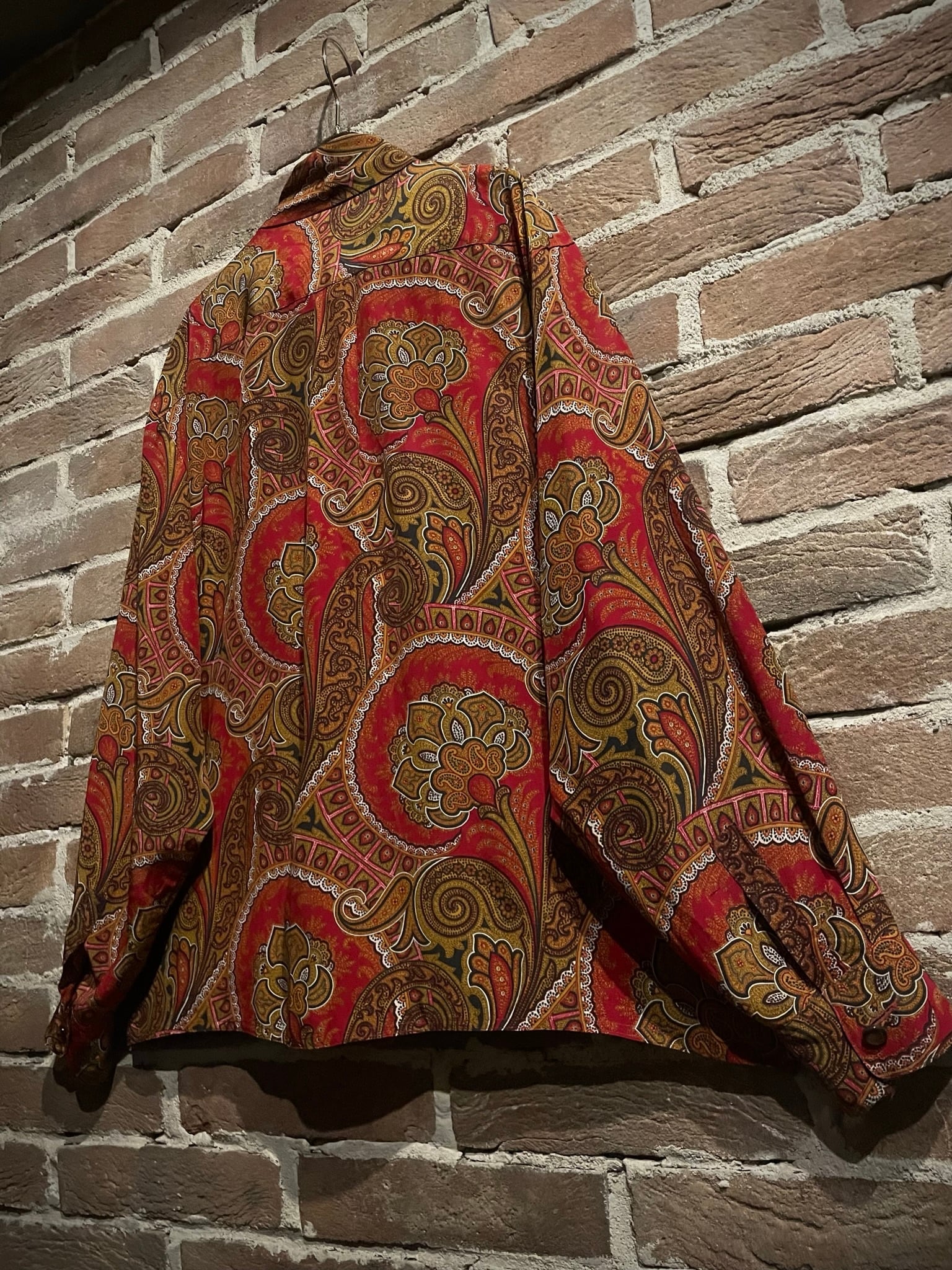 柔らかく肌触りの良い素材を用いたボディに、レトロかつラグジュアリーな柄模様を載せた、当店らしい雰囲気を纏った長袖シャツ。