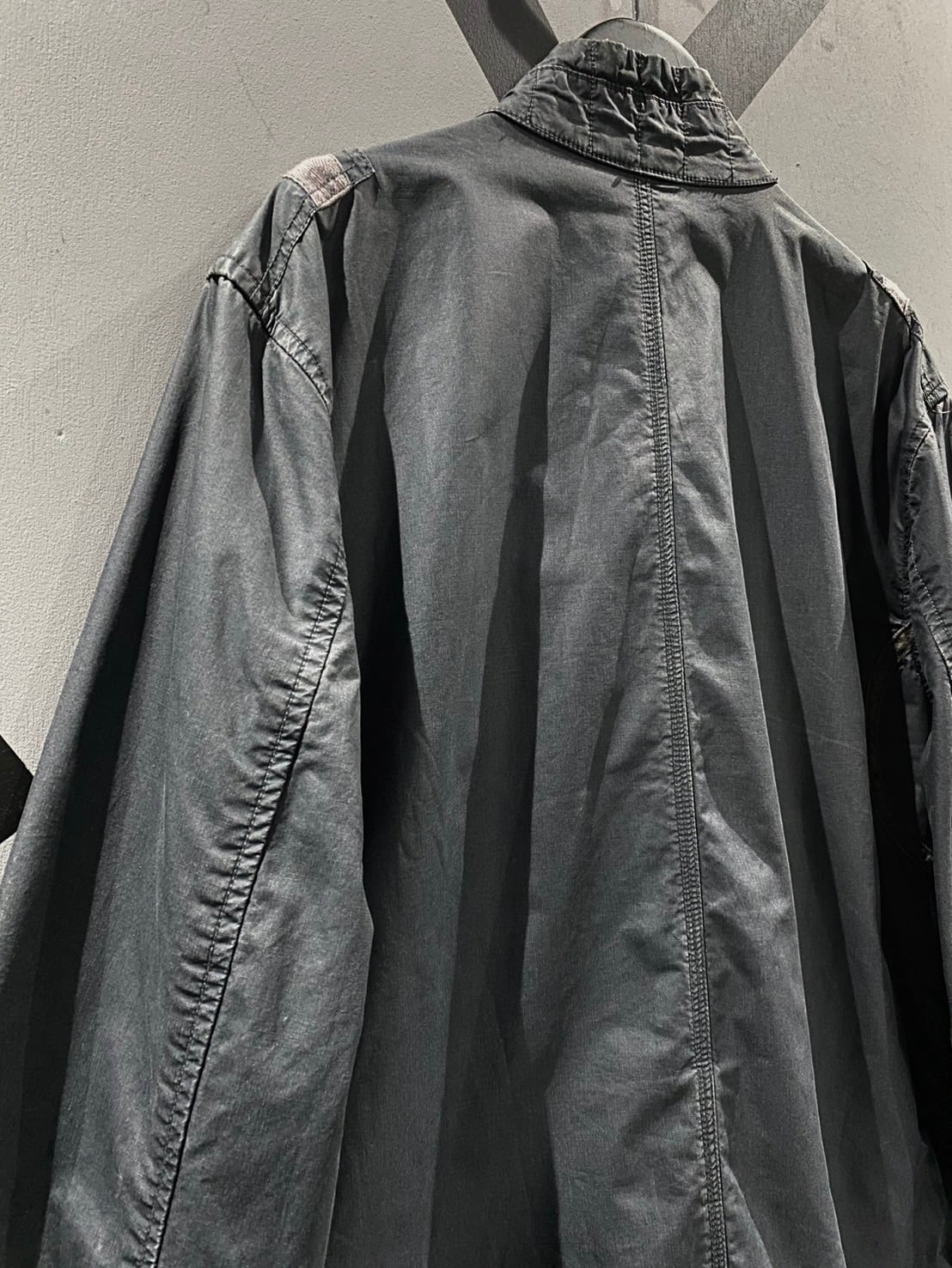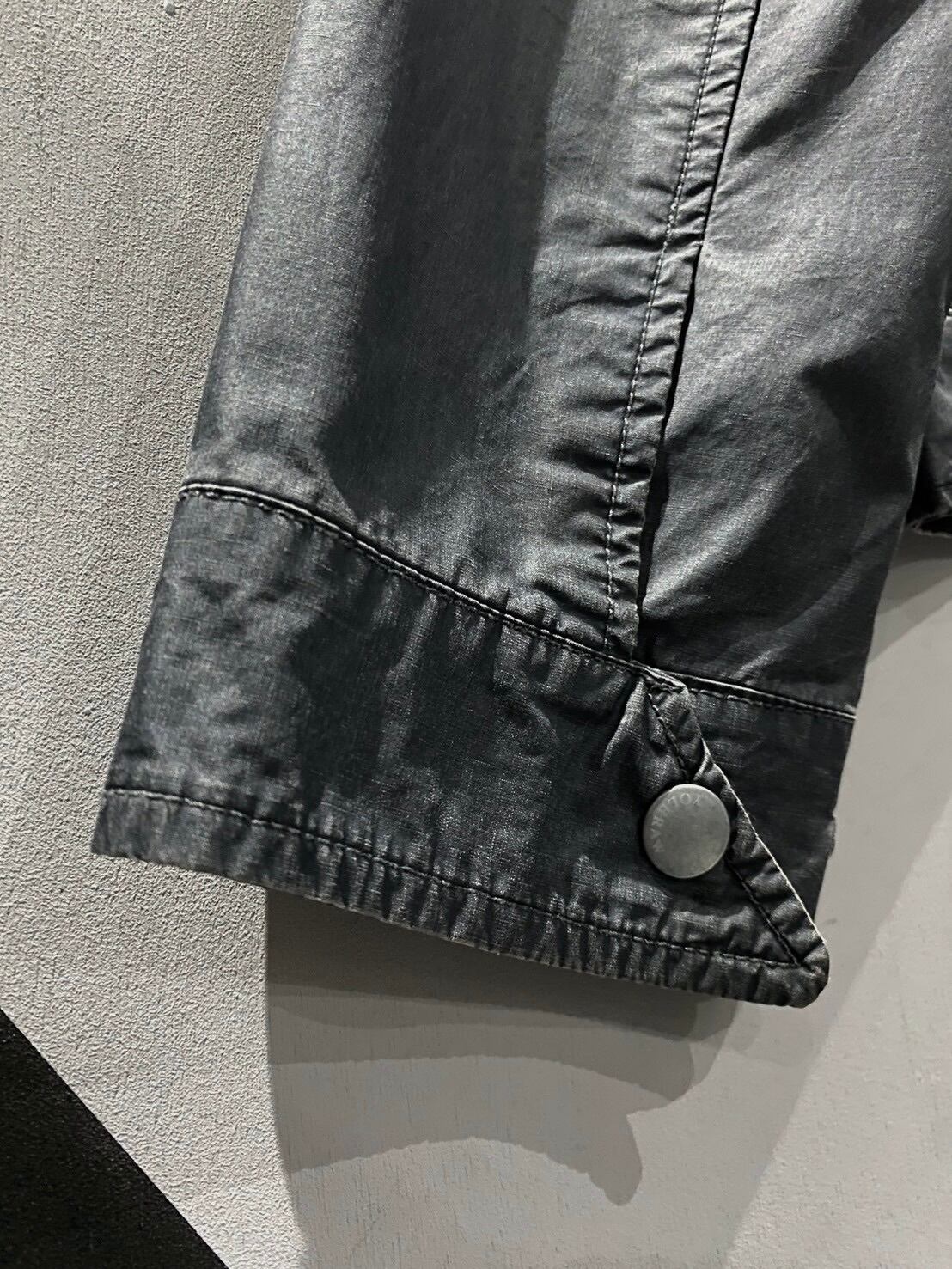 コーティング加工を施し、レザーのような独特な光沢を放つボディに、フロントには縦や横型のジップポケット、ボディサイドにはパッチポケットを載せたジャケット。